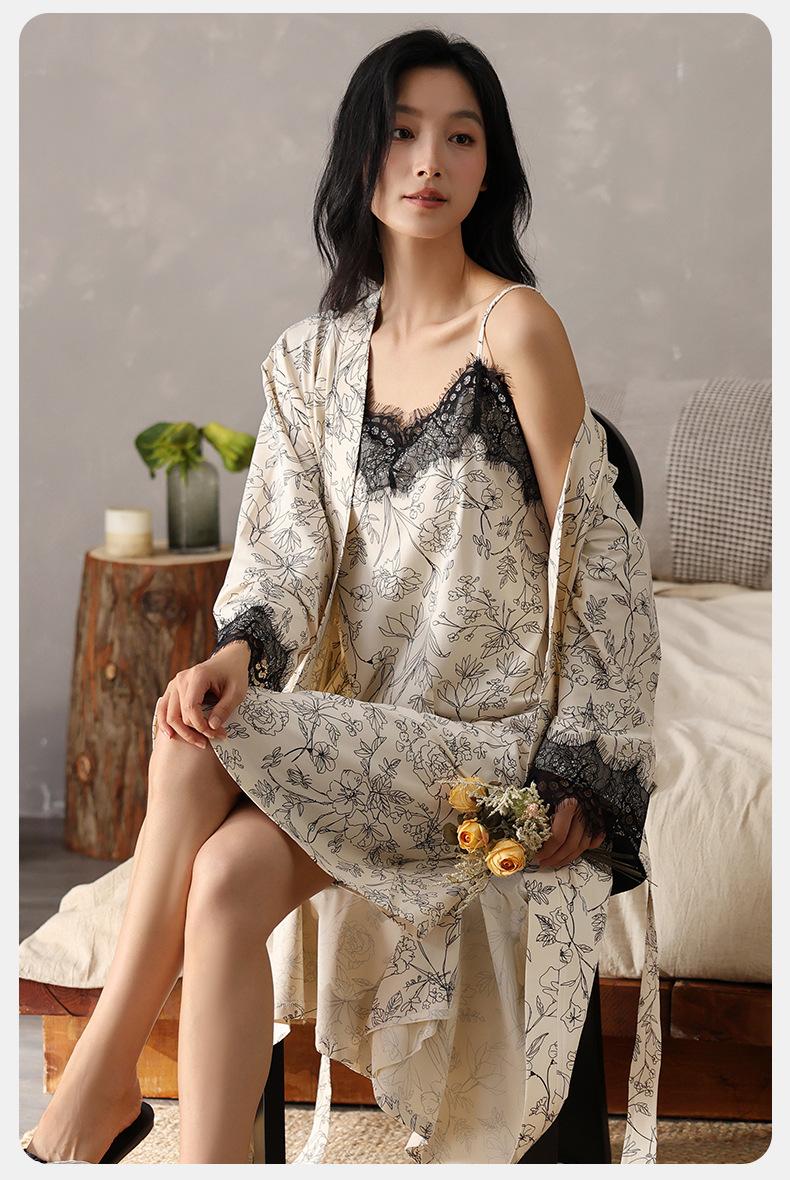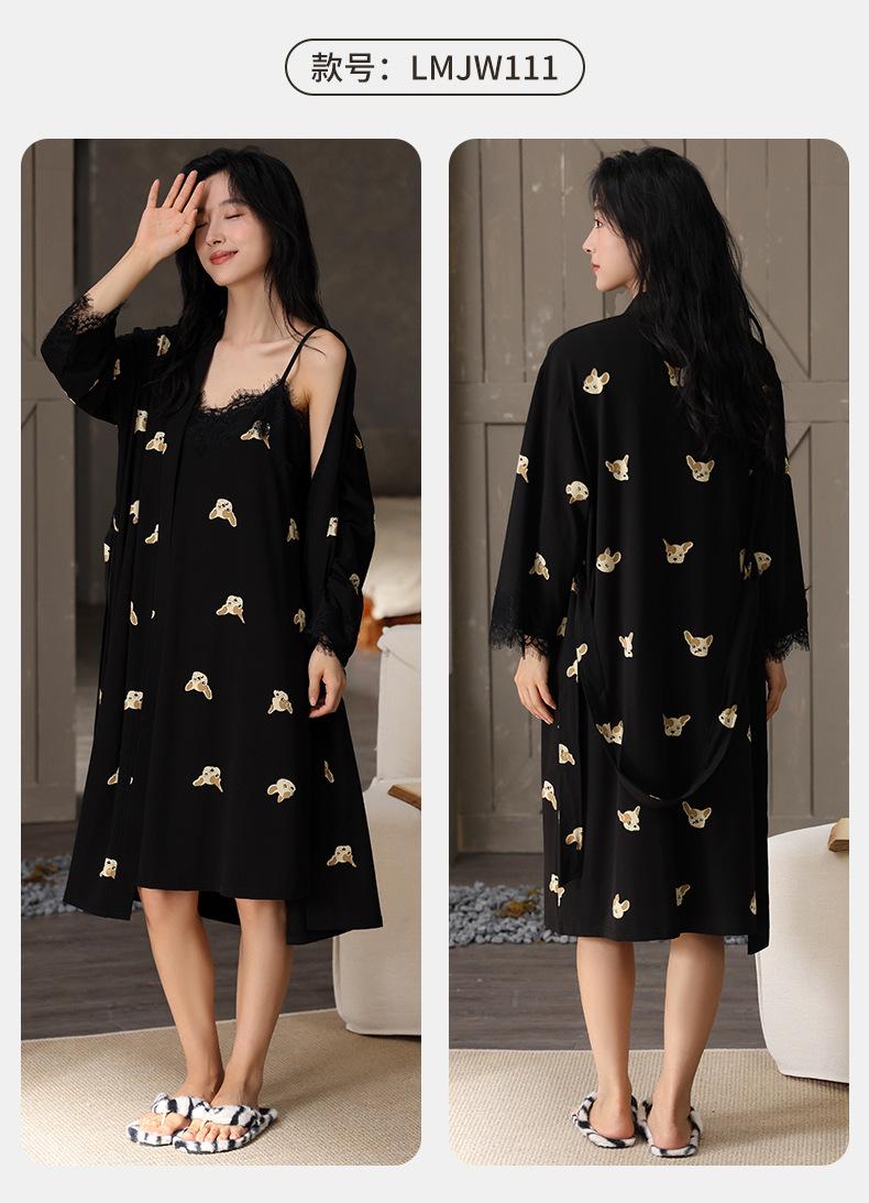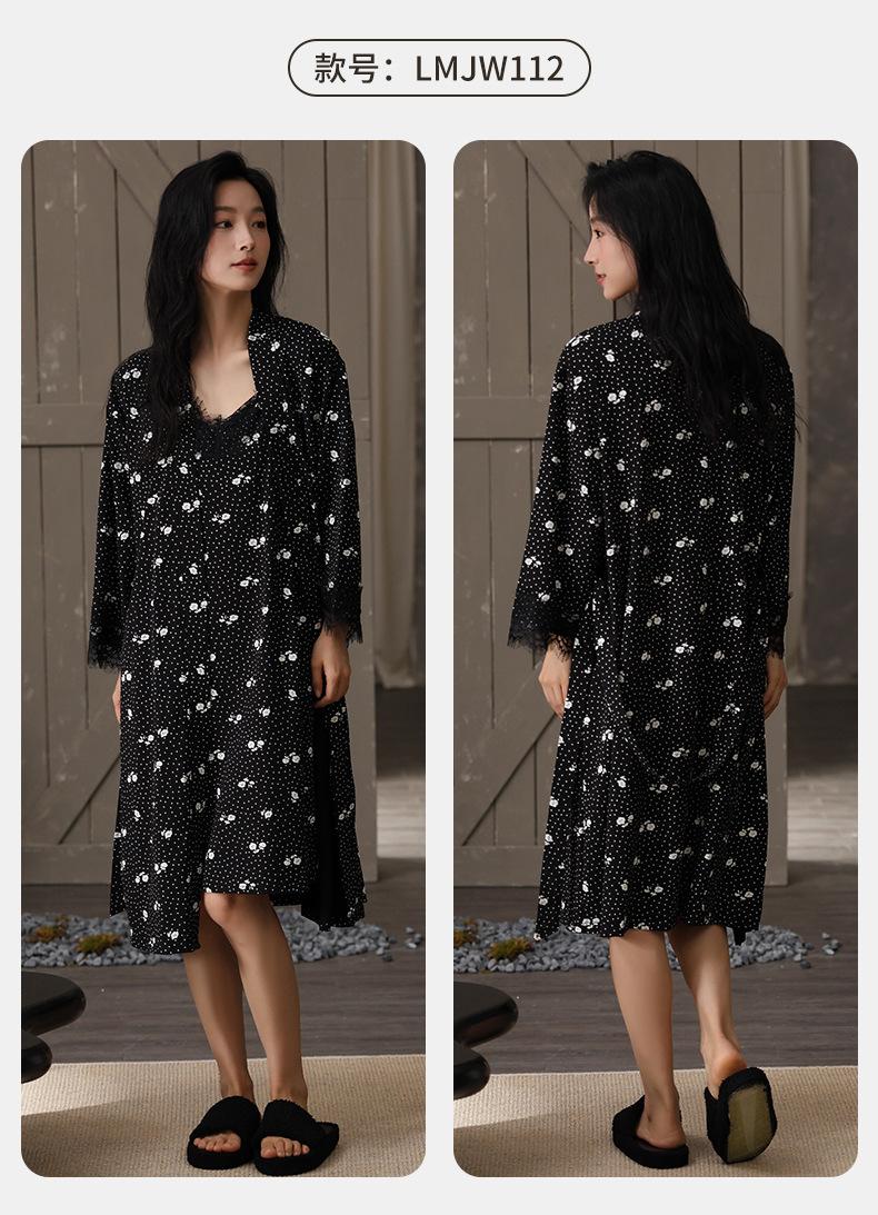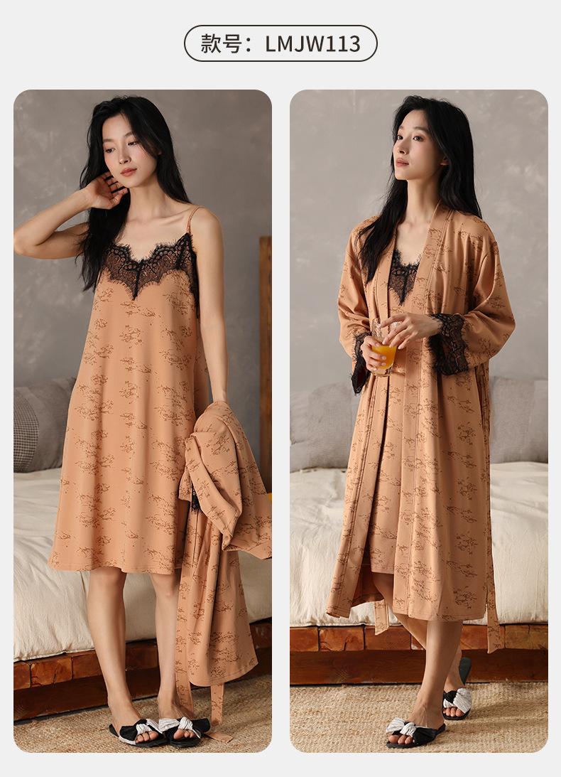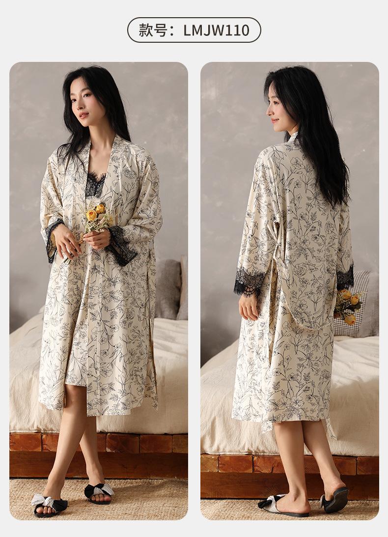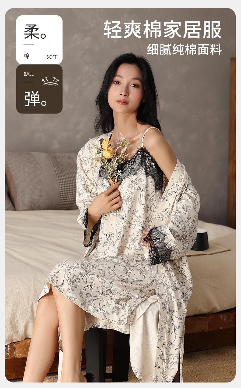 Compra Camisón de Otoño para Mujer Cómodo Algodón Puro Sexy Dulce Bata Estilo Otoño Ropa Casual para el Hogar Conjunto de Dos Piezas al por mayor en Joom.pro
