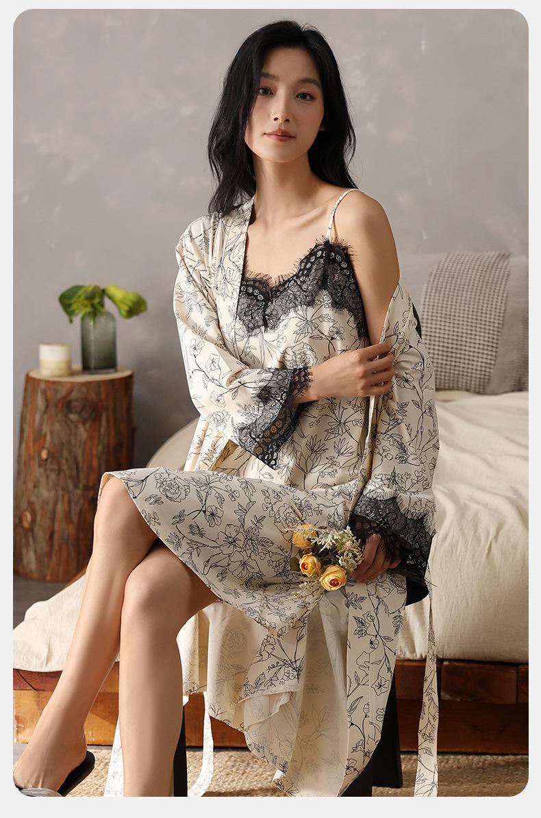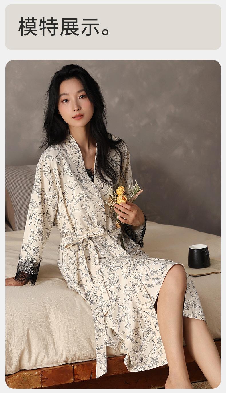 Camisón de Otoño para Mujer Cómodo Algodón Puro Sexy Dulce Bata Estilo Otoño Ropa Casual para el Hogar Conjunto de Dos Piezas