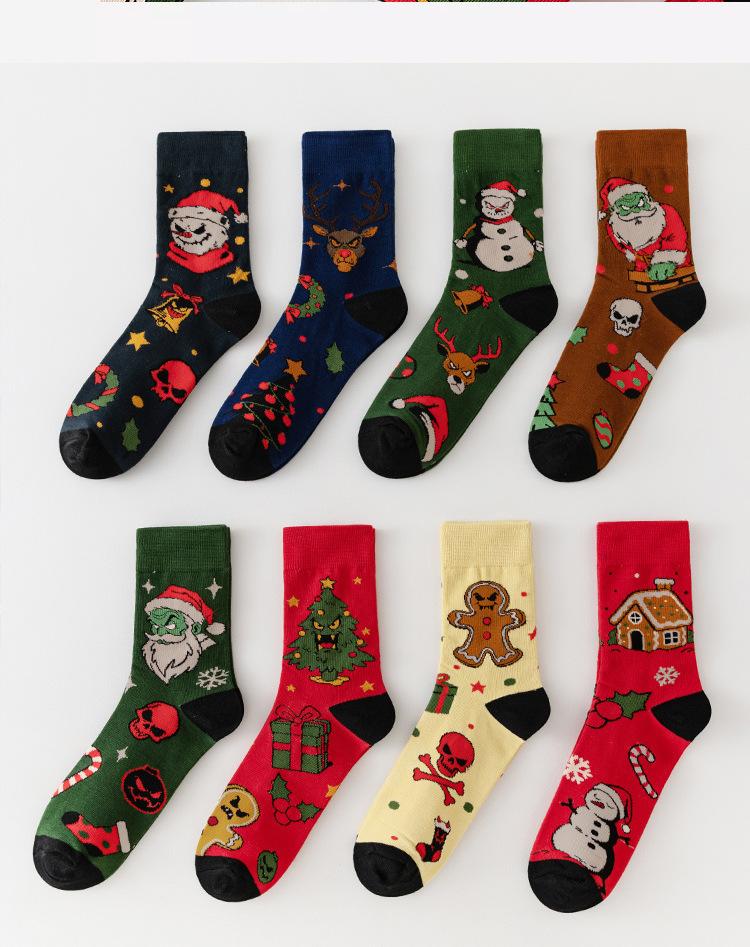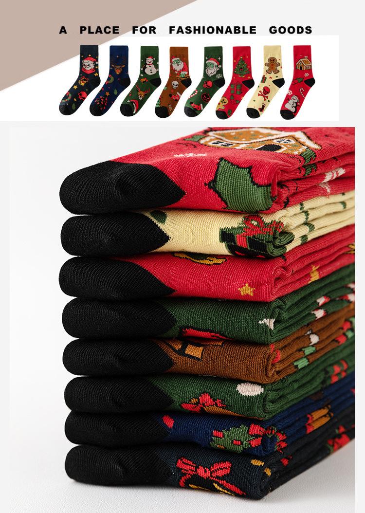 Calcetines Navideños de Talla Grande Rojos Calcetines de Año Nuevo Venta al Por Mayor Transfronteriza Calcetines Deportivos Largos para Hombre Otoño Invierno Calcetines de Media Caña para Mujer Zhuji