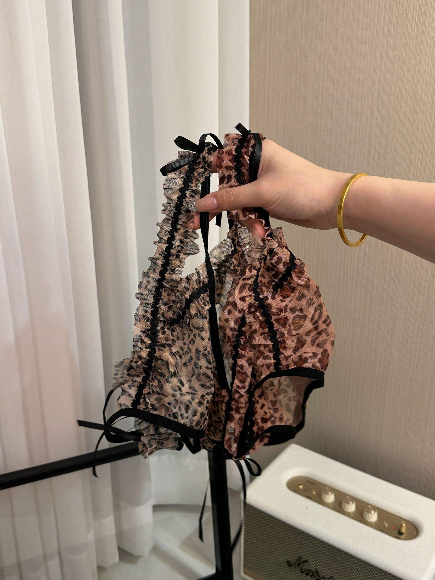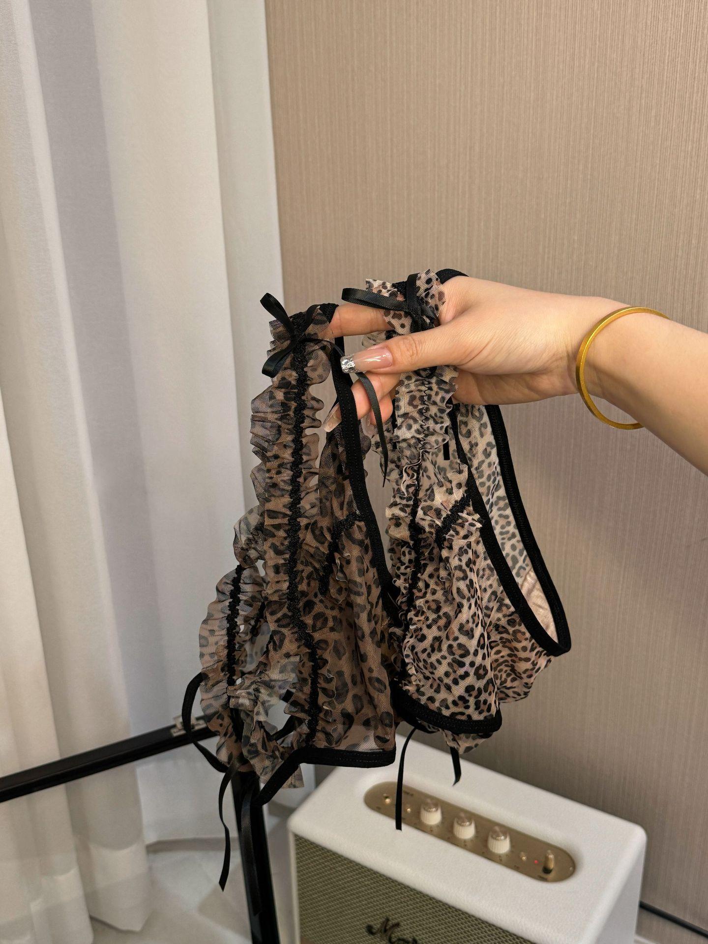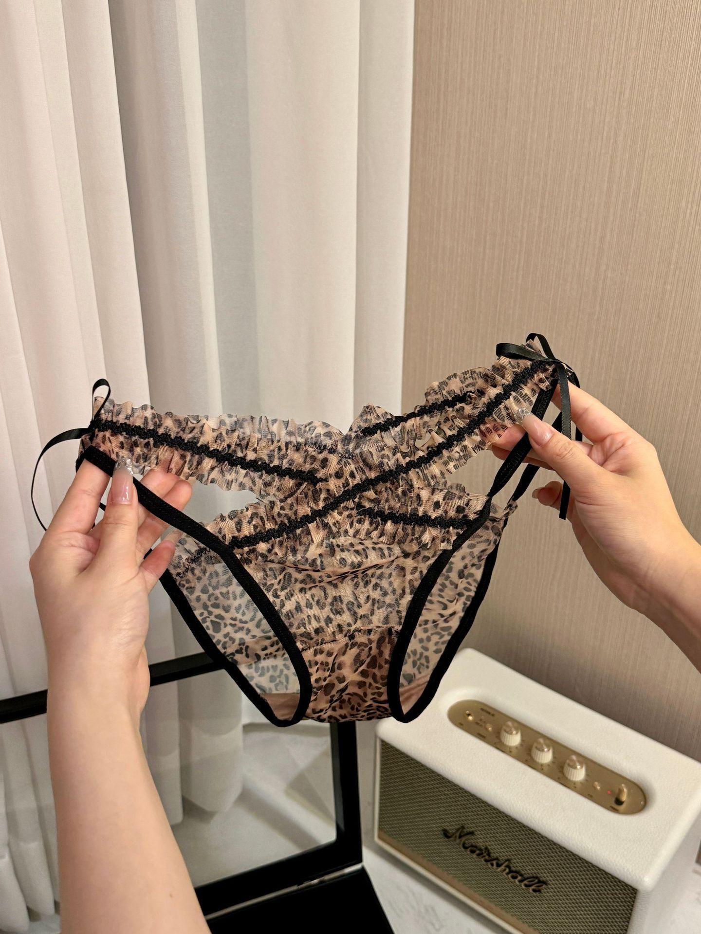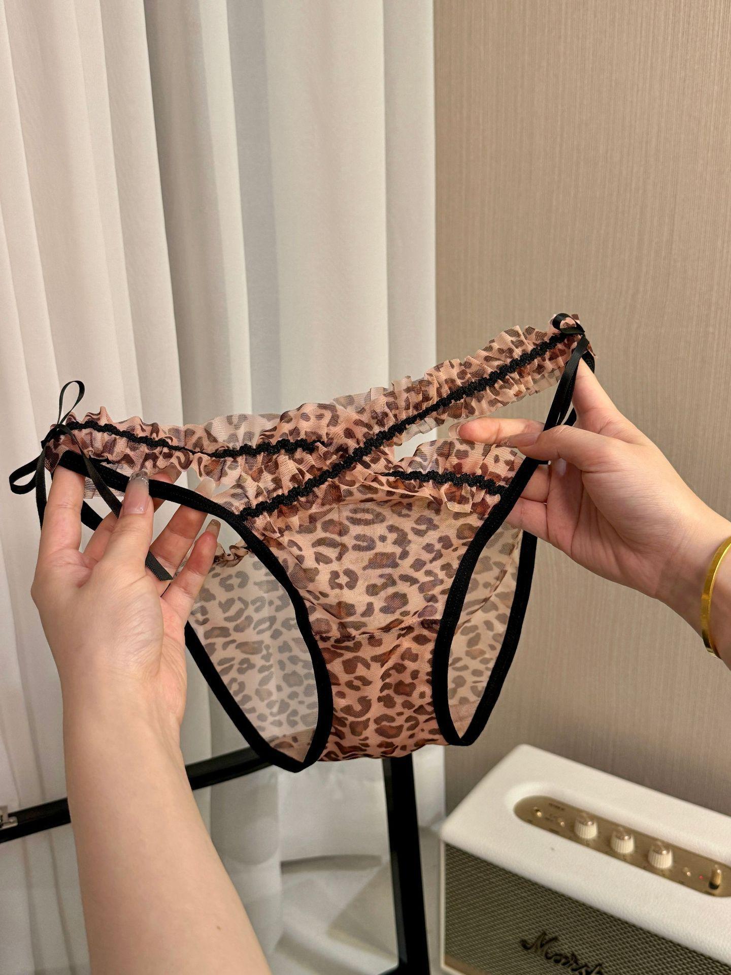 Estampado de leopardo chica~2025 nuevo sexy tanga de encaje tirantes finos deseo puro sexy mujer madura tiro bajo niña bragas triangulares