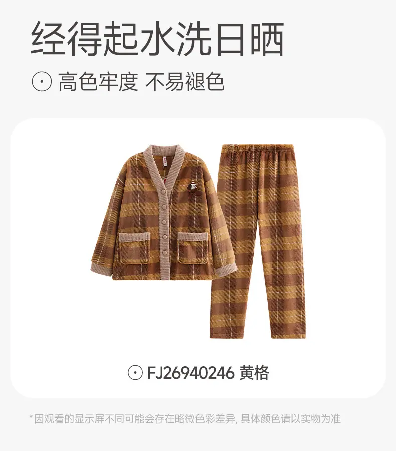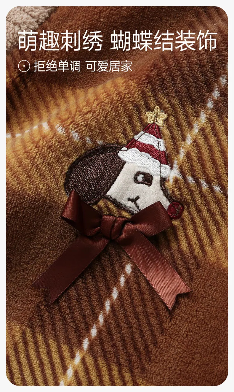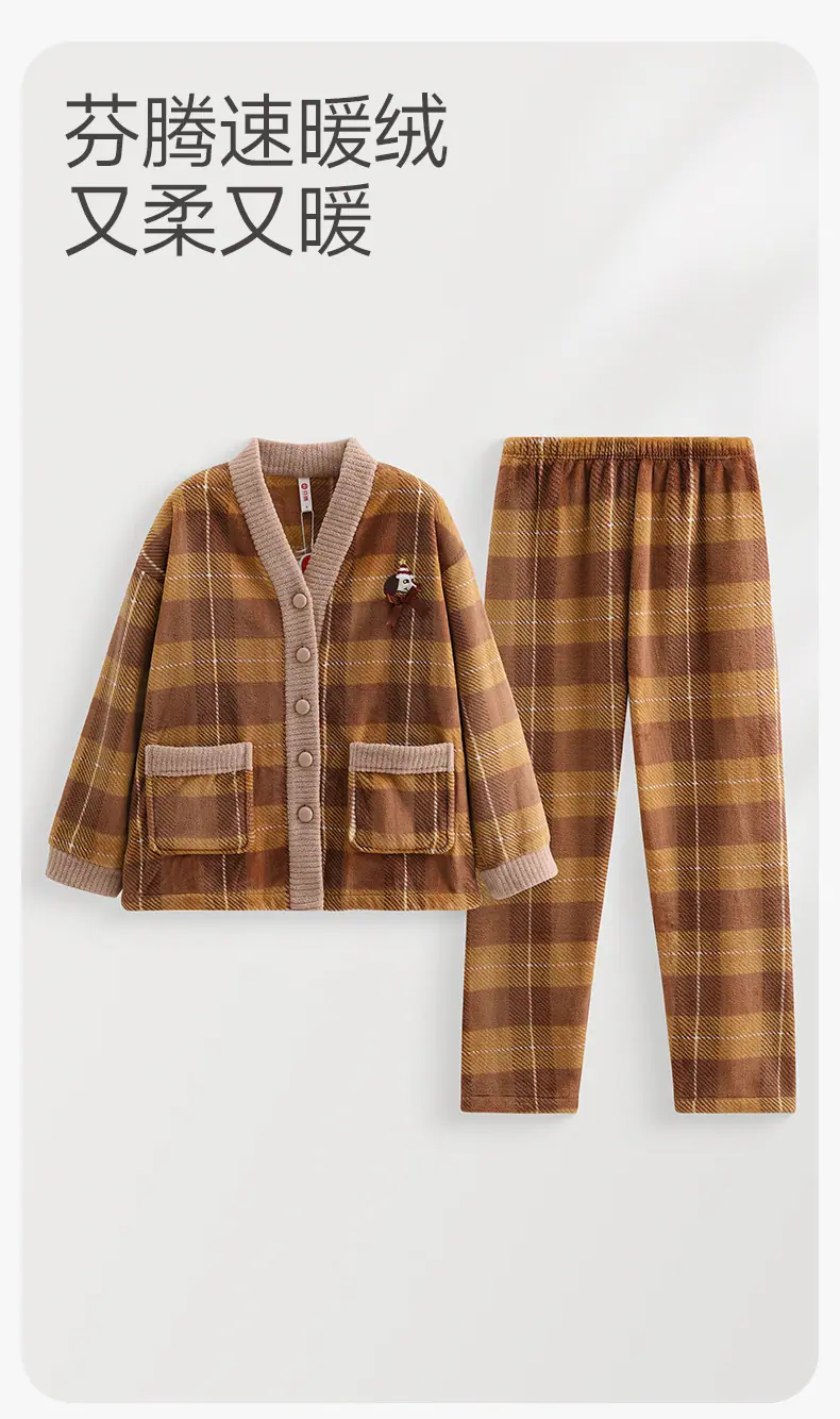 Fenteng [Forro Polar Antiestático de Calentamiento Rápido] Pijama de Mujer Otoño e Invierno Conjunto Plus Terciopelo Talla Grande Ropa para el Hogar de Mujer