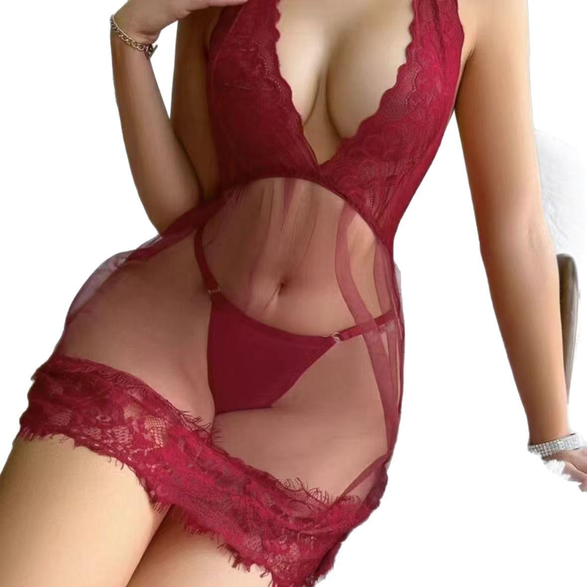 Camisola Sexy de Encaje Transfronteriza Europea y Americana Pijama Deseo Puro Lencería Camisón de Mujer al por Mayor