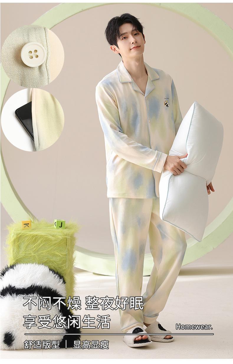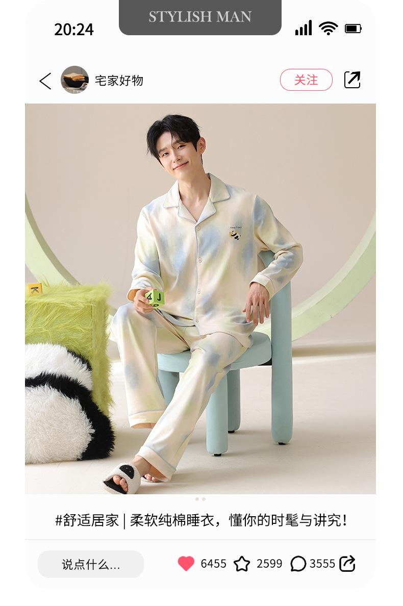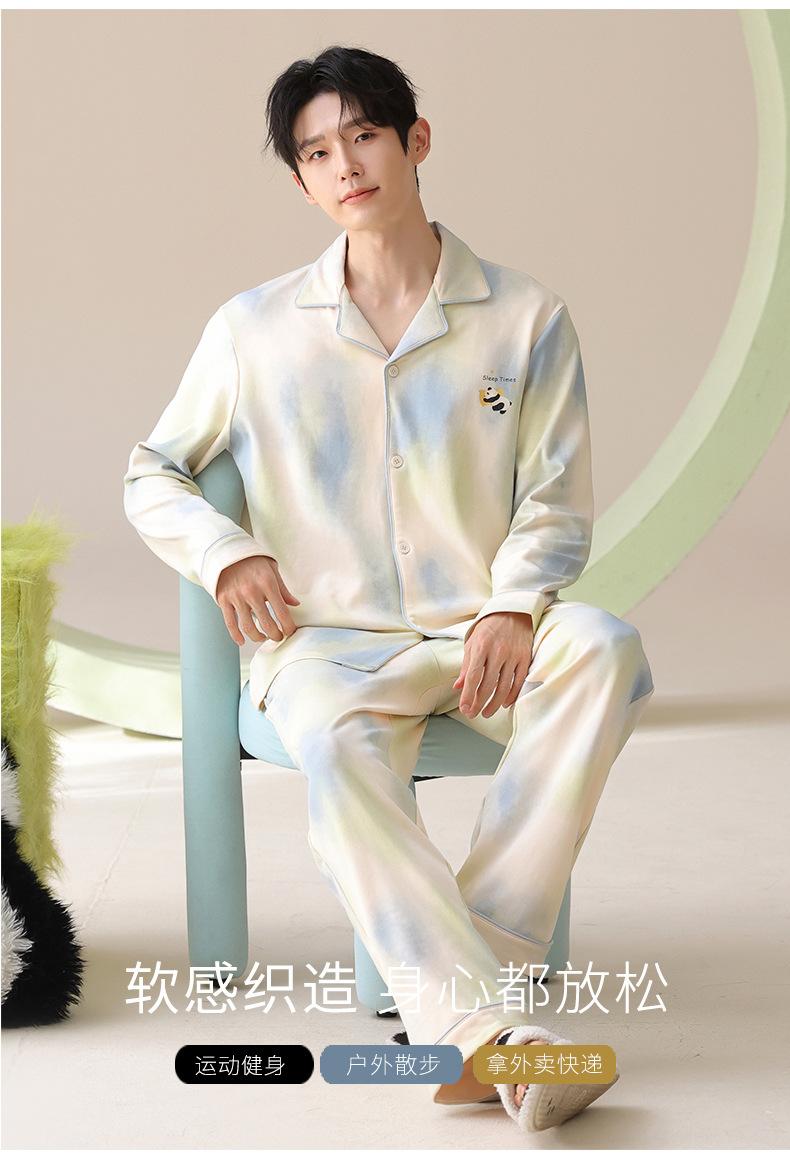 Pijamas para hombre Pijamas para hombre Primavera y otoño Fresco Manga larga Algodón puro 2025 Nuevo Otoño e invierno Talla grande Conjunto de ropa para el hogar para niños