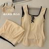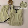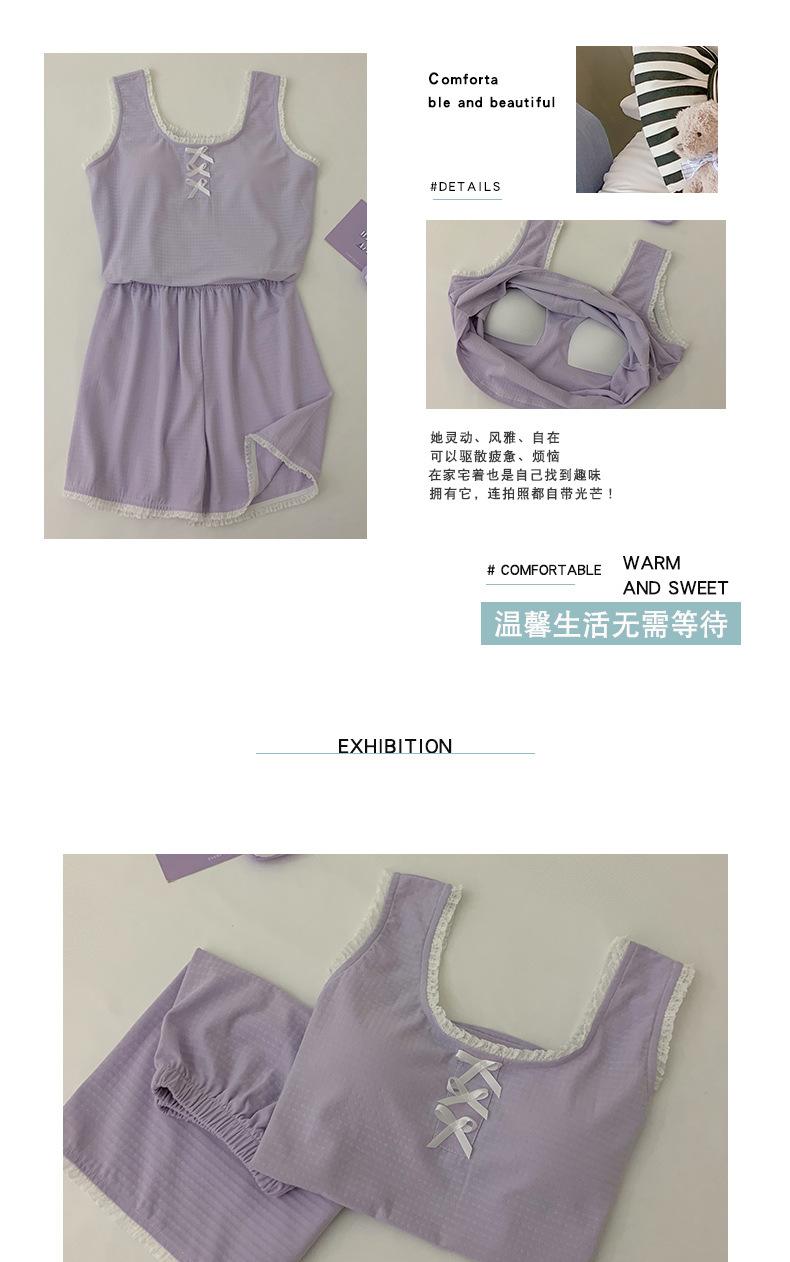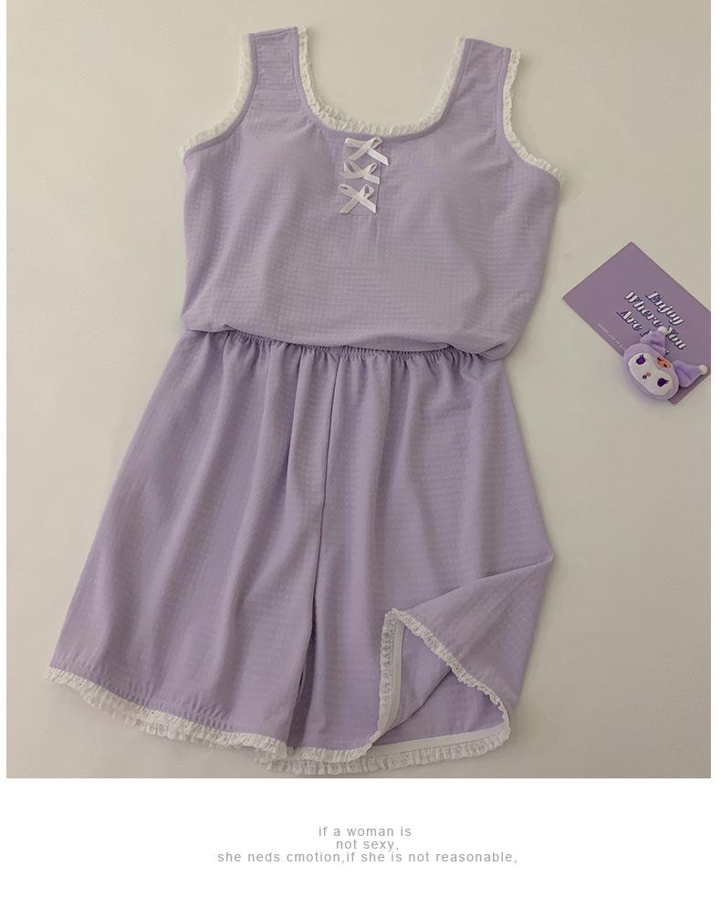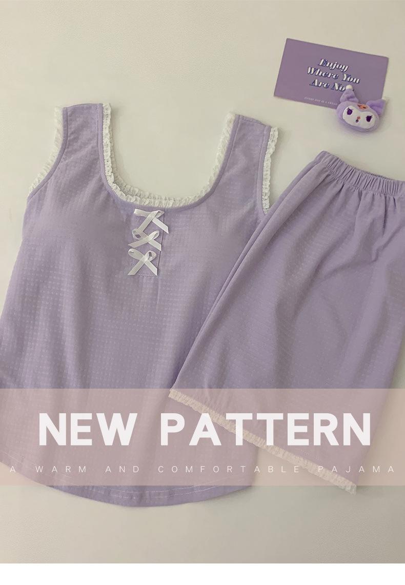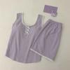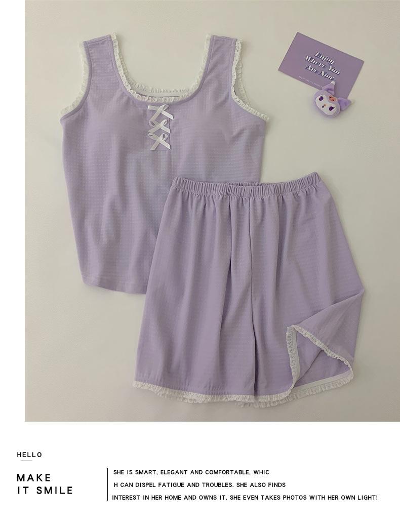 Verano Nuevo Pijama de Verano para Mujer Color Sólido Casual Camiseta sin Mangas Shorts Lazo Conjunto para Estar en Casa