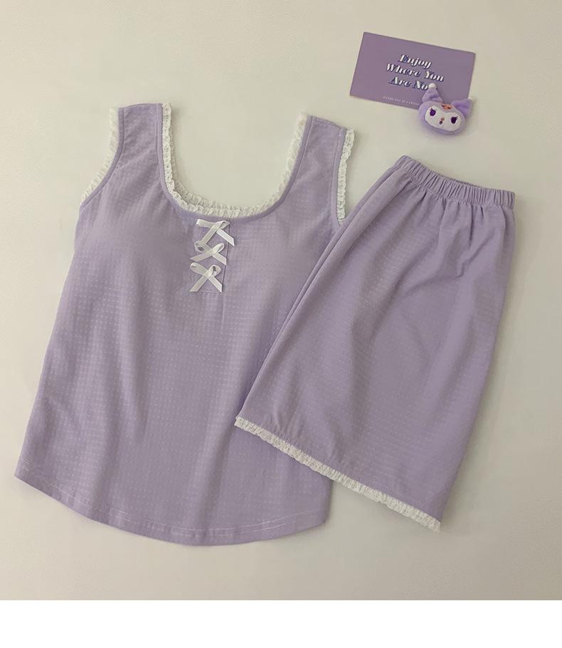 Purple-Bow Lace Vest Set, Apricot-Bow Lace Vest Set, Green - Bow Lace Vest Set