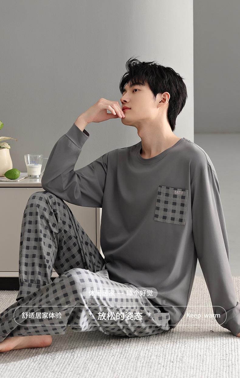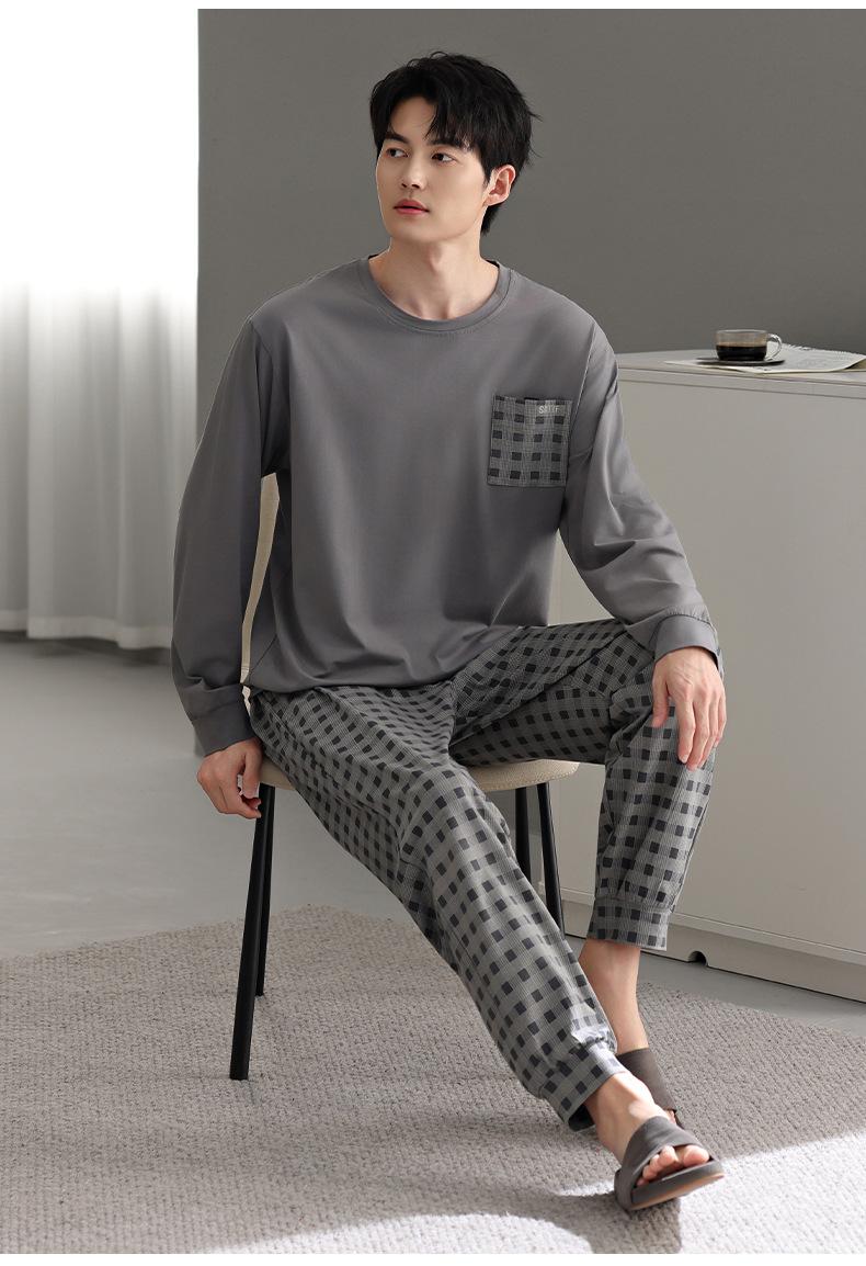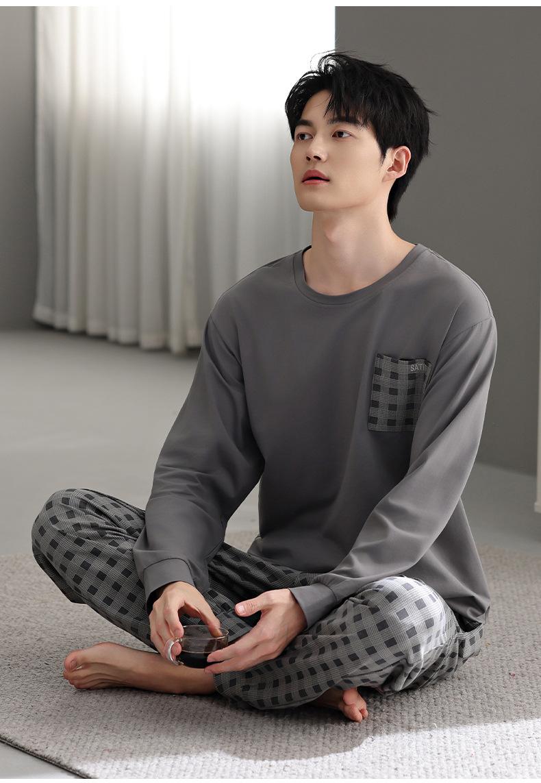 Pijamas para hombre estilo primavera y otoño algodón puro manga larga para hombre otoño 2025 nuevo casual para hombre delgado talla grande ropa para el hogar