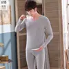 Set de Camiseta de Manga Larga de Cuello Redondo para Hombre Talla Extra Ropa de Otoño Engrosada para Mediana Edad y Ancianos y Pantalones Ropa Interior Cálida para Adolescentes