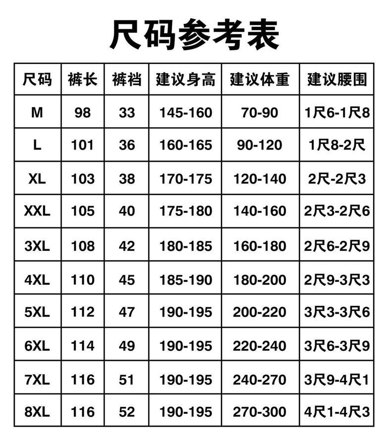 L fits 100 jin to 120 jin, XL fits 120 jin to 140 jin, 2XL fits 140 jin to 160 jin, 3XL fits 160 jin to 180 ji...