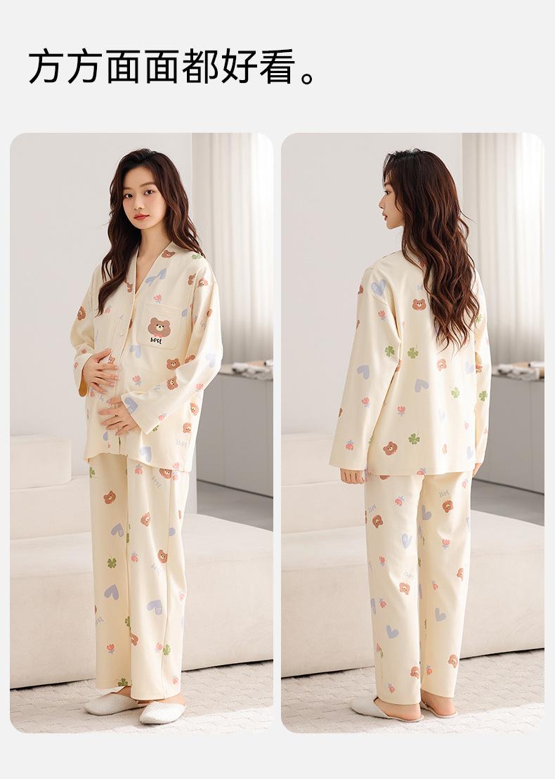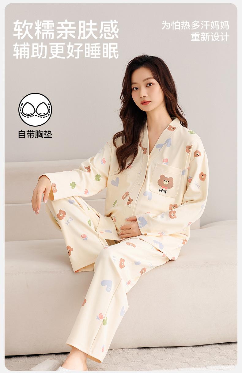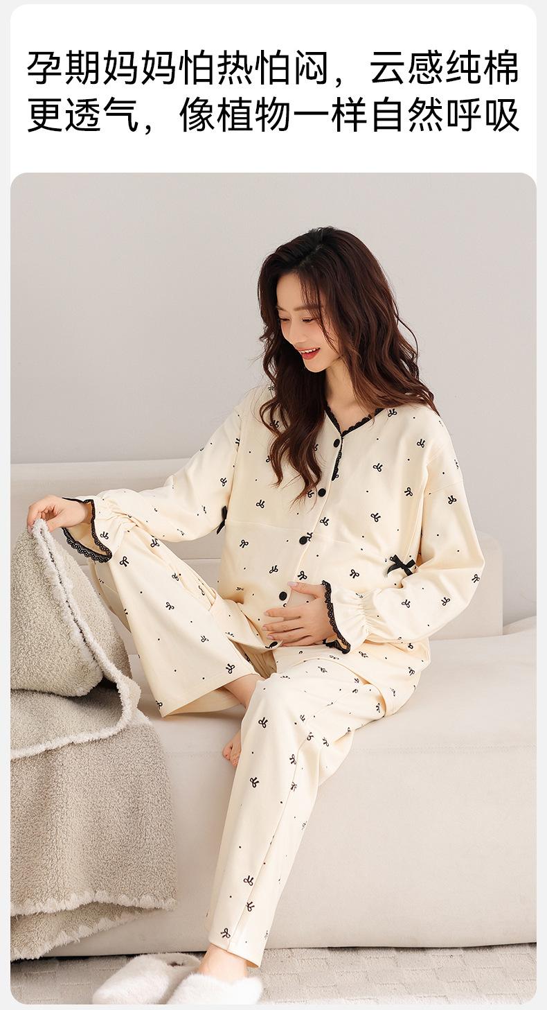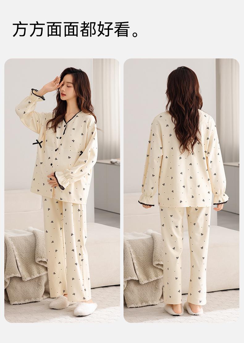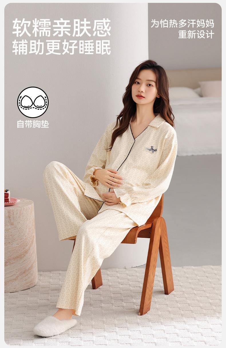 Con almohadillas en el pecho ropa de maternidad algodón puro manga larga primavera y otoño posparto mujeres embarazadas maternidad para ser entregado lactancia auxiliar pecho ropa conjunto para el hogar
