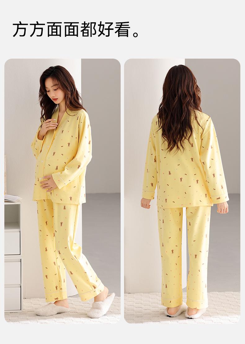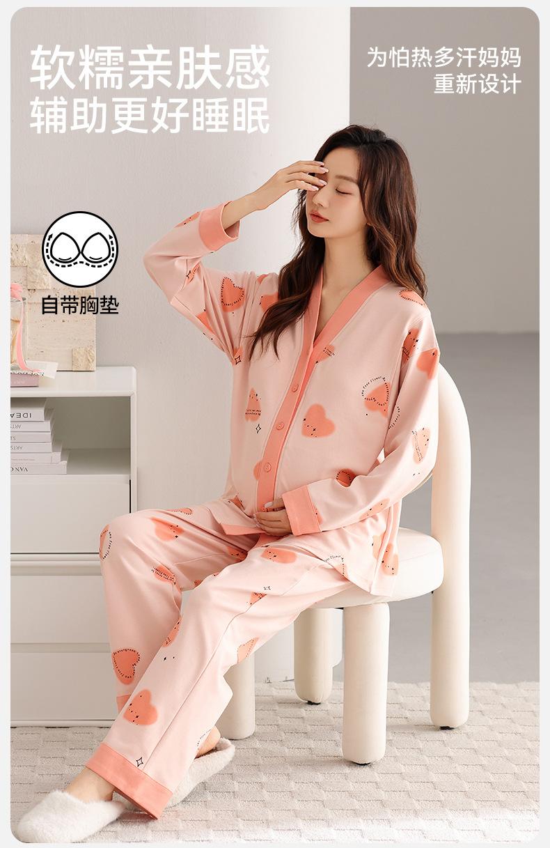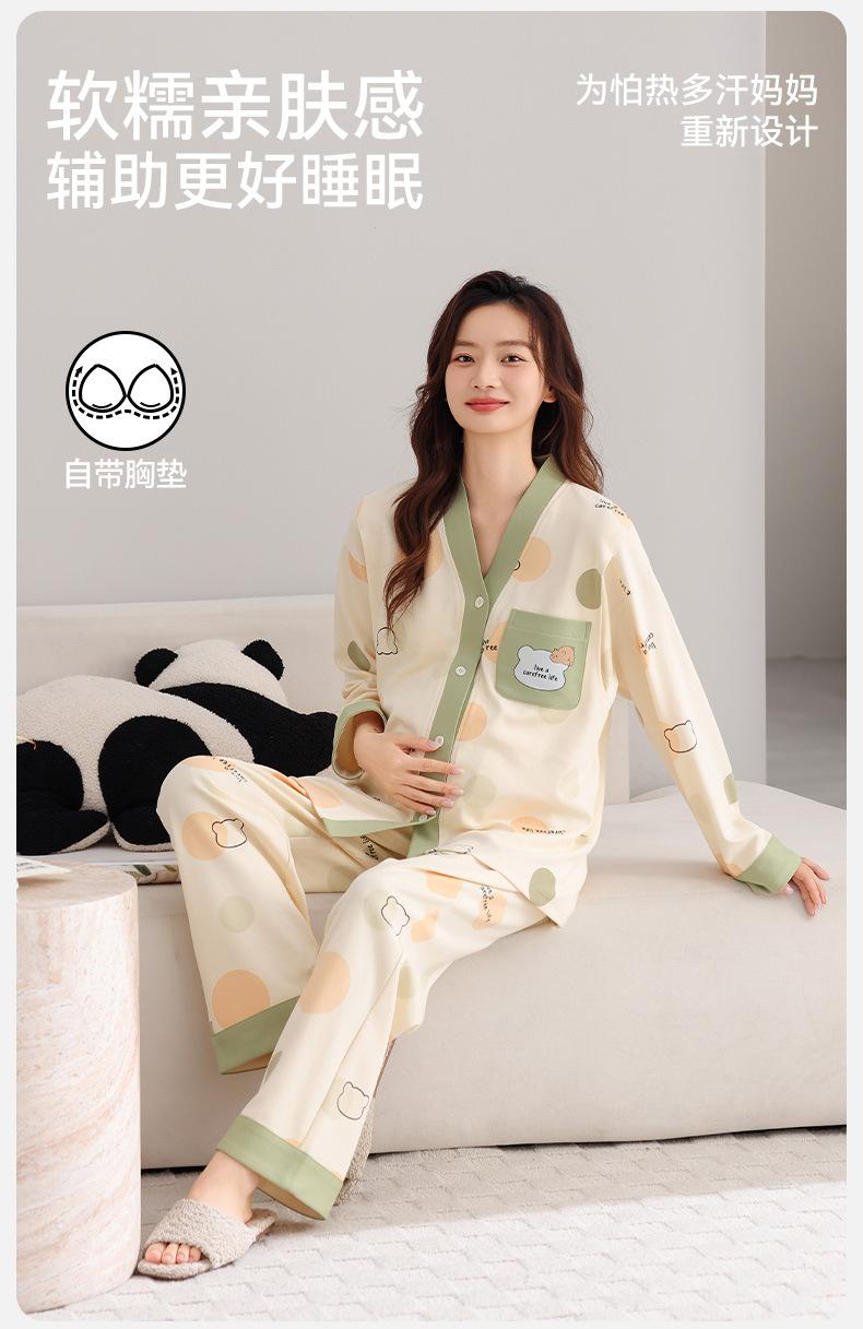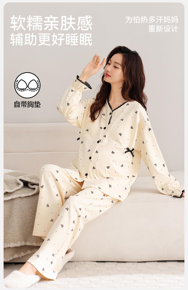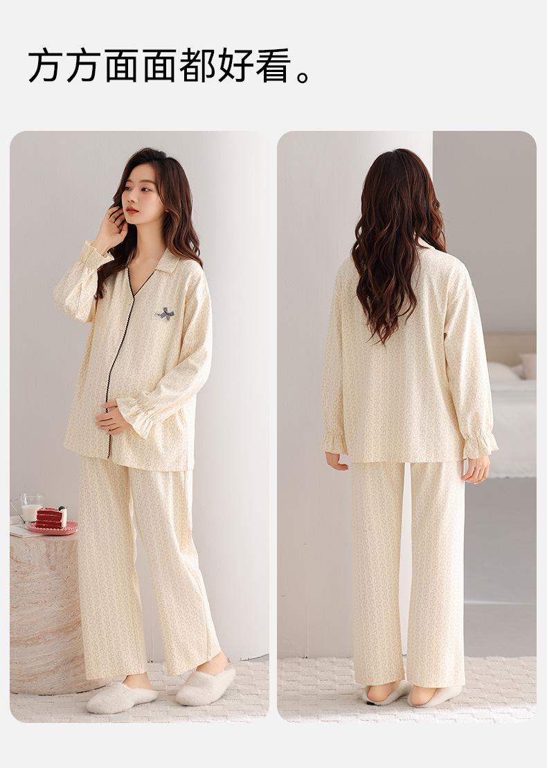 Con almohadillas en el pecho ropa de maternidad algodón puro manga larga primavera y otoño posparto mujeres embarazadas maternidad para ser entregado lactancia auxiliar pecho ropa conjunto para el hogar