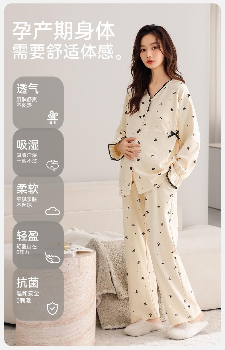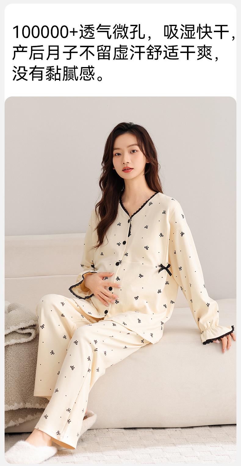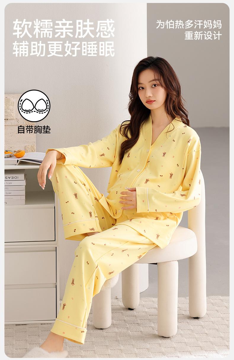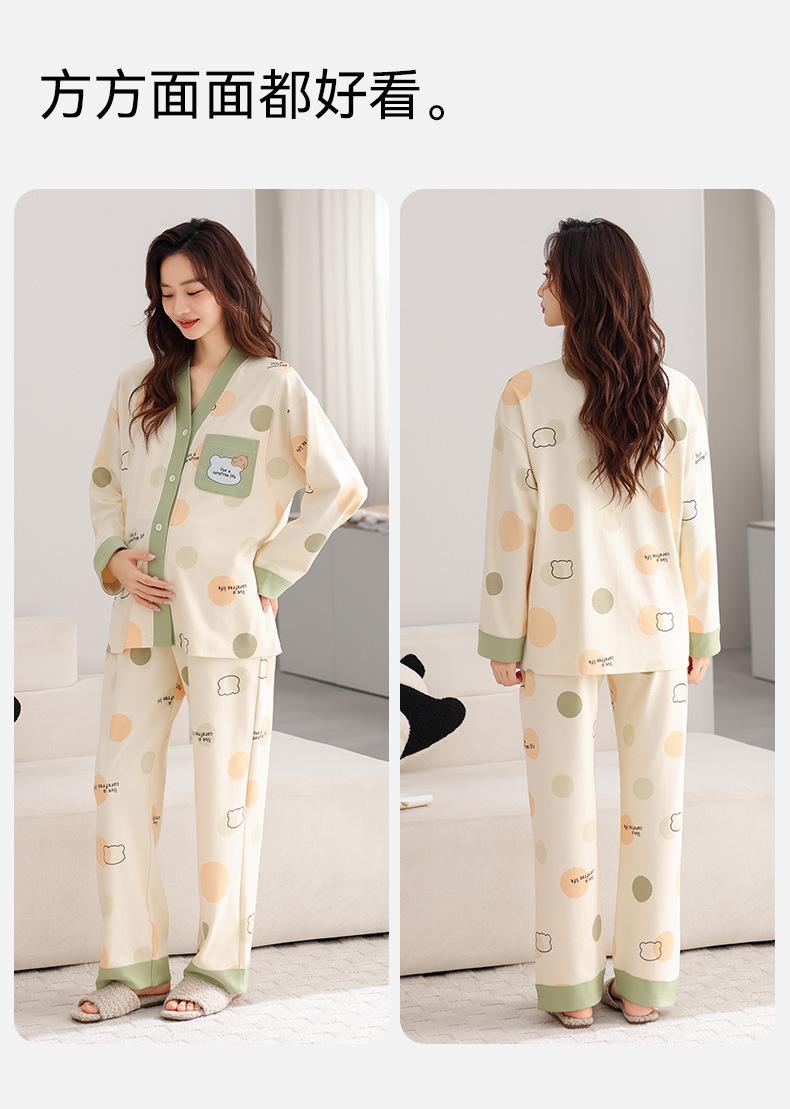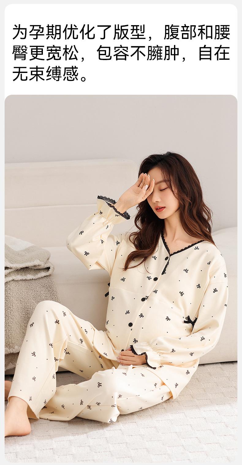 Con almohadillas en el pecho ropa de maternidad algodón puro manga larga primavera y otoño posparto mujeres embarazadas maternidad para ser entregado lactancia auxiliar pecho ropa conjunto para el hogar