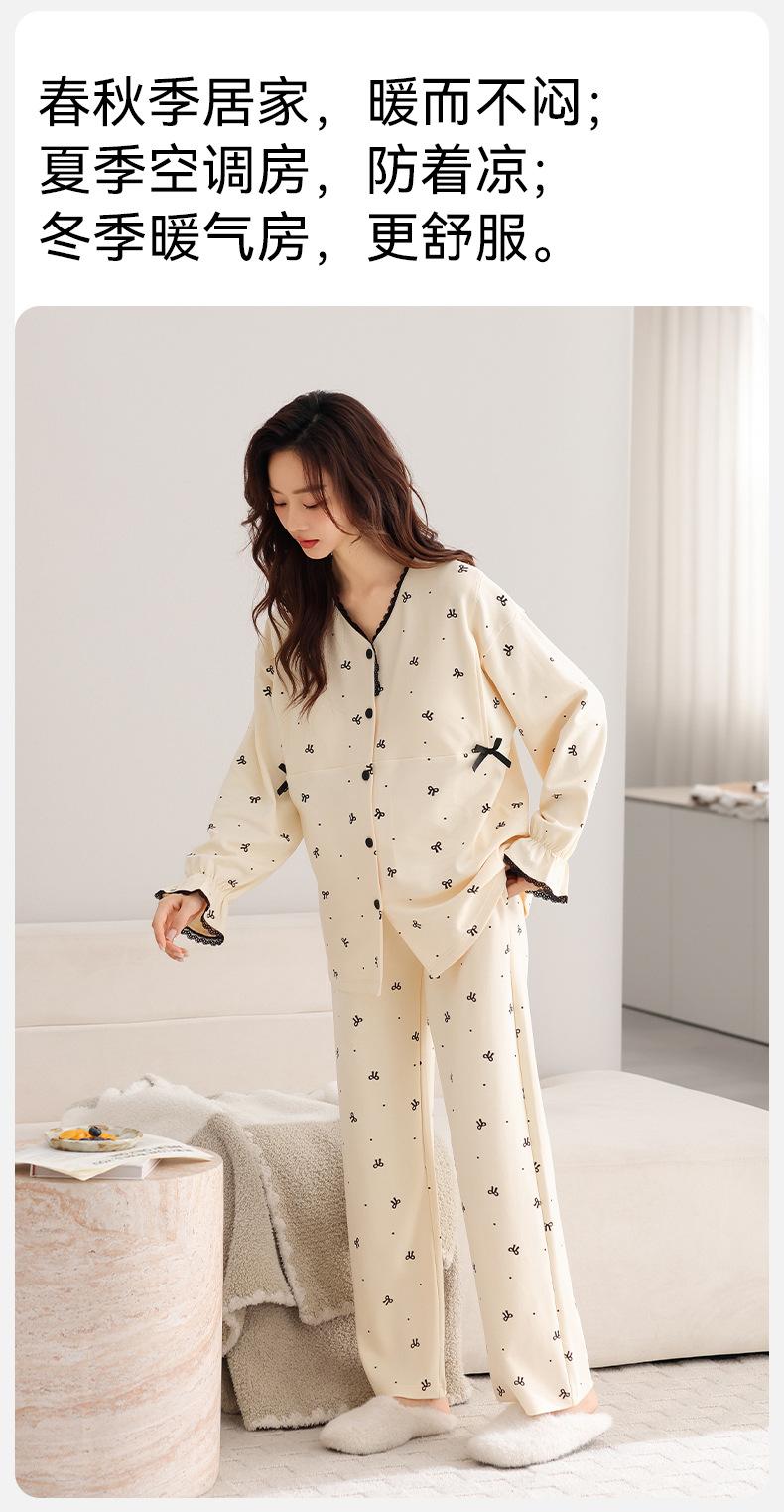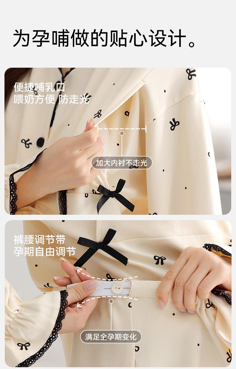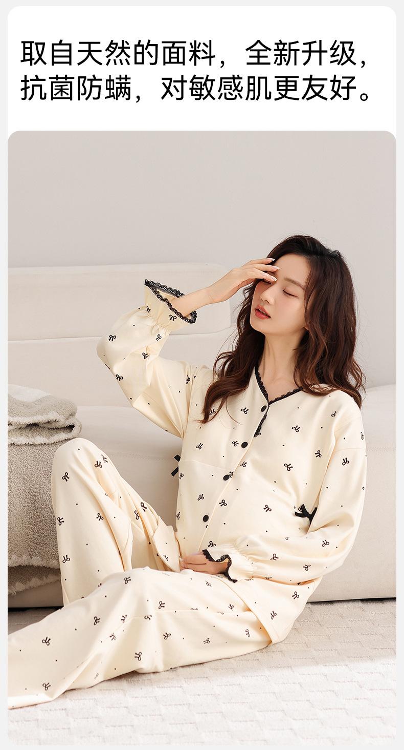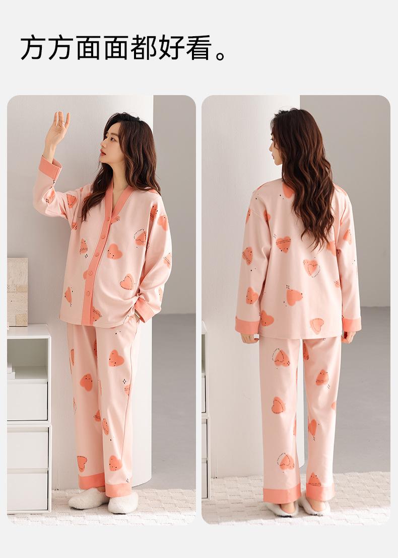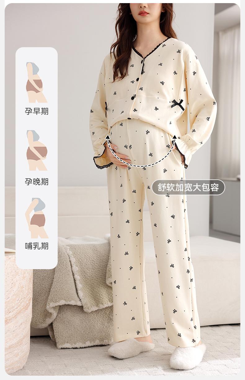 Con almohadillas en el pecho ropa de maternidad algodón puro manga larga primavera y otoño posparto mujeres embarazadas maternidad para ser entregado lactancia auxiliar pecho ropa conjunto para el hogar