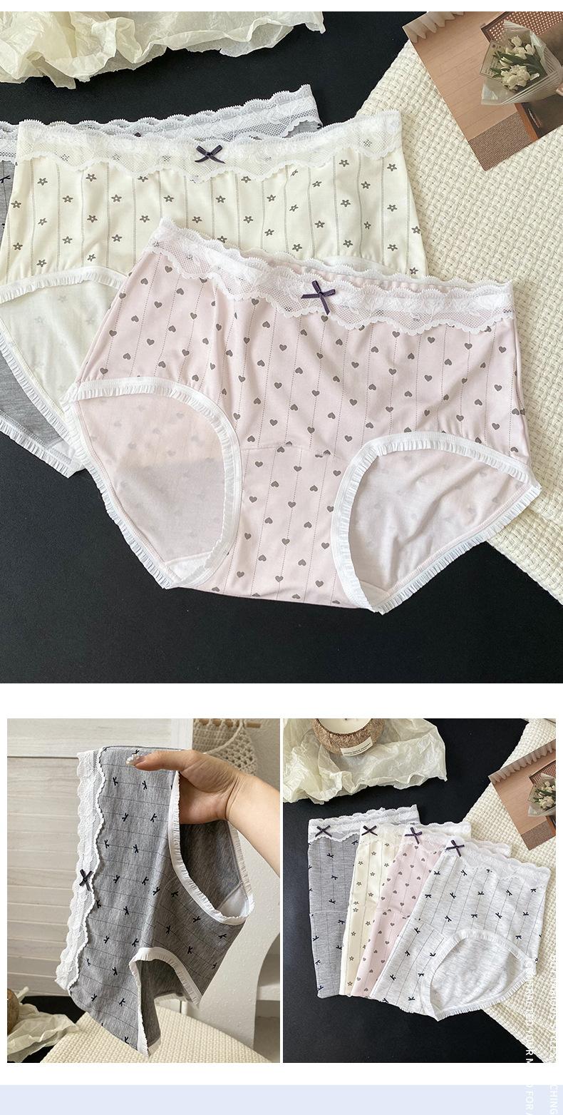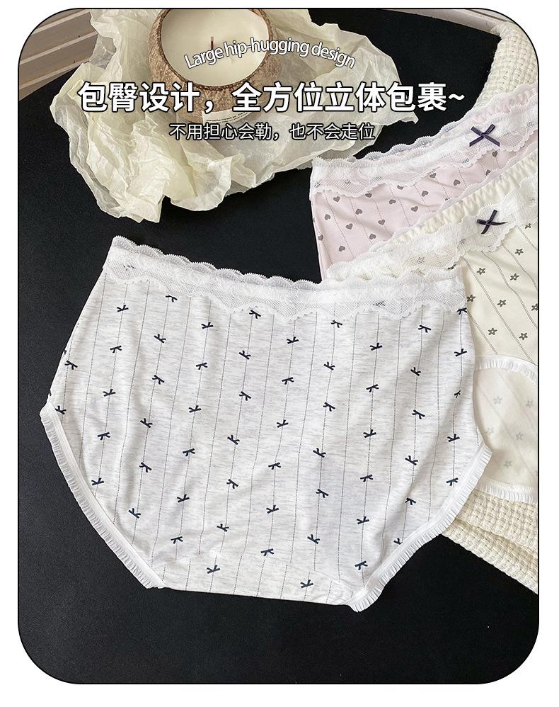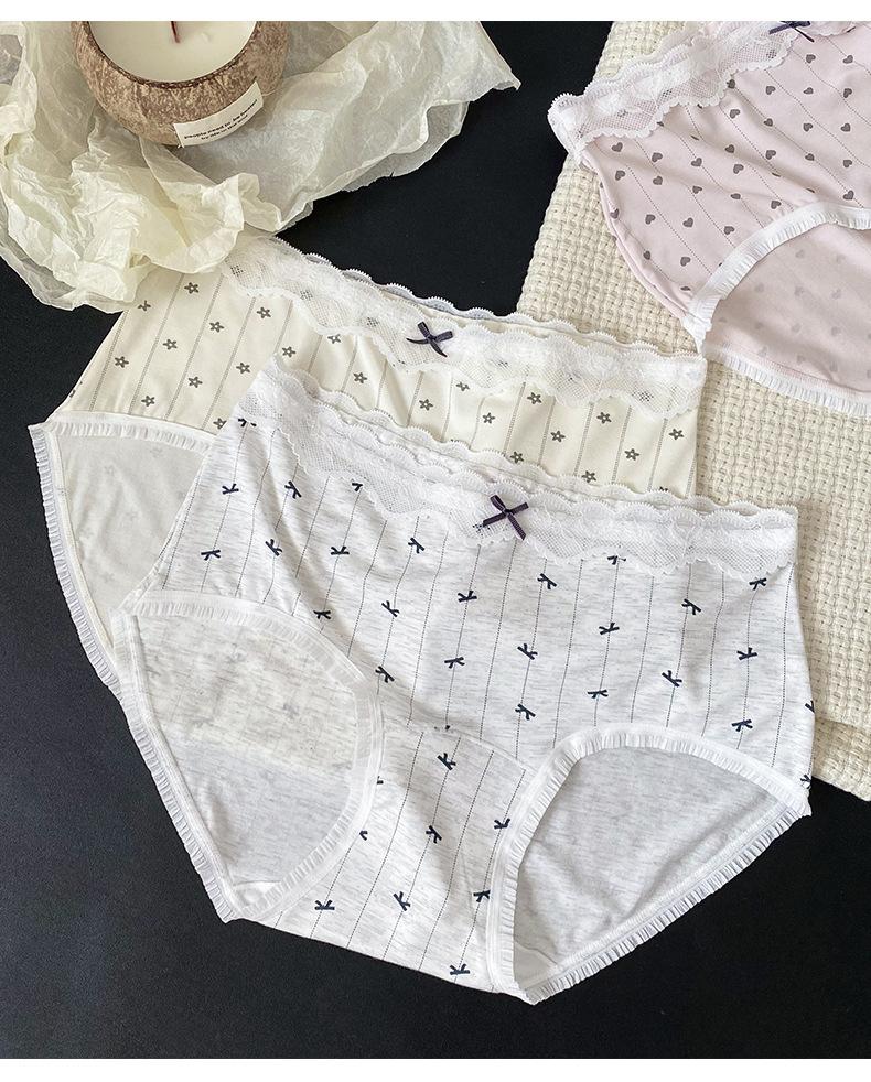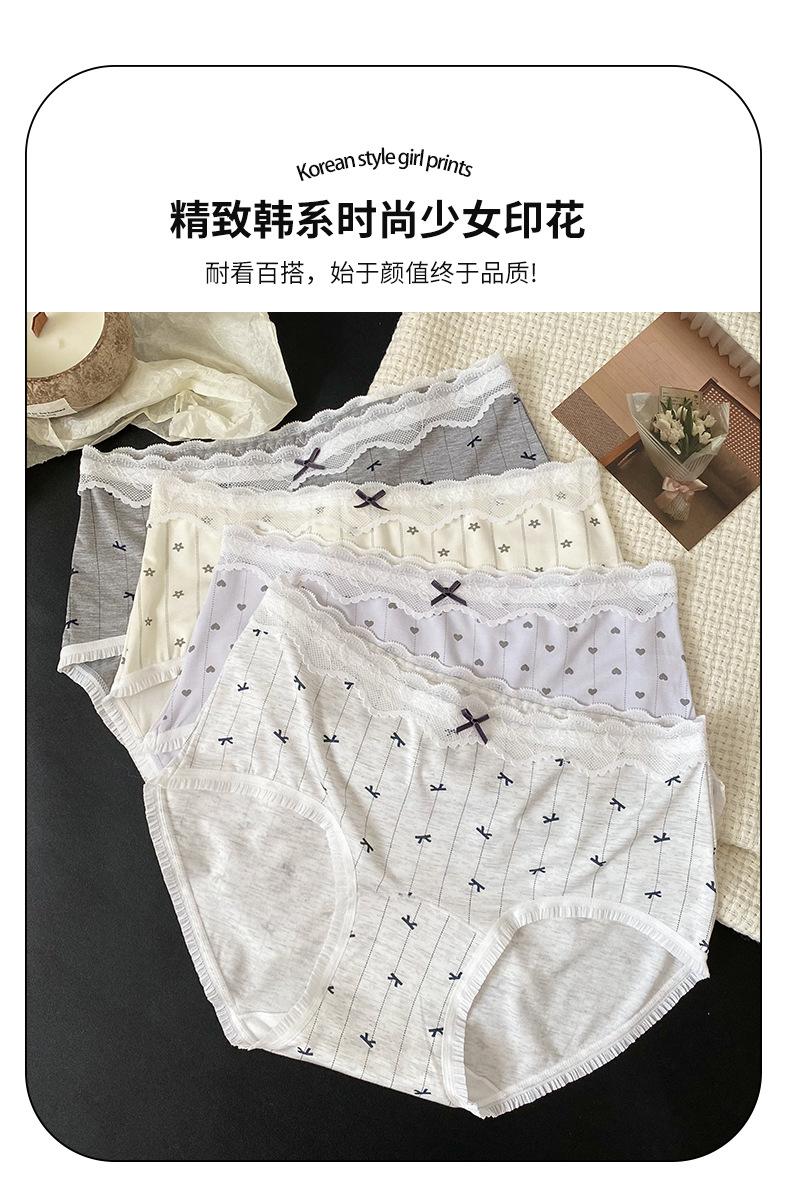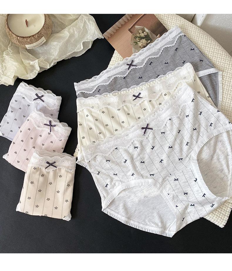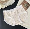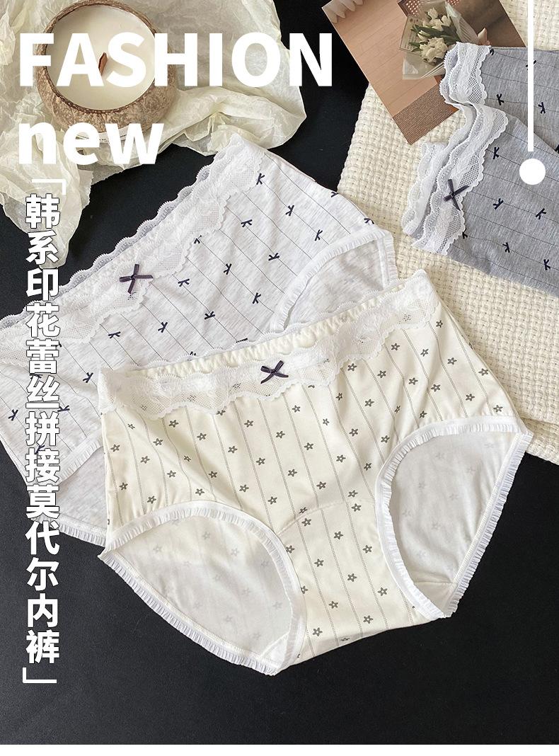Calzones Coreanos Estampado Completo Modal Cintura Media Entrepierna de Algodón Puro Encaje Cadera Calzones Transpirables