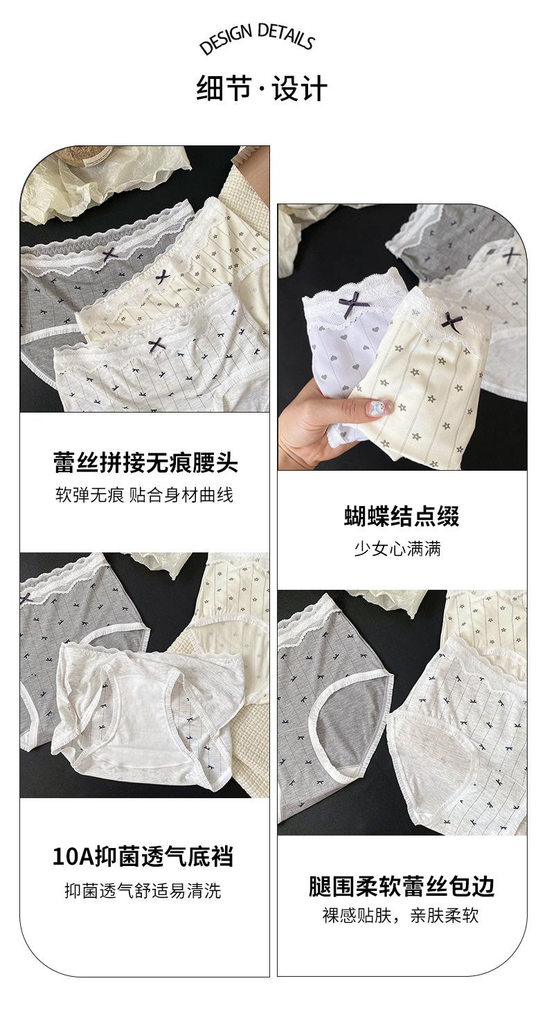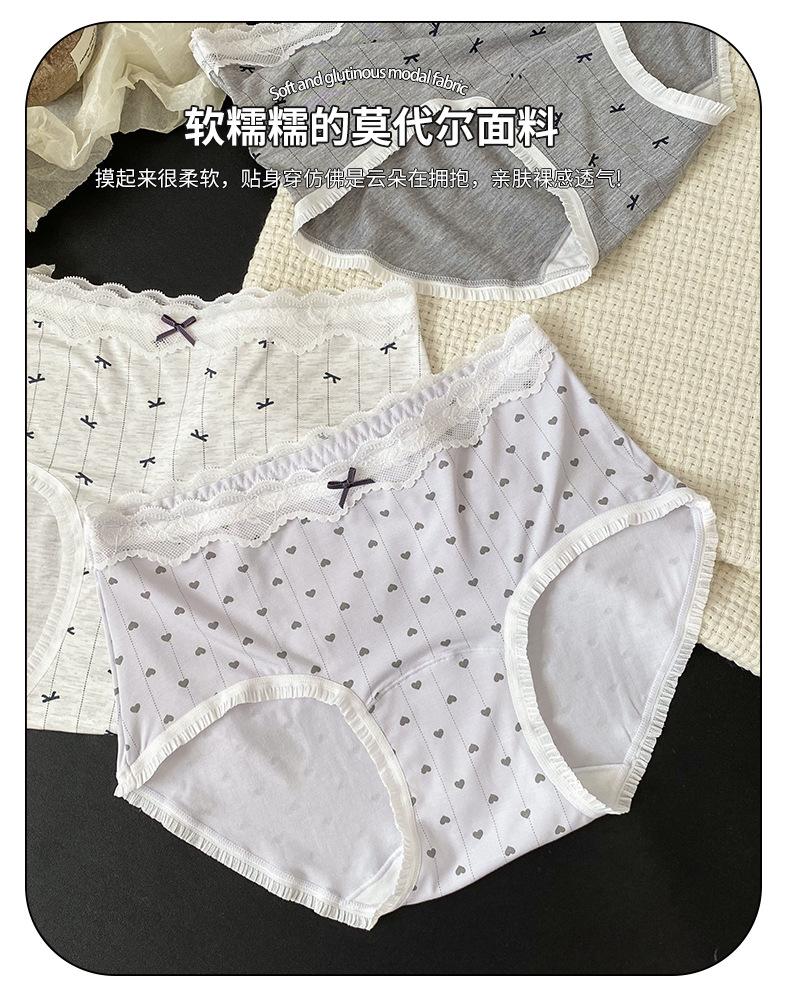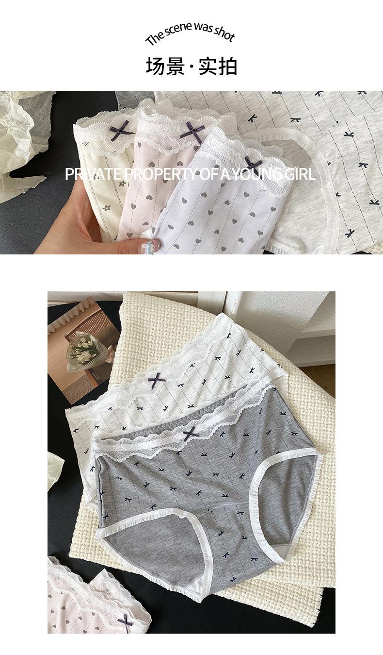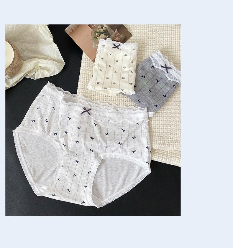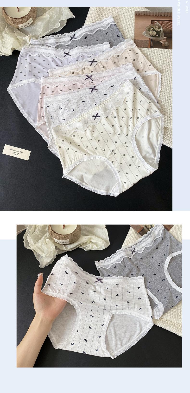 Calzones Coreanos Estampado Completo Modal Cintura Media Entrepierna de Algodón Puro Encaje Cadera Calzones Transpirables