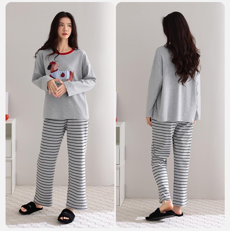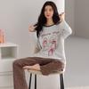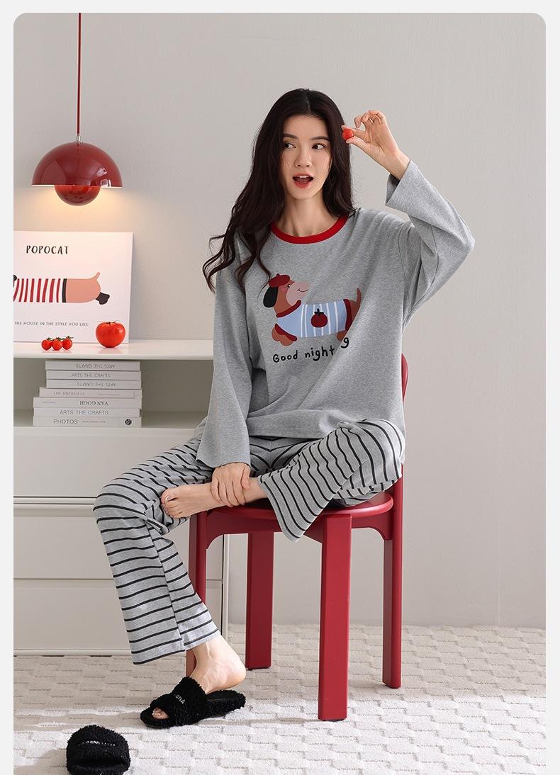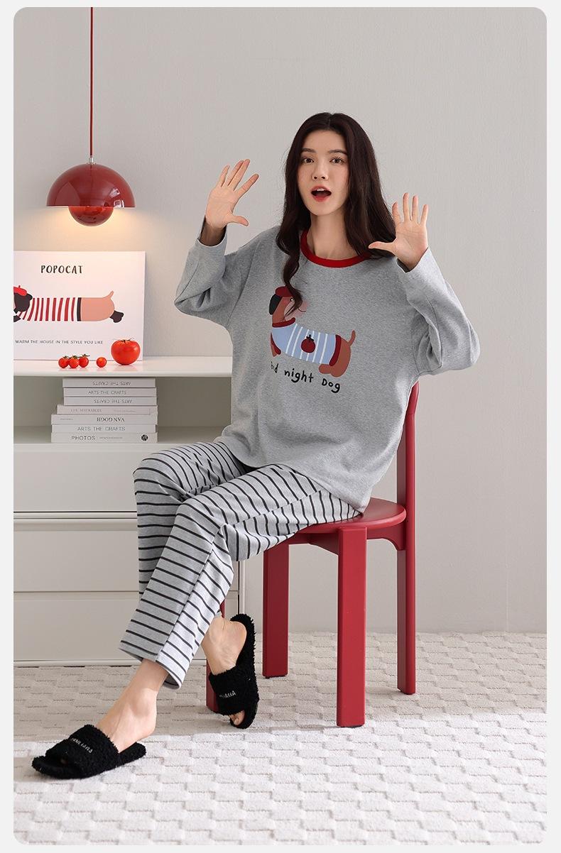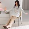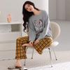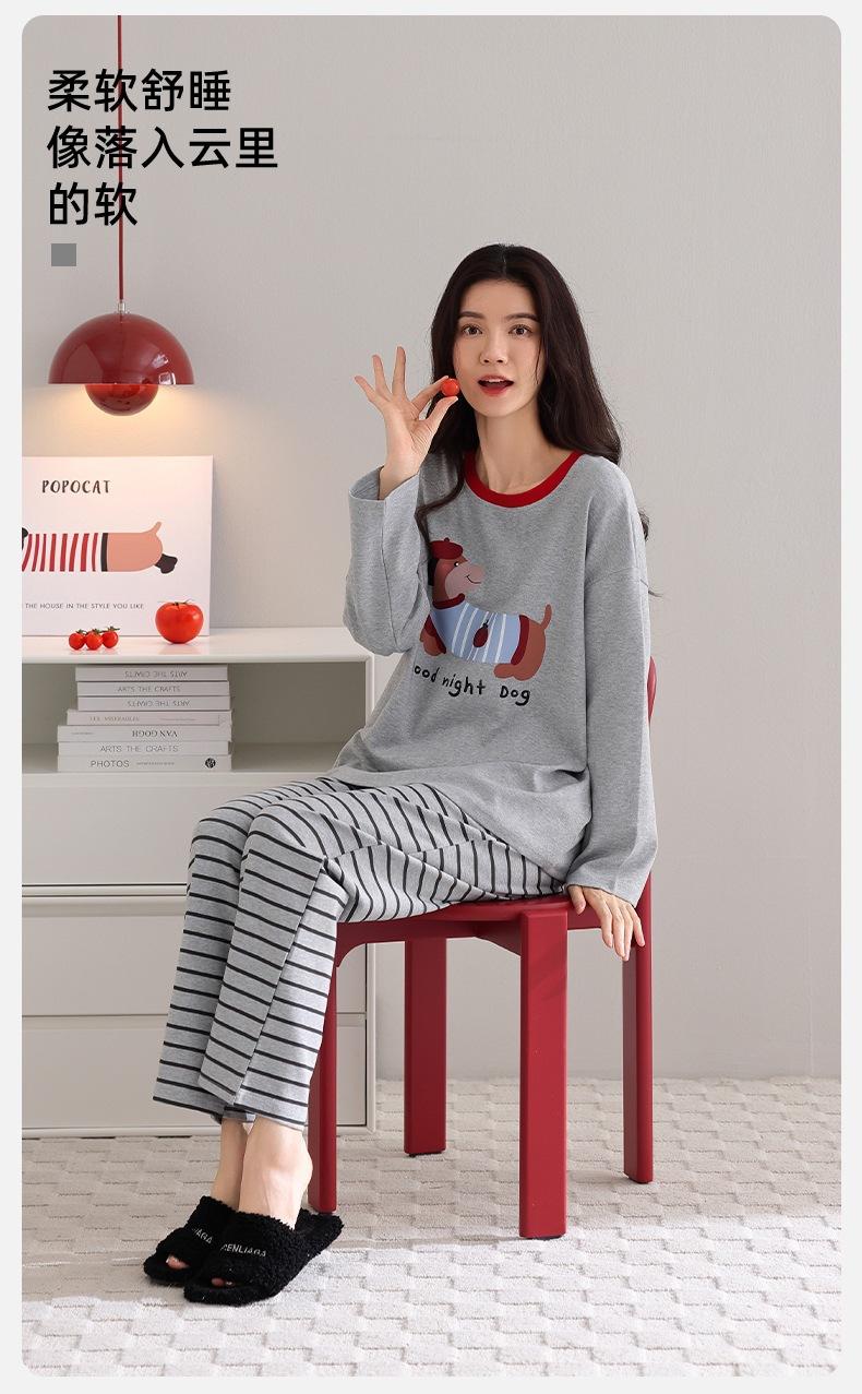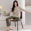Pijama de Algodón de Otoño al por Mayor para Mujer, Conjunto de Dos Piezas de Ropa de Dormir de Algodón Vivo con Jersey de Manga Larga y Pantalones Largos para Primavera y Otoño
