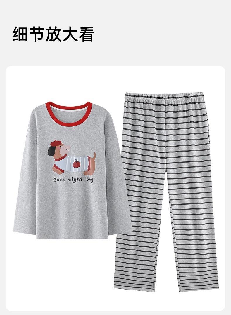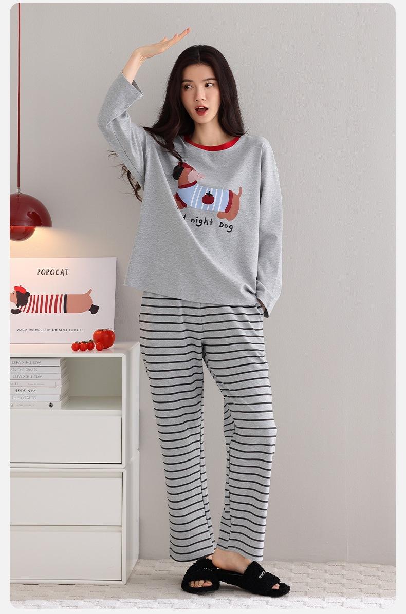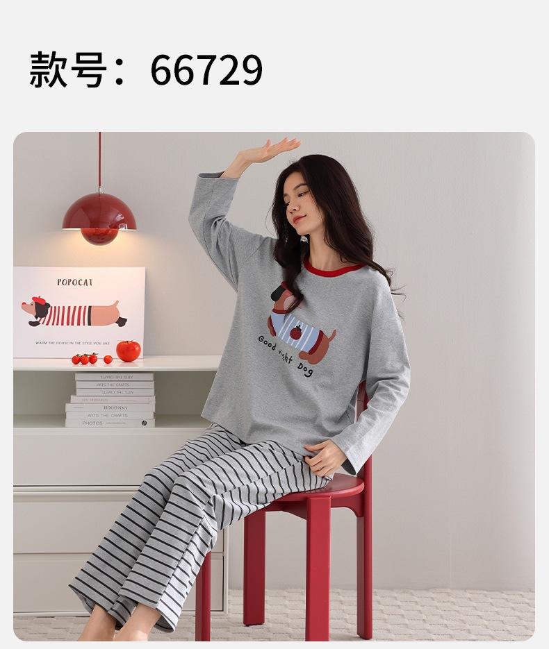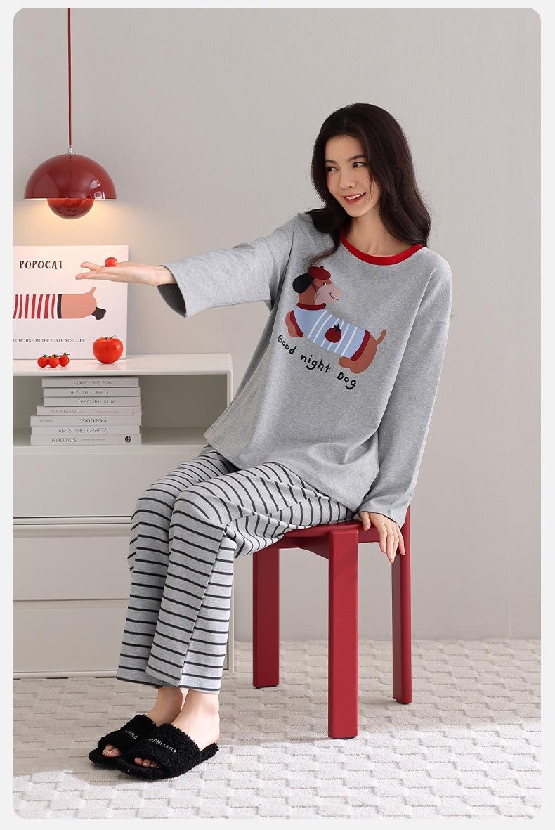 Pijama de Algodón de Otoño al por Mayor para Mujer, Conjunto de Dos Piezas de Ropa de Dormir de Algodón Vivo con Jersey de Manga Larga y Pantalones Largos para Primavera y Otoño