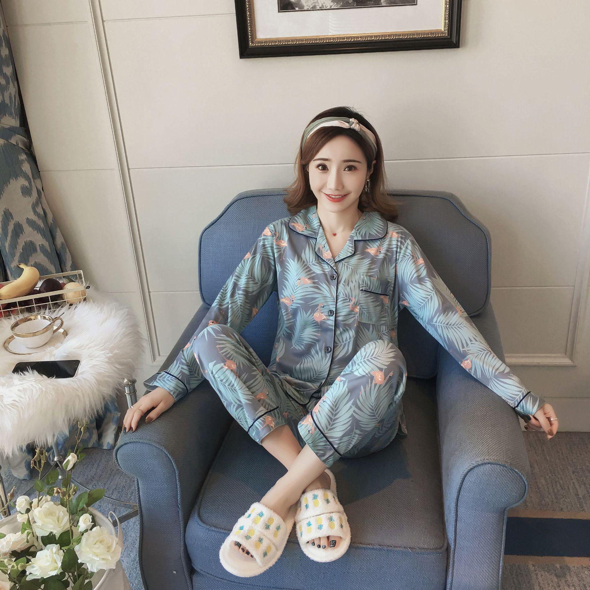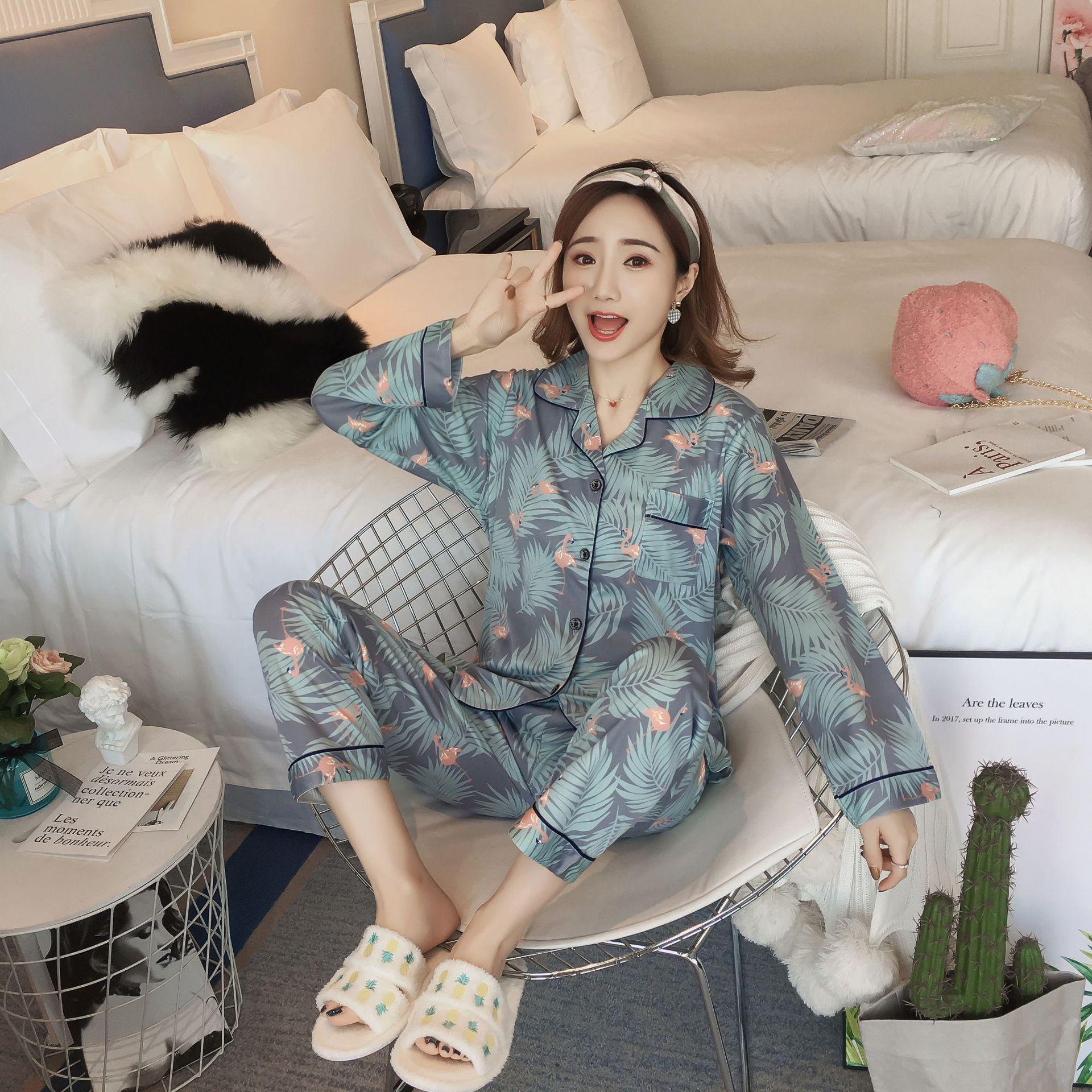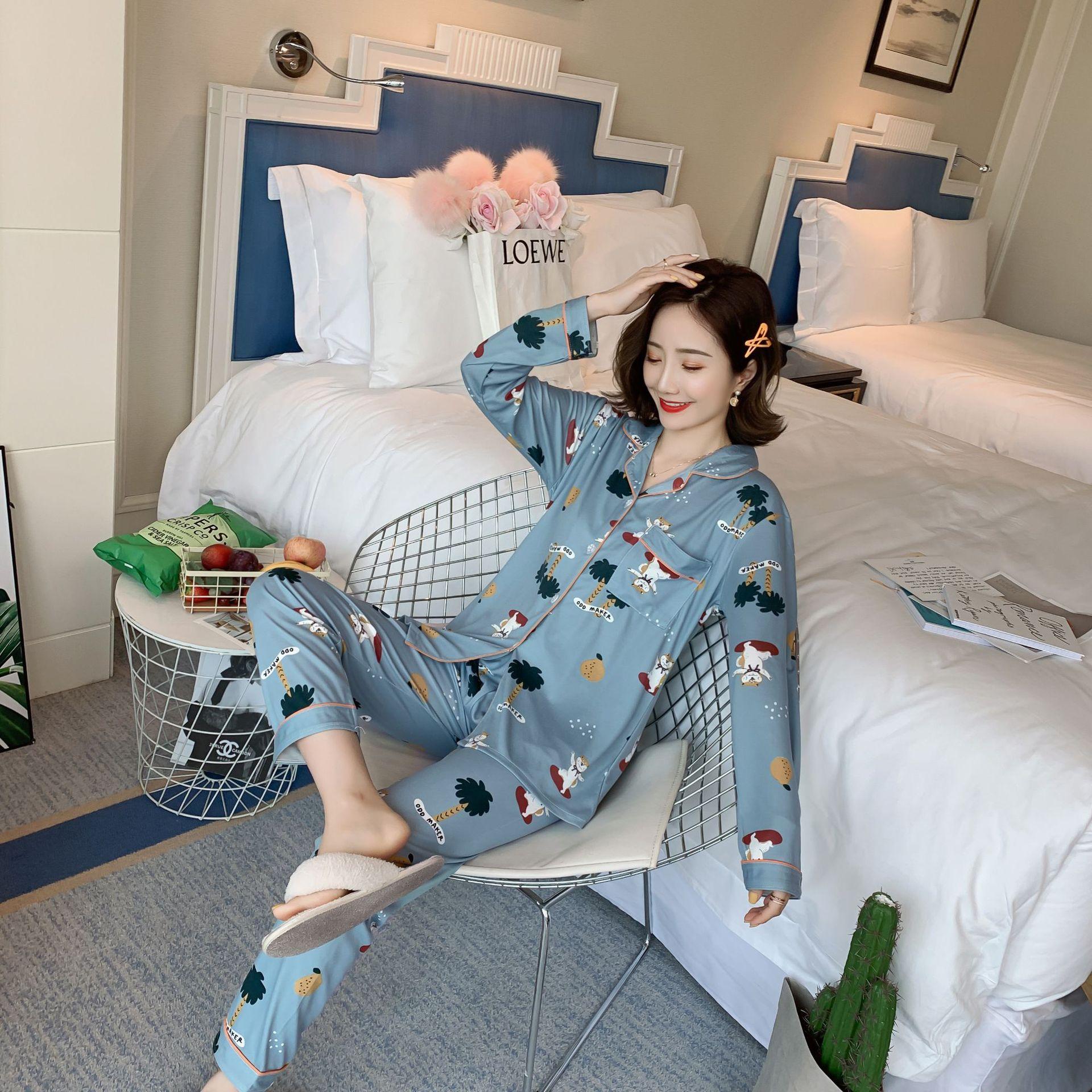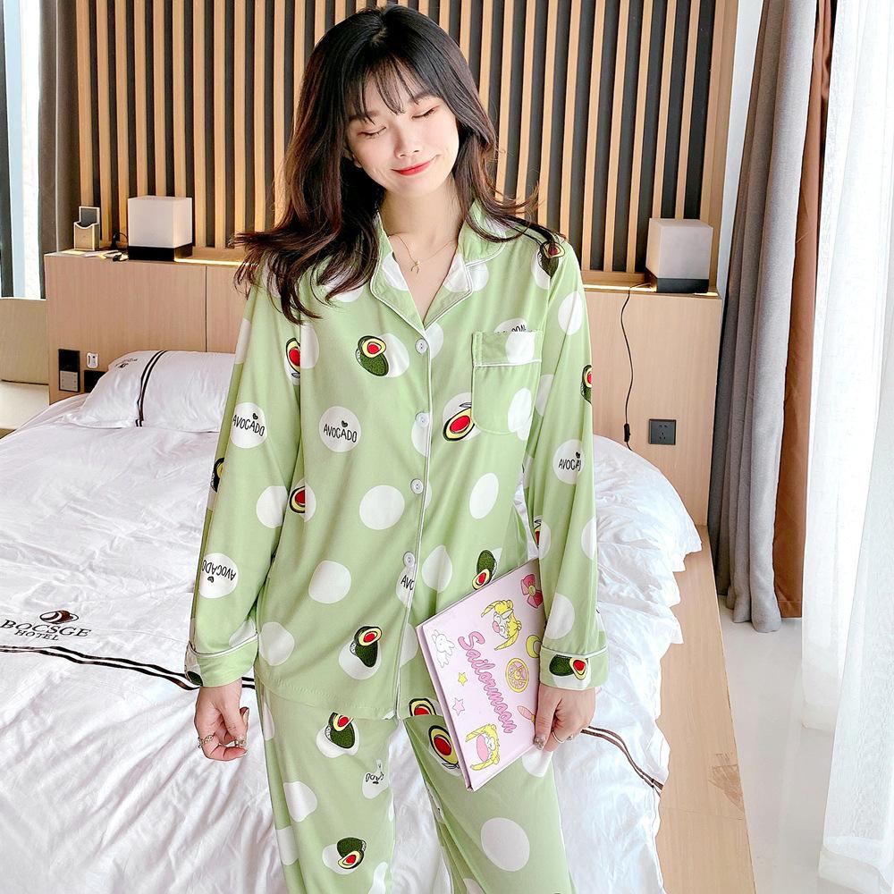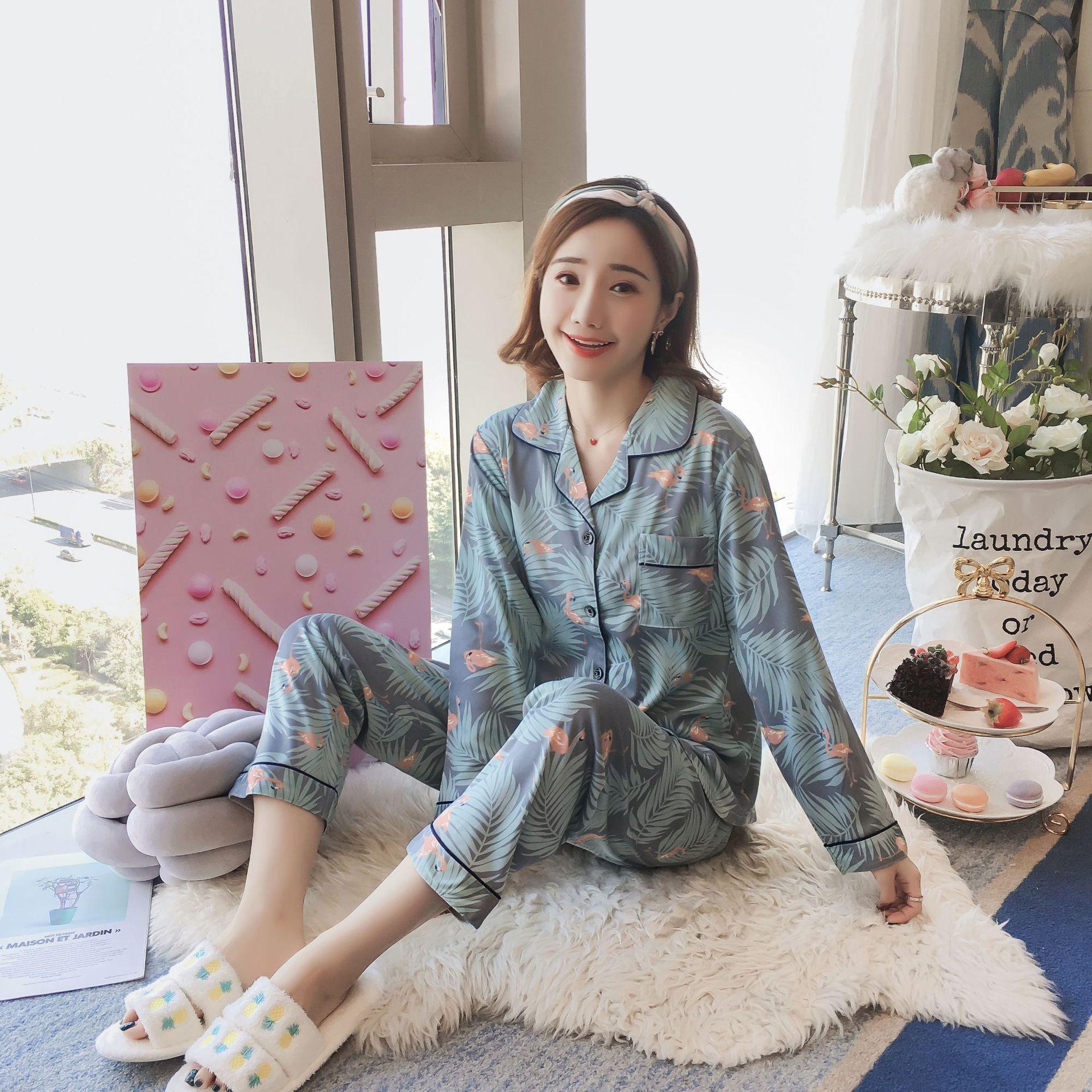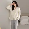 Nuevo Conjunto de Pijama para Mujer de Primavera/Verano con Cuello de Camisa, Ropa de Casa de Manga Larga y Pantalón Largo, Cárdigan, Conjunto de Pijama para Mujer, Sencillo, Casual