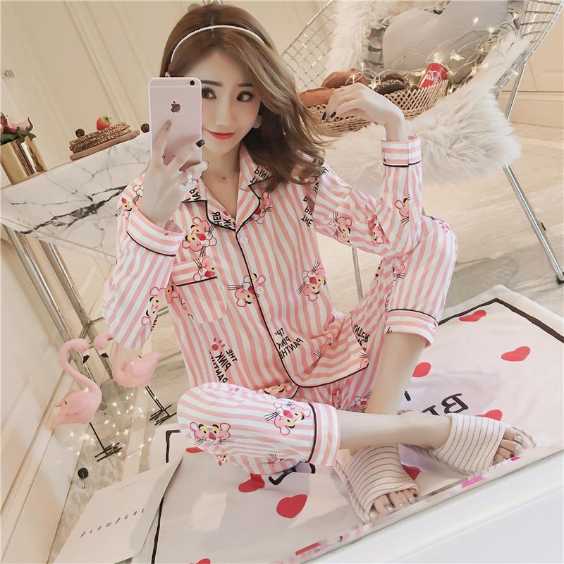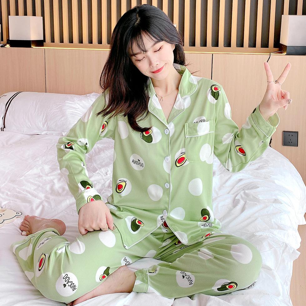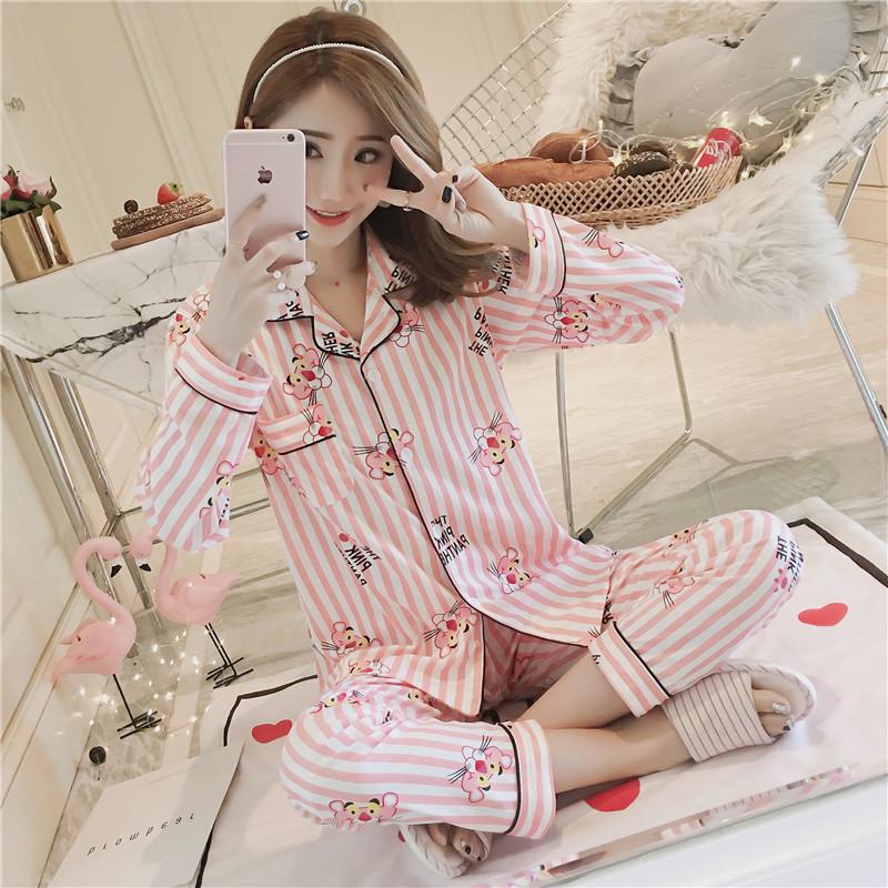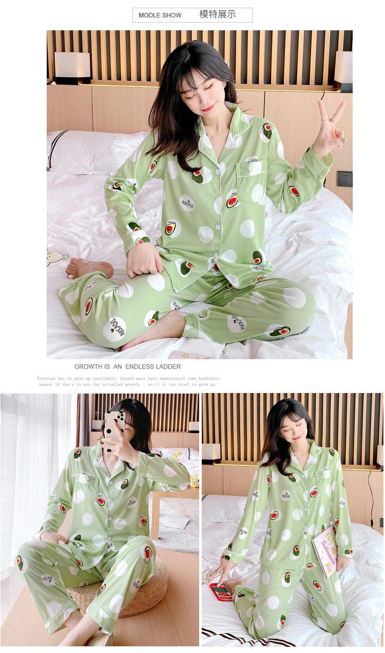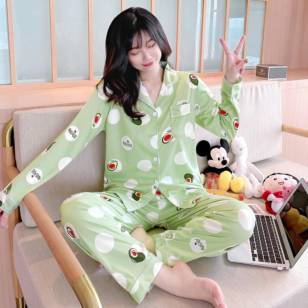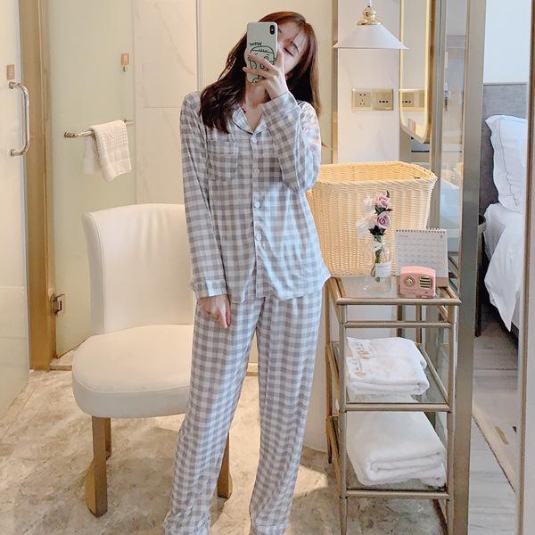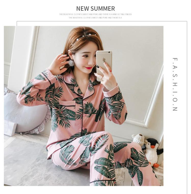 Nuevo Conjunto de Pijama para Mujer de Primavera/Verano con Cuello de Camisa, Ropa de Casa de Manga Larga y Pantalón Largo, Cárdigan, Conjunto de Pijama para Mujer, Sencillo, Casual