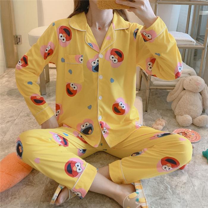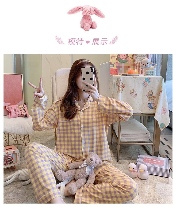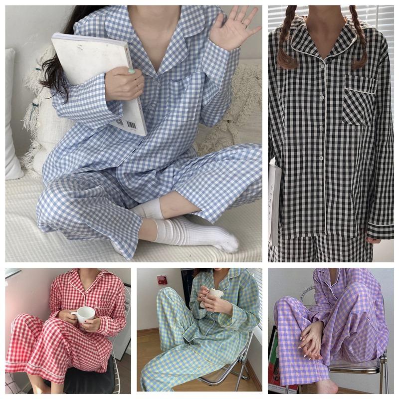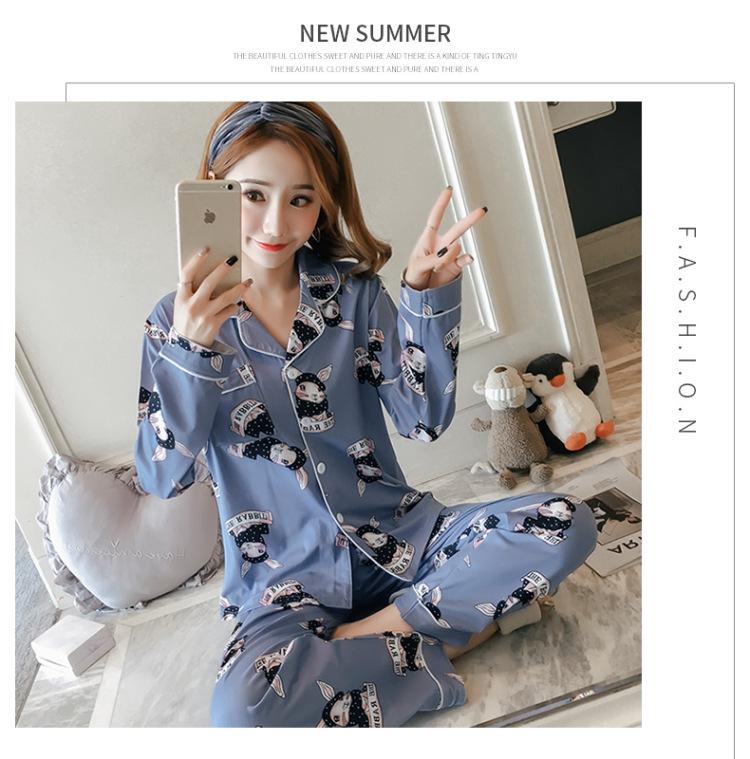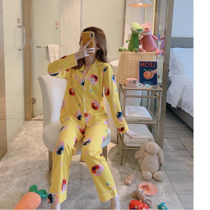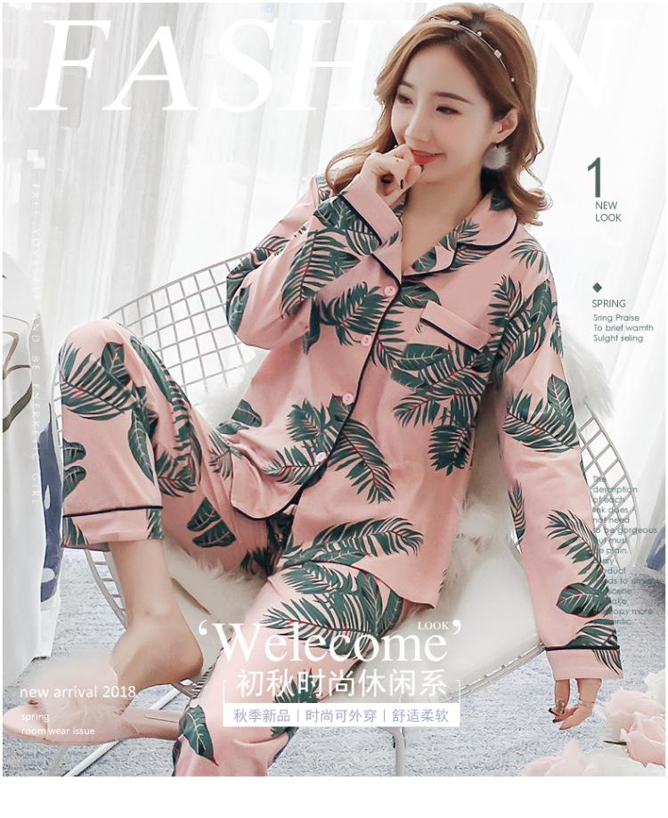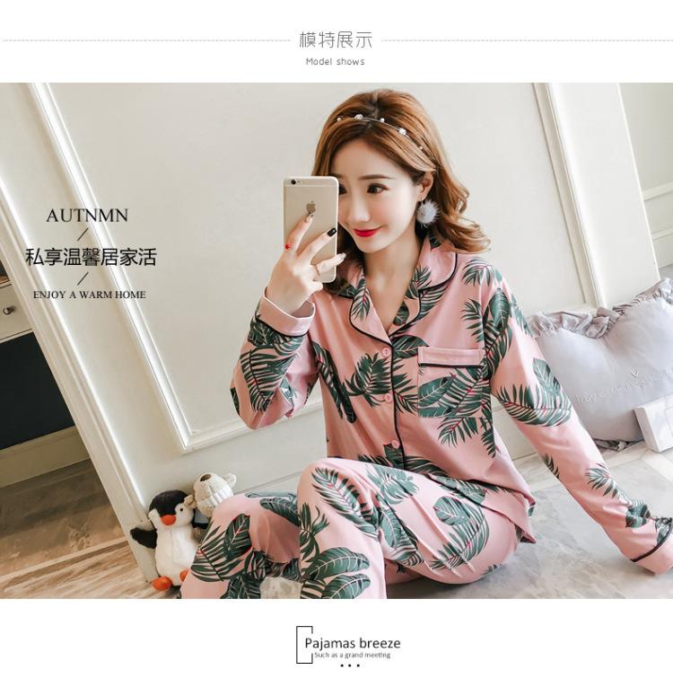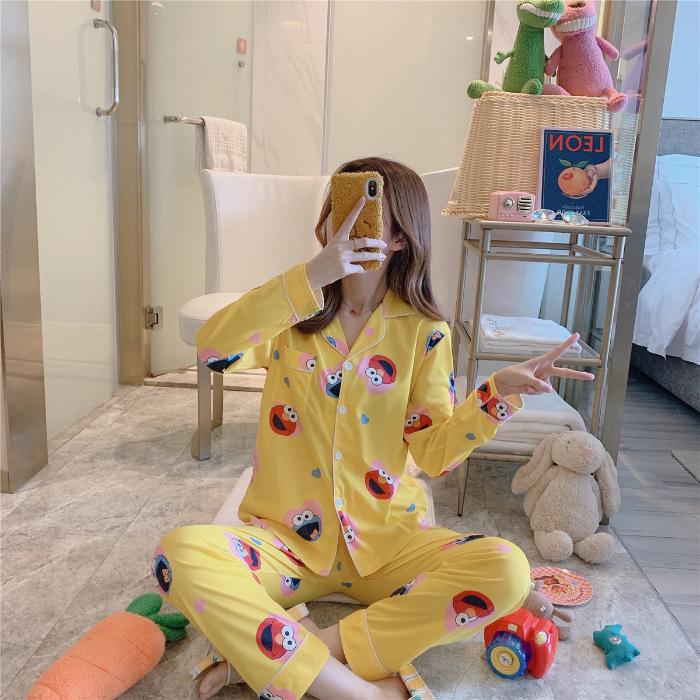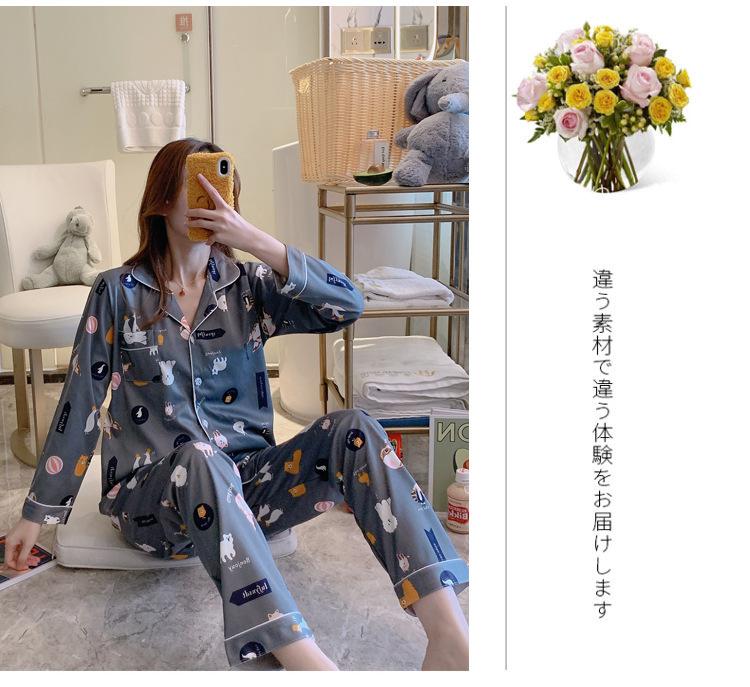 Nuevo Conjunto de Pijama para Mujer de Primavera/Verano con Cuello de Camisa, Ropa de Casa de Manga Larga y Pantalón Largo, Cárdigan, Conjunto de Pijama para Mujer, Sencillo, Casual