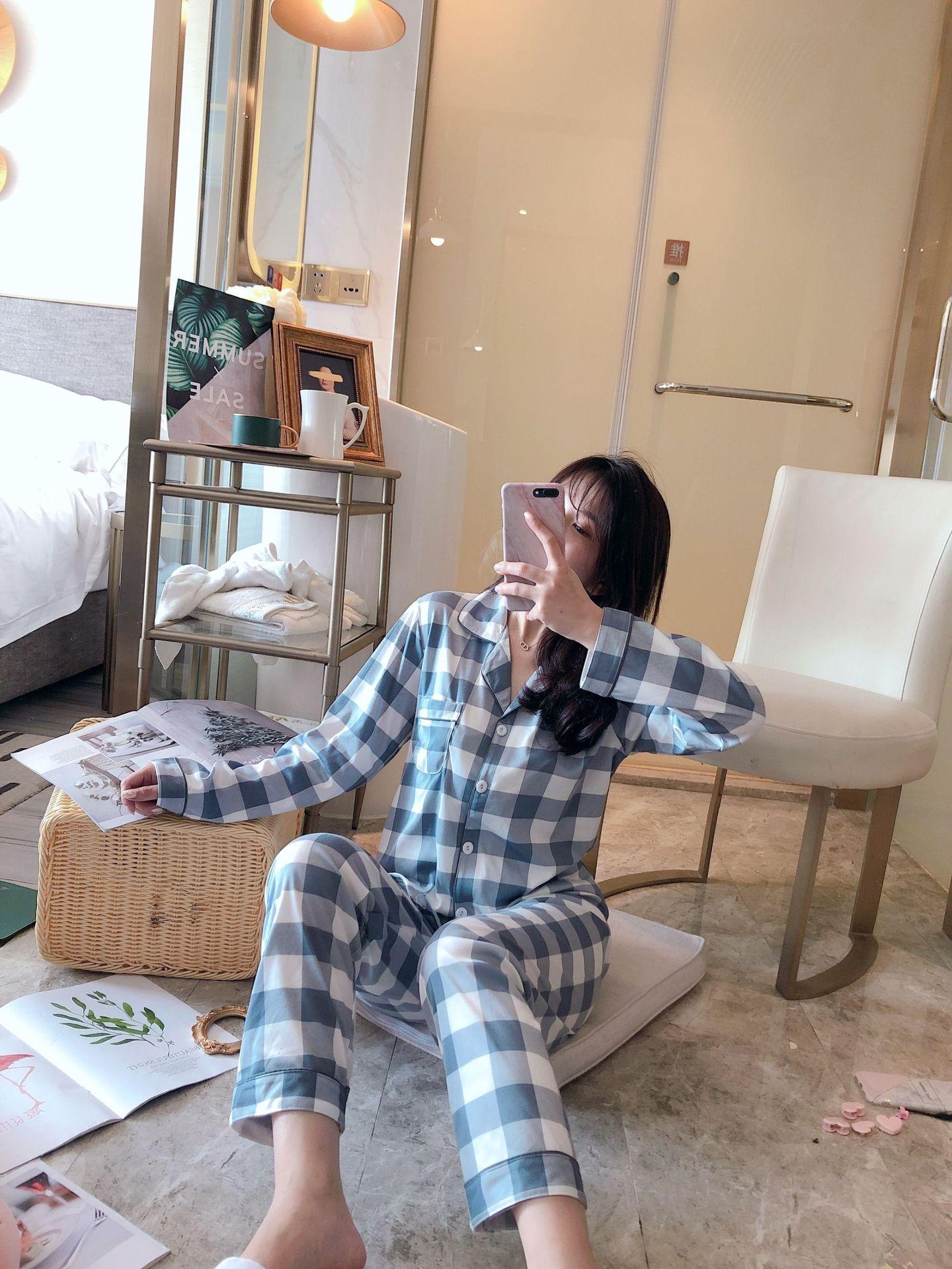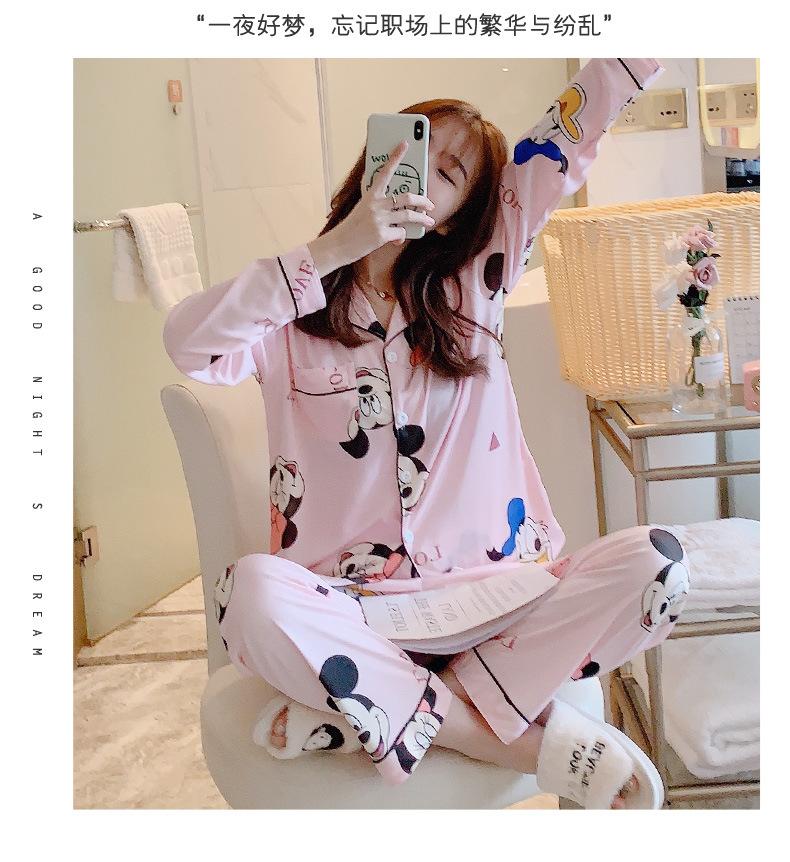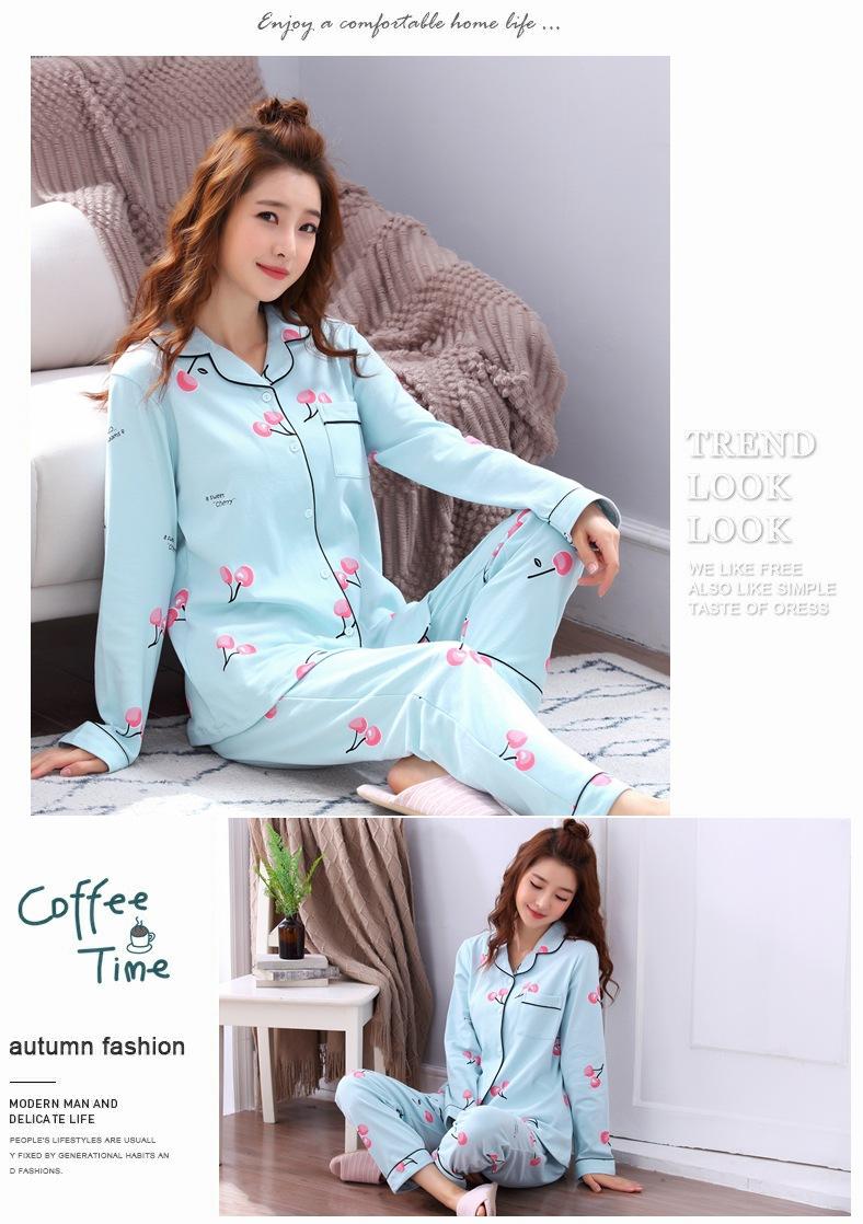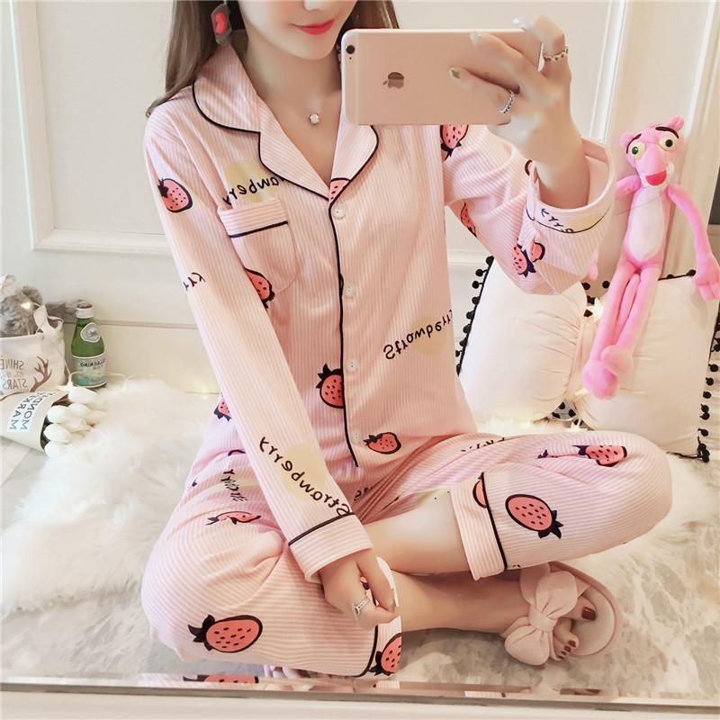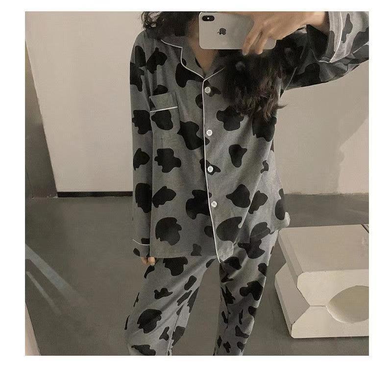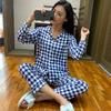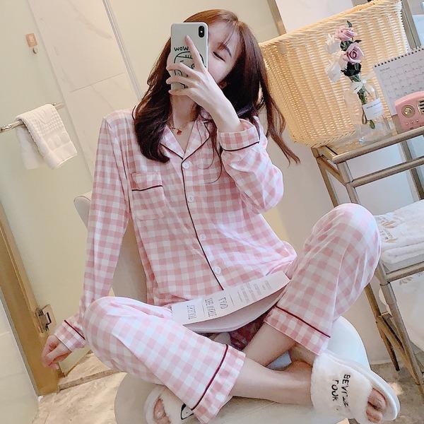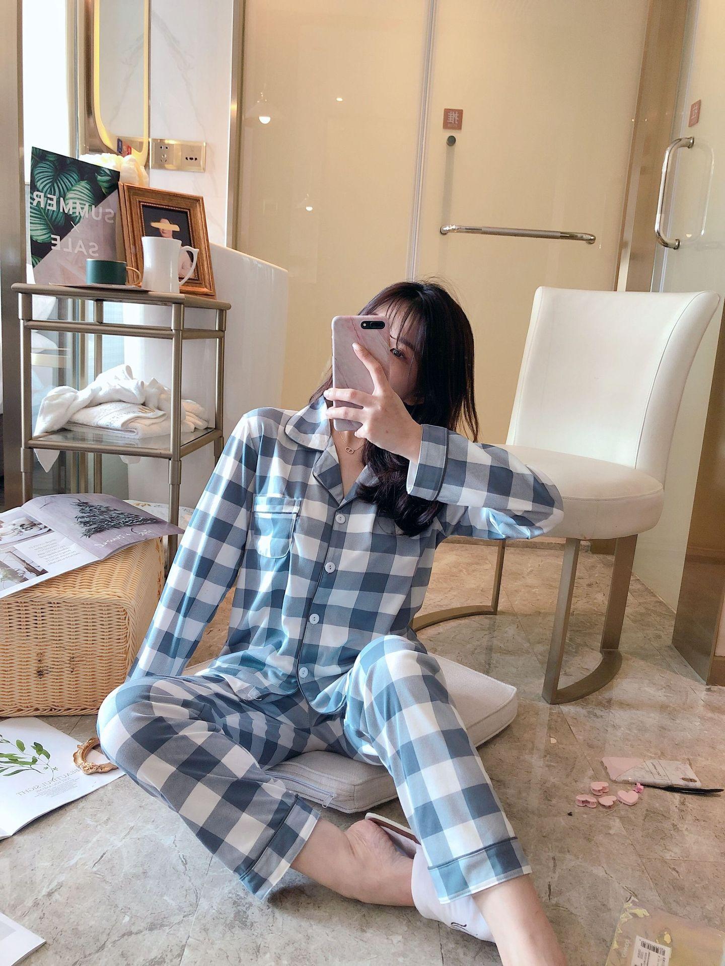 Nuevo Conjunto de Pijama para Mujer de Primavera/Verano con Cuello de Camisa, Ropa de Casa de Manga Larga y Pantalón Largo, Cárdigan, Conjunto de Pijama para Mujer, Sencillo, Casual
