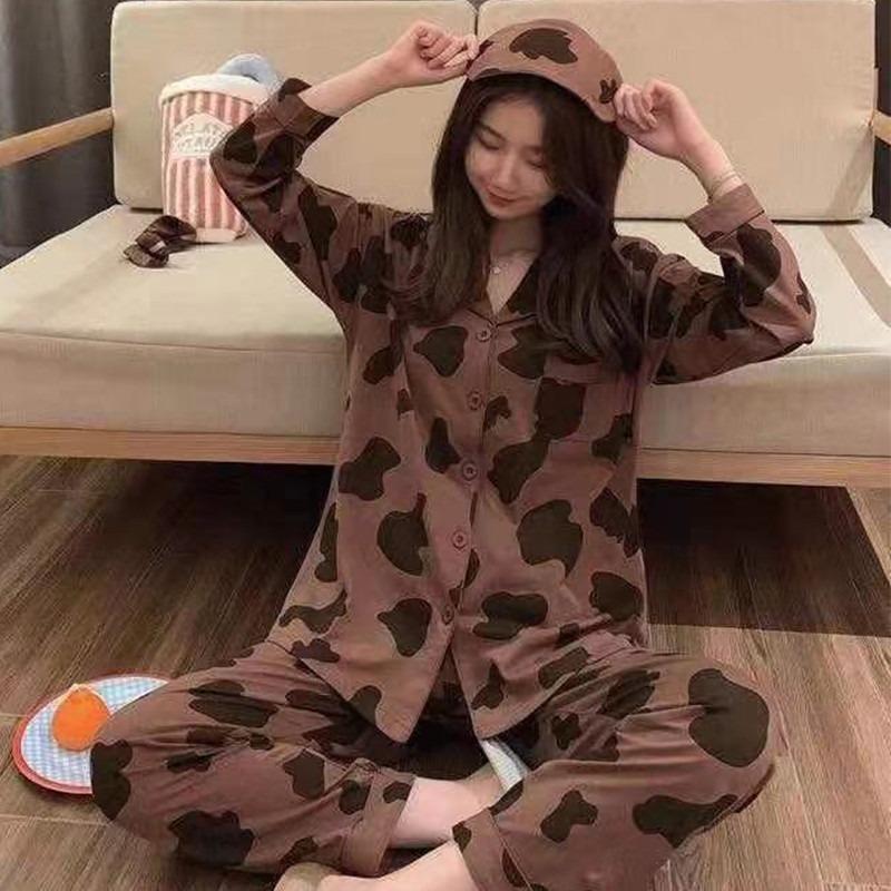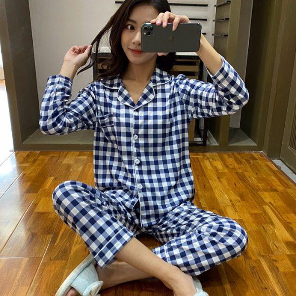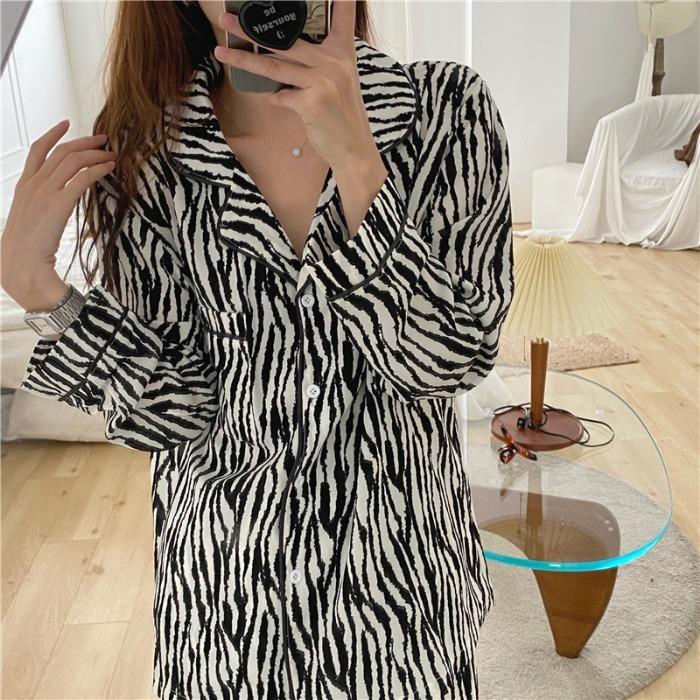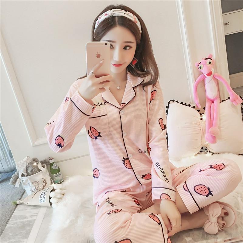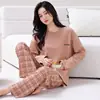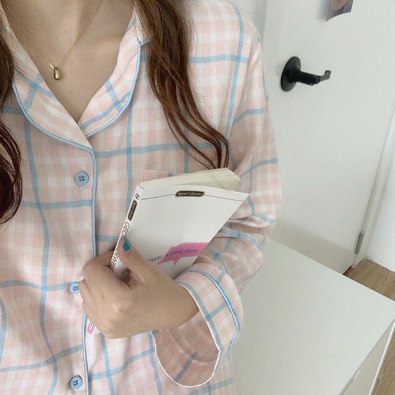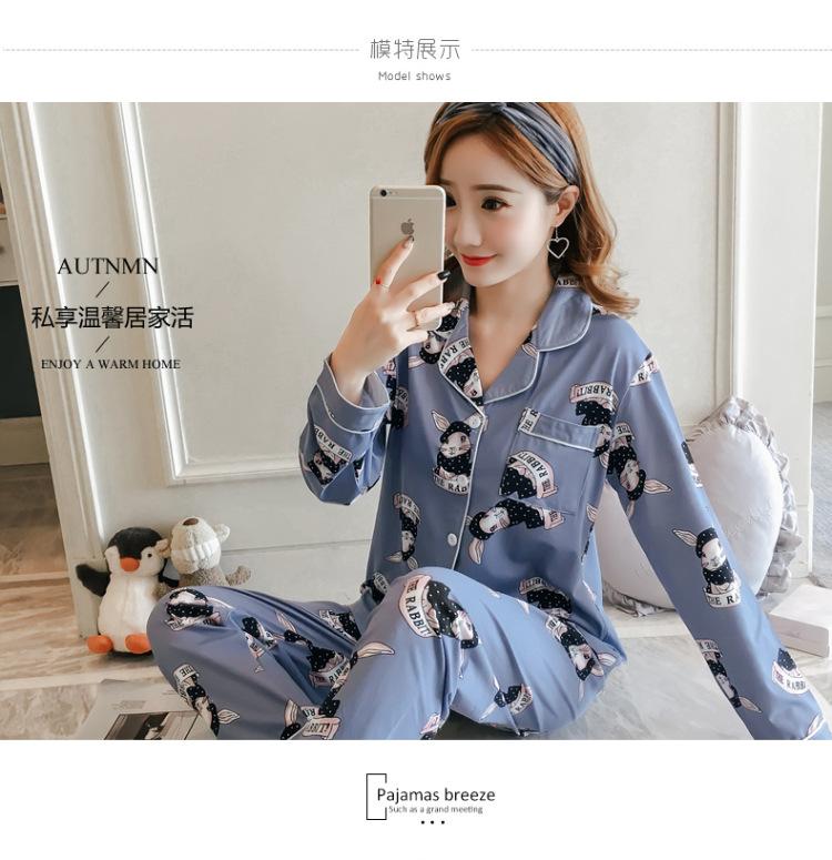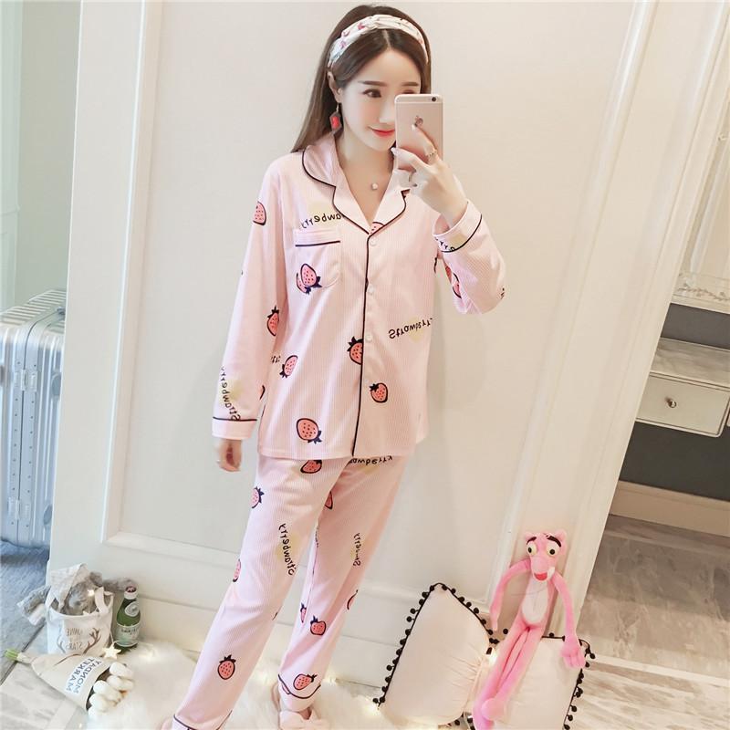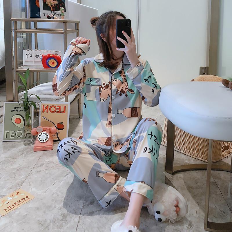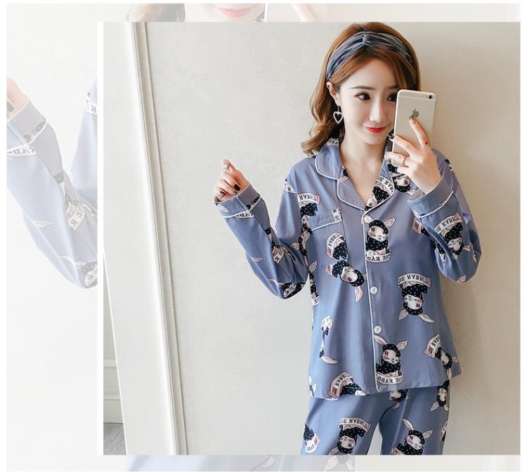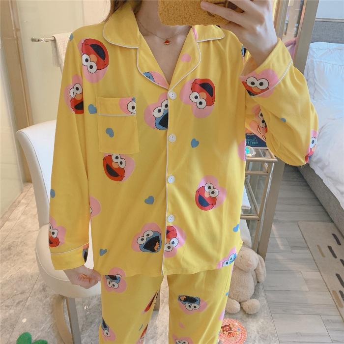 Nuevo Conjunto de Pijama para Mujer de Primavera/Verano con Cuello de Camisa, Ropa de Casa de Manga Larga y Pantalón Largo, Cárdigan, Conjunto de Pijama para Mujer, Sencillo, Casual