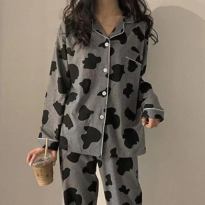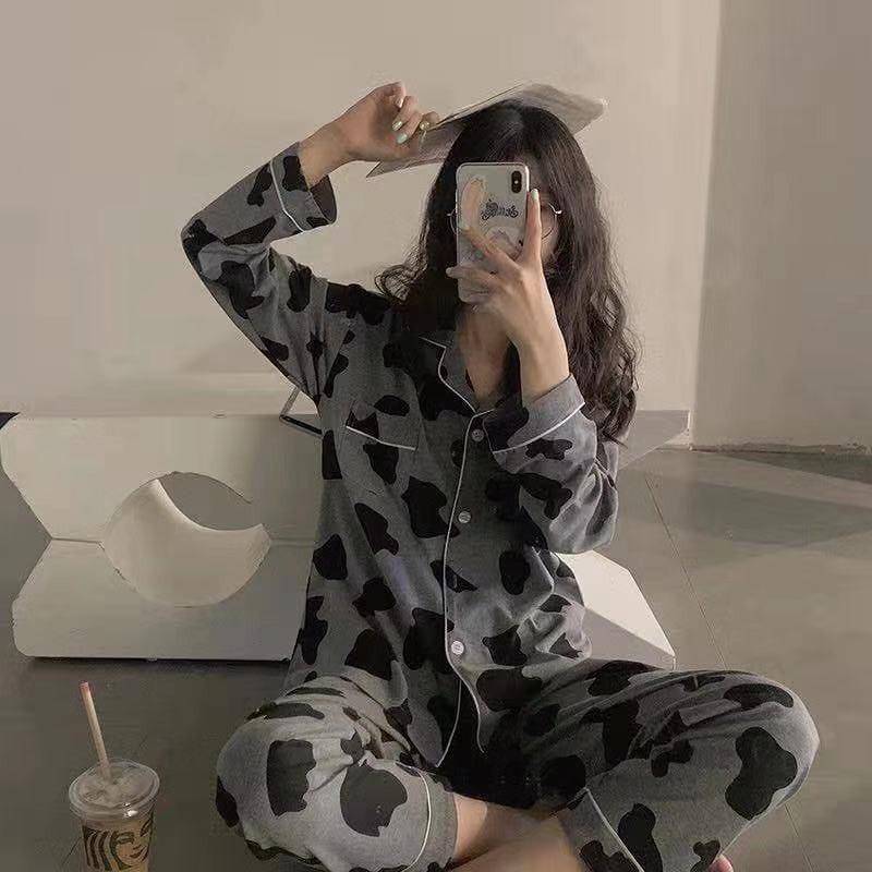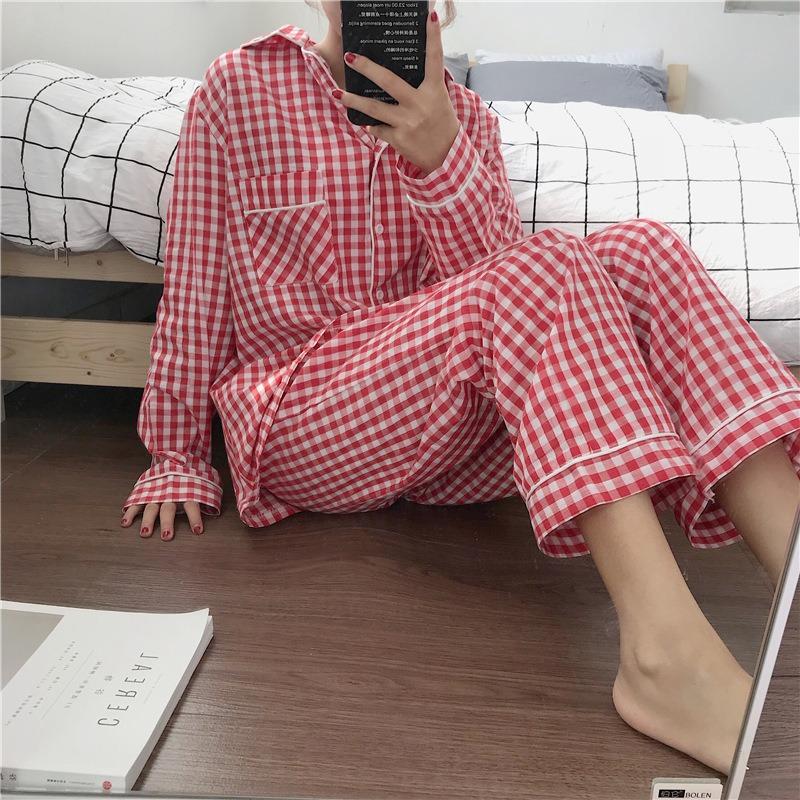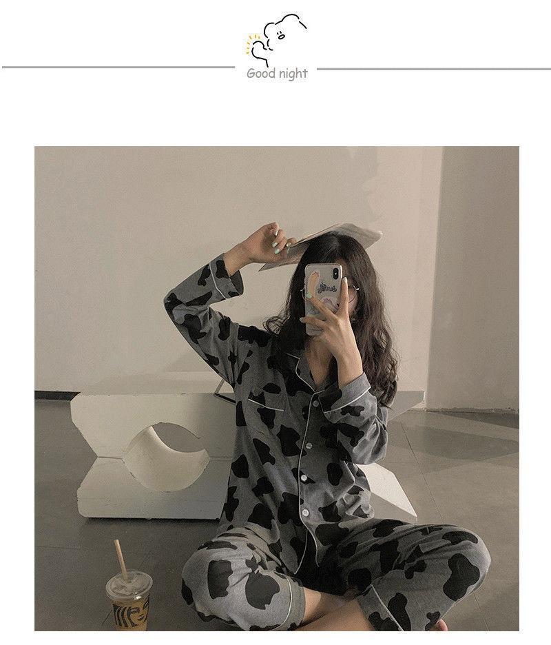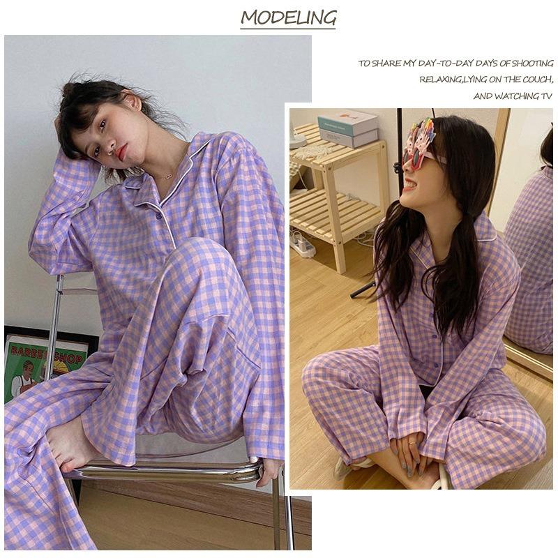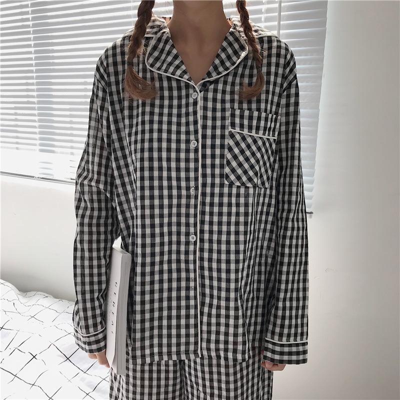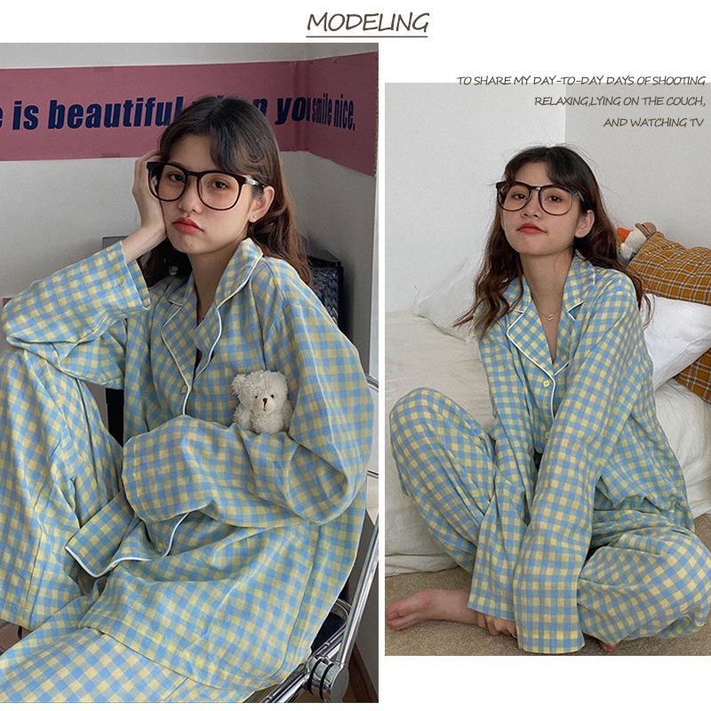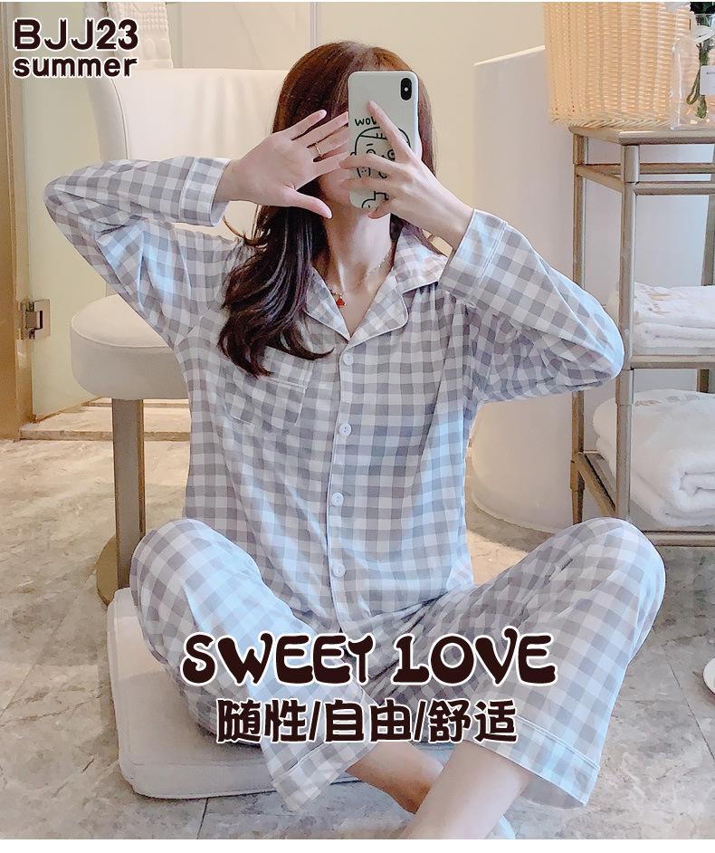 Nuevo Conjunto de Pijama para Mujer de Primavera/Verano con Cuello de Camisa, Ropa de Casa de Manga Larga y Pantalón Largo, Cárdigan, Conjunto de Pijama para Mujer, Sencillo, Casual