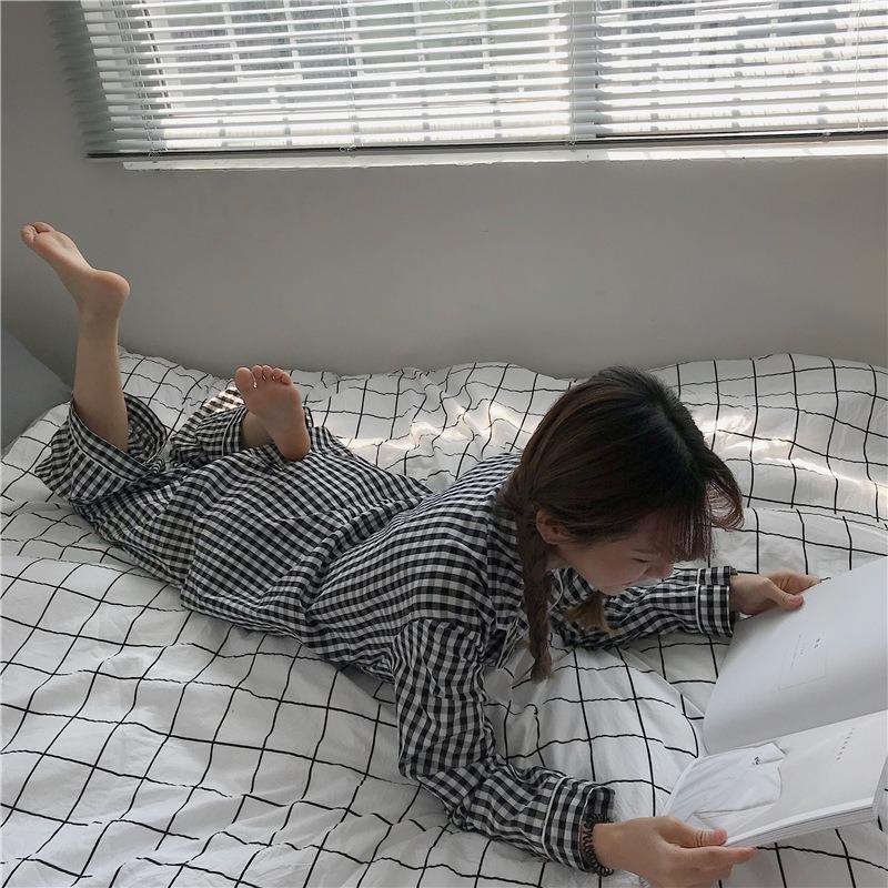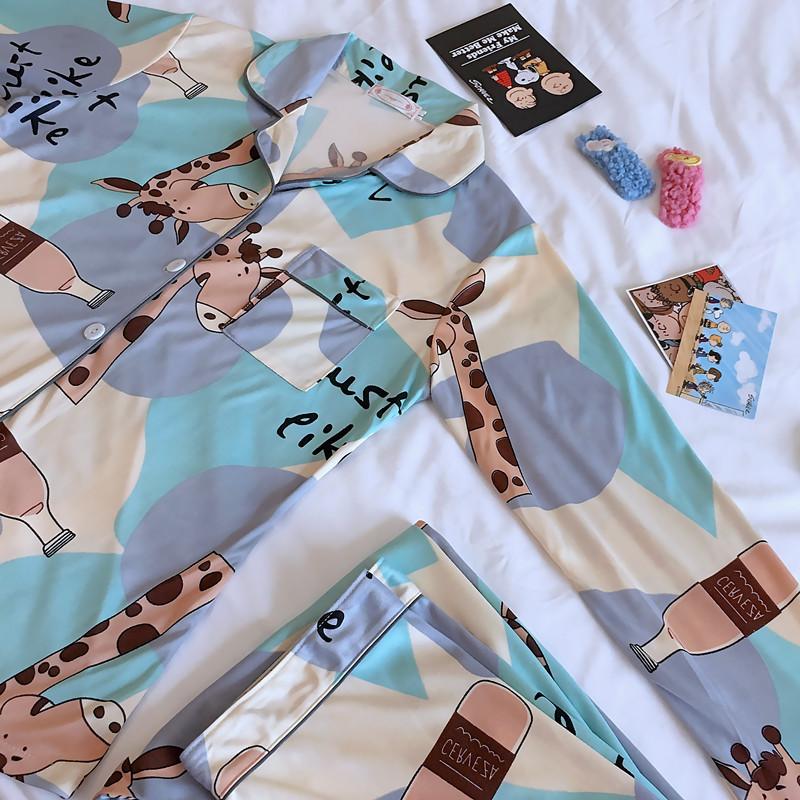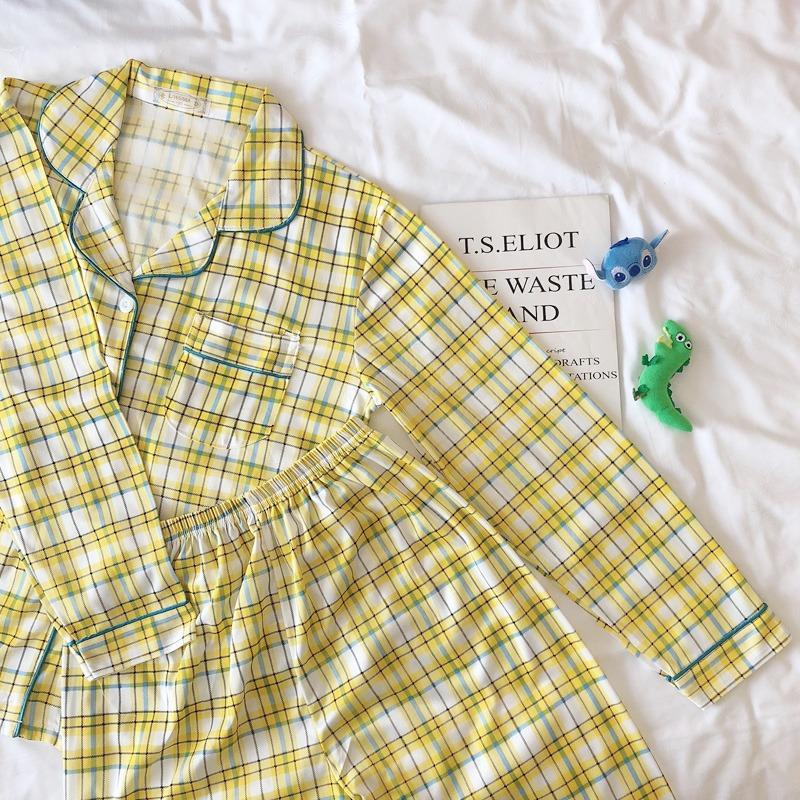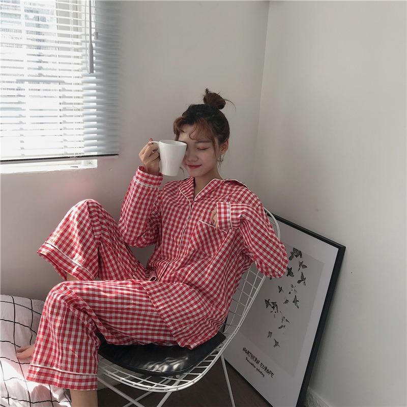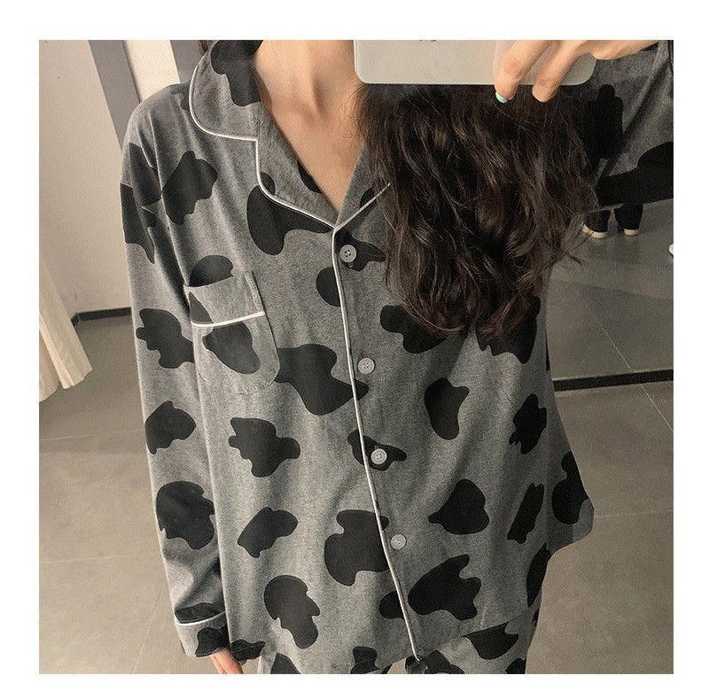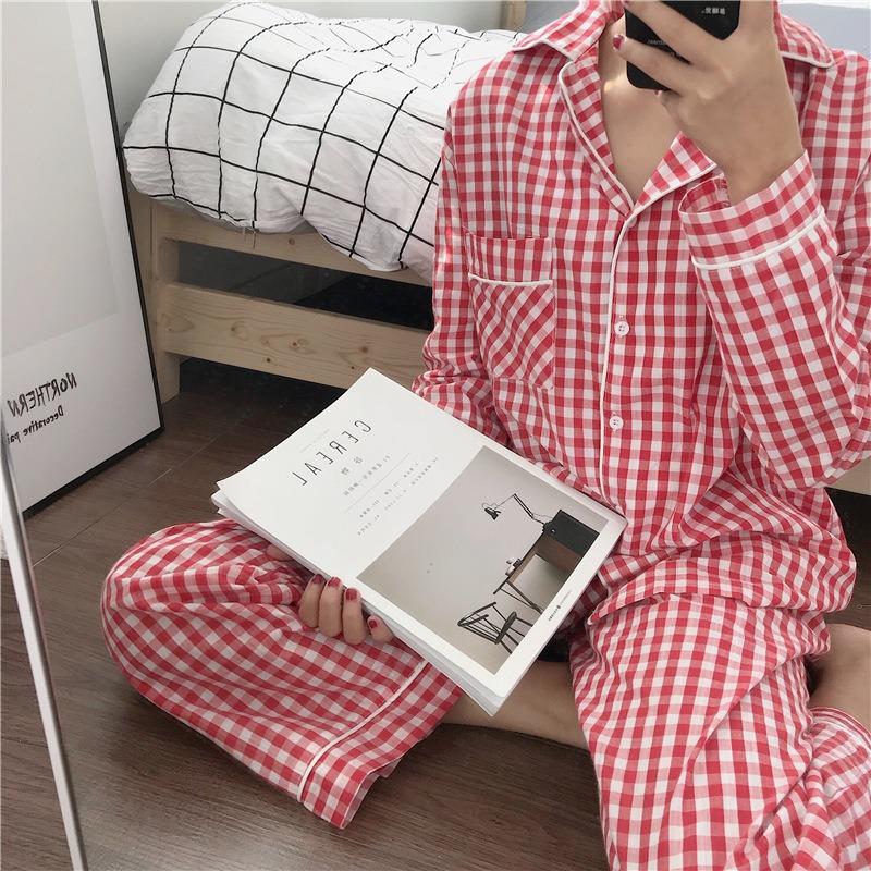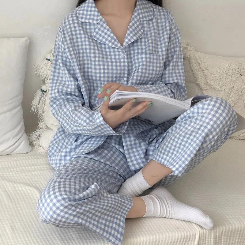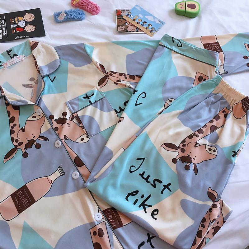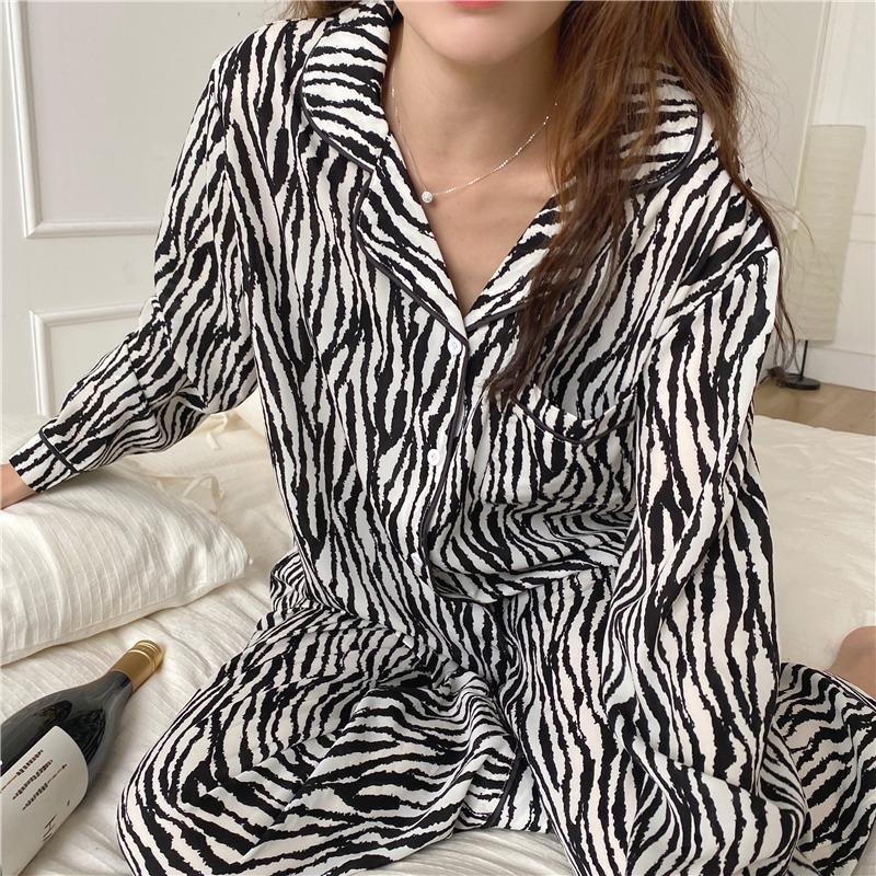 Nuevo Conjunto de Pijama para Mujer de Primavera/Verano con Cuello de Camisa, Ropa de Casa de Manga Larga y Pantalón Largo, Cárdigan, Conjunto de Pijama para Mujer, Sencillo, Casual