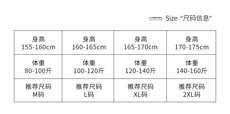 M size (80-100 catties), L size (100-120 catties), XL (120-140 catties), XXL (140-160 catties)
