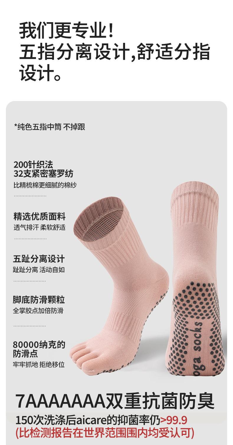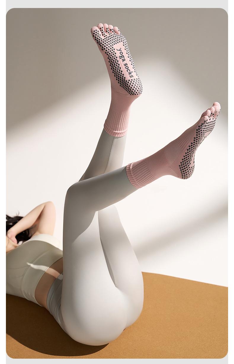 Calcetines de Pilates de Media Caña con Dedos Separados de Una Pieza para Envío Directo, Calcetines de Yoga de Cinco Dedos, Antideslizantes, Específicos para Fitness, Antibacterianos 7A