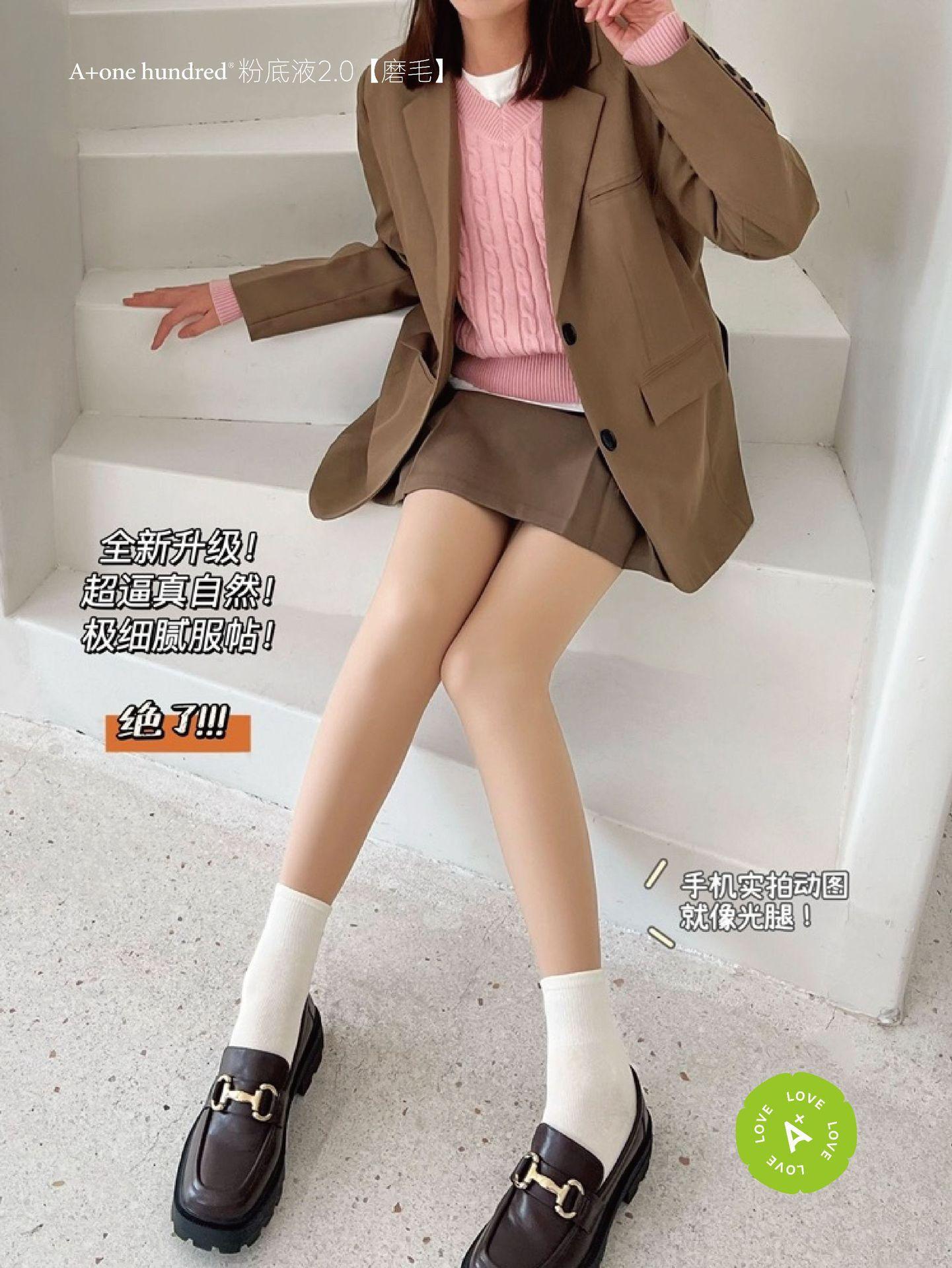 Otoño/Invierno Especial Base Líquida Artefacto Pierna Desnuda Medias Mujer Forrado de Lana Delicado Natural Nude Look Micro-Compresión Control de Abdomen Cintura Alta