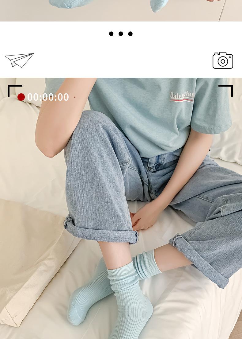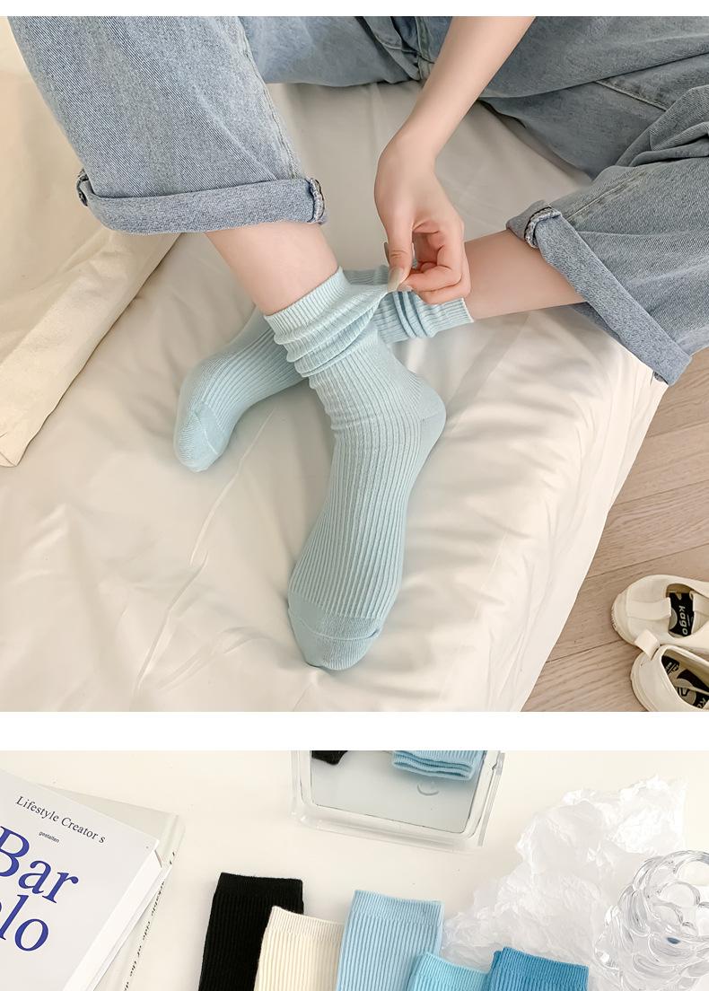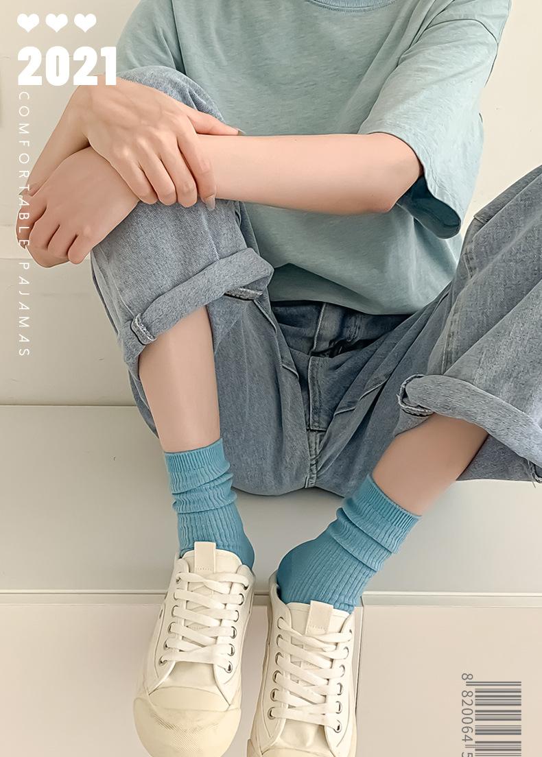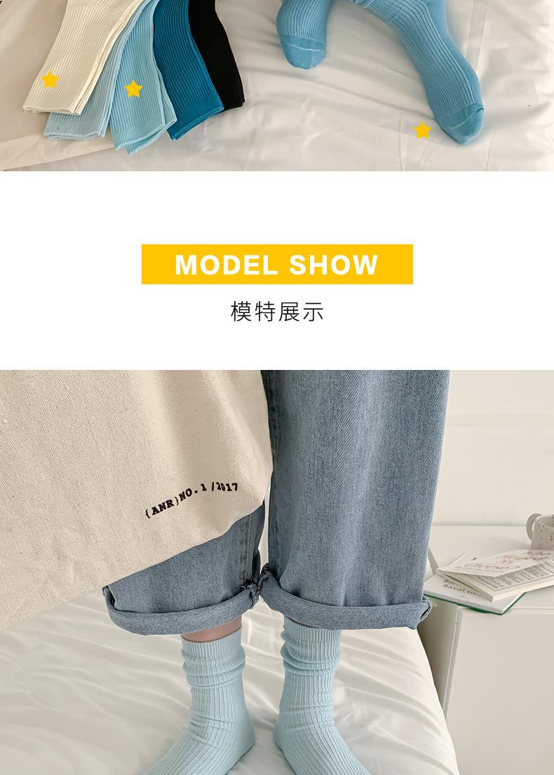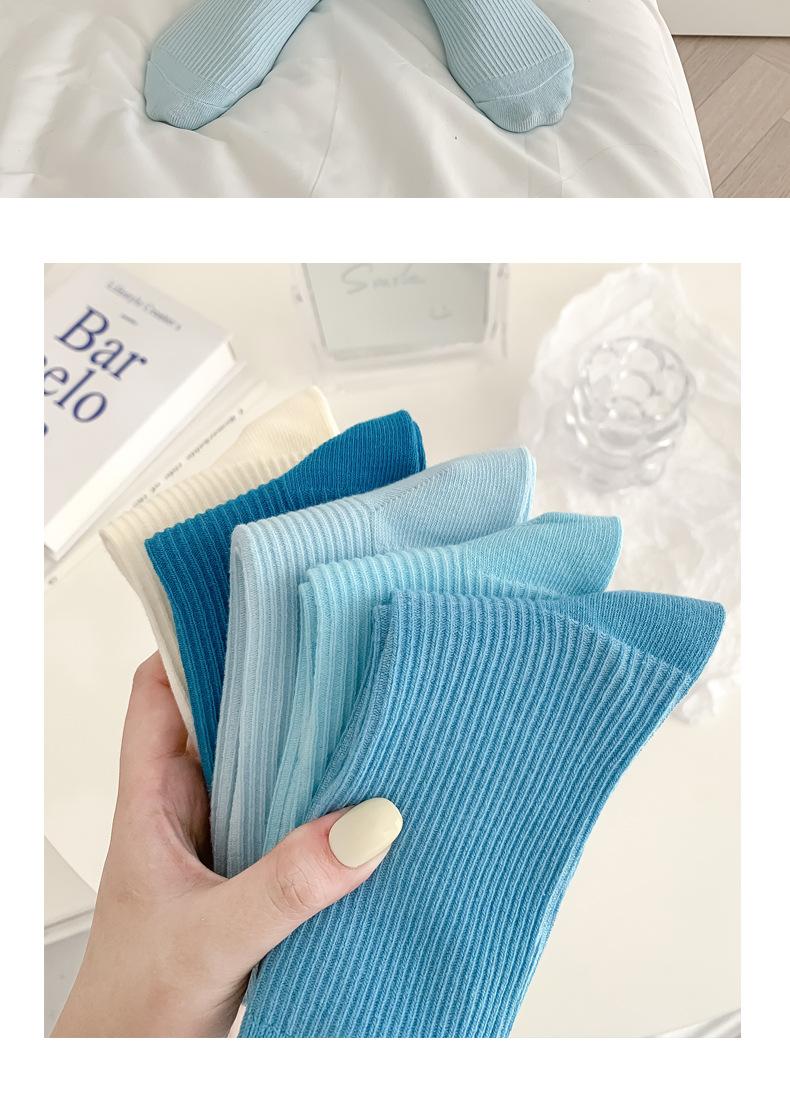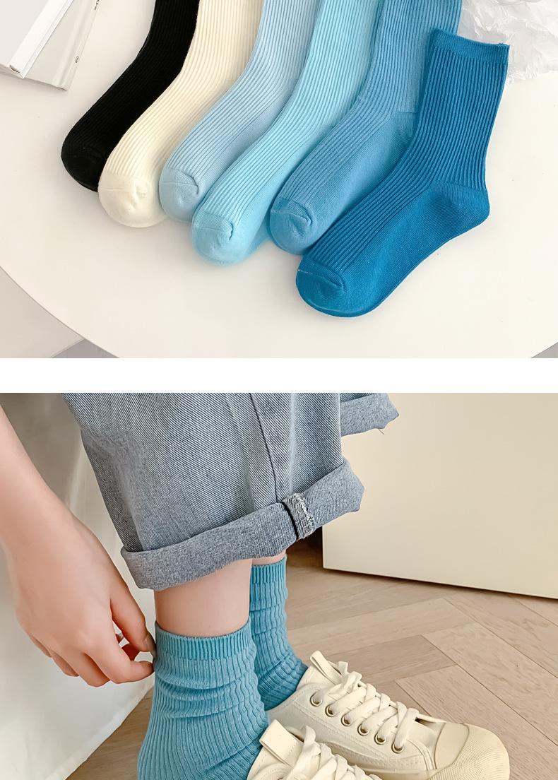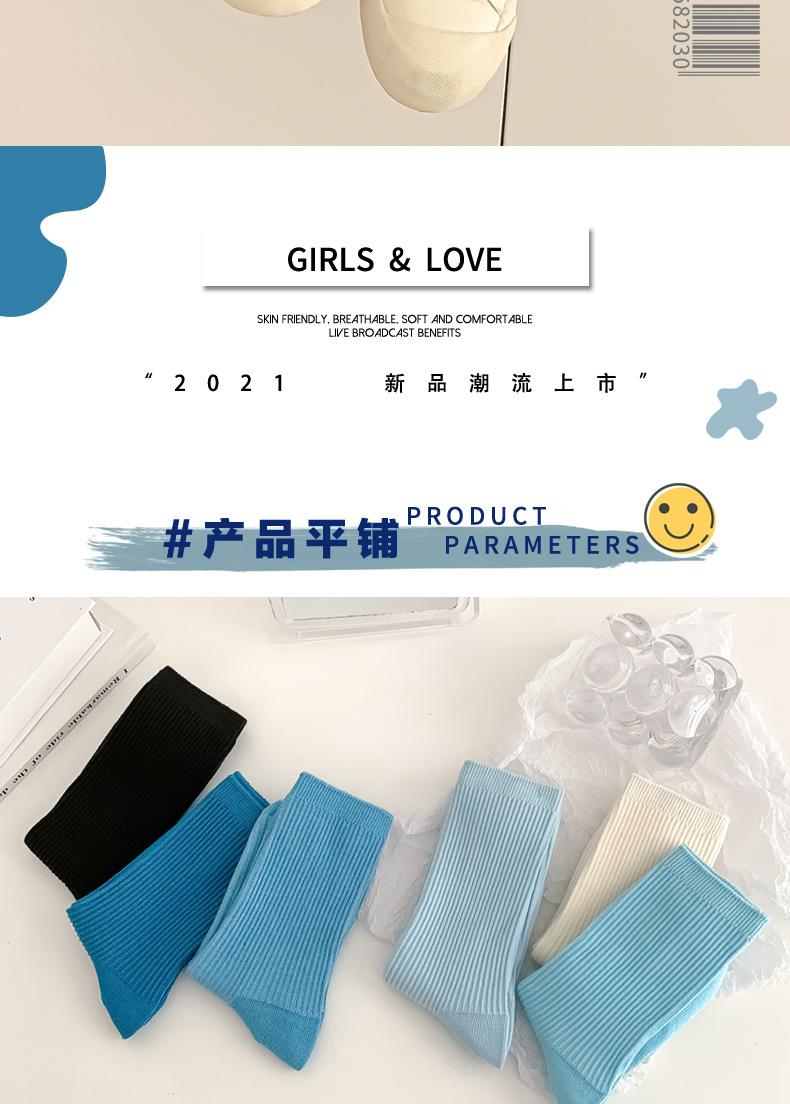 Calcetines de mujer estilo coreano media pantorrilla ins modernos otoño calcetines versátiles de mujer estilo japonés azul Klein simples de tubo largo de felpa