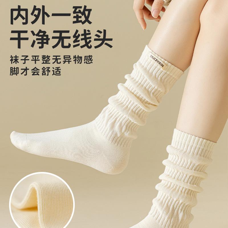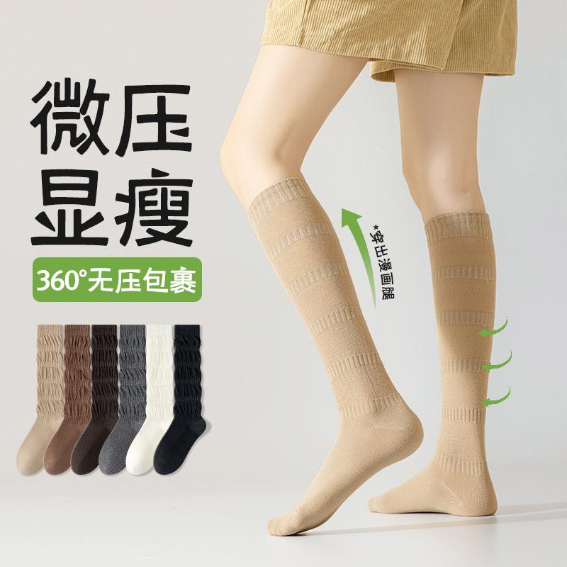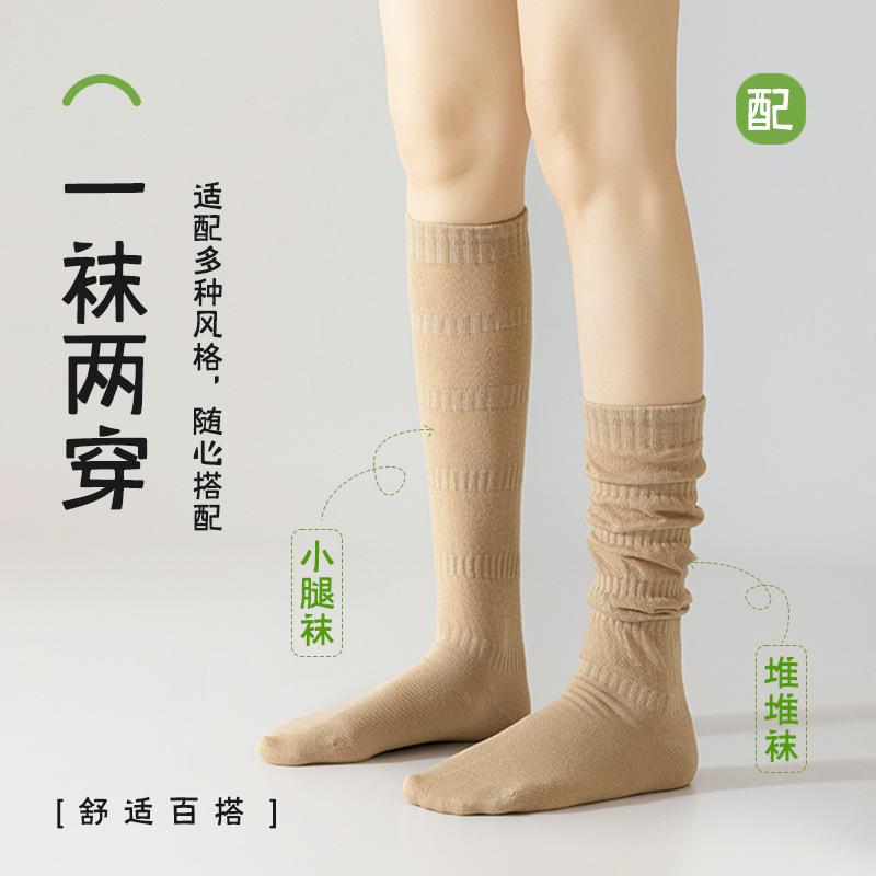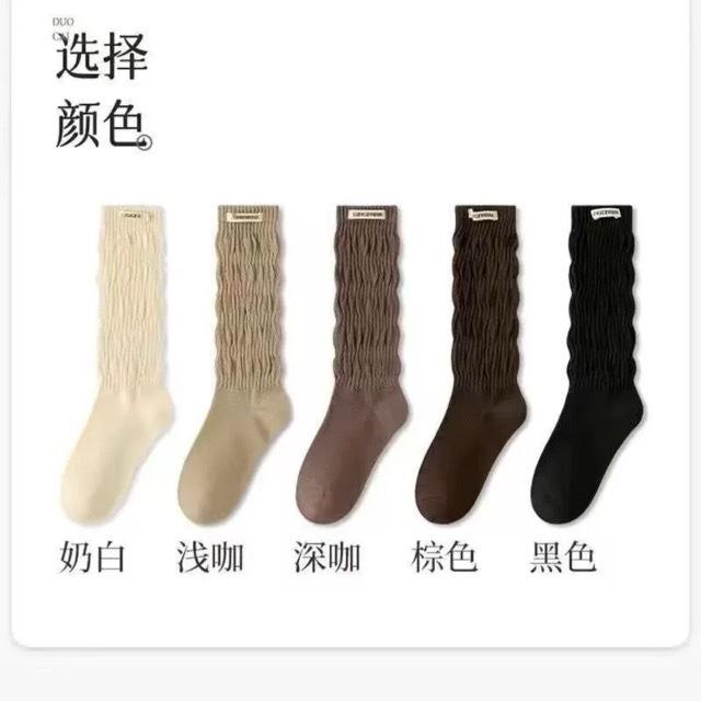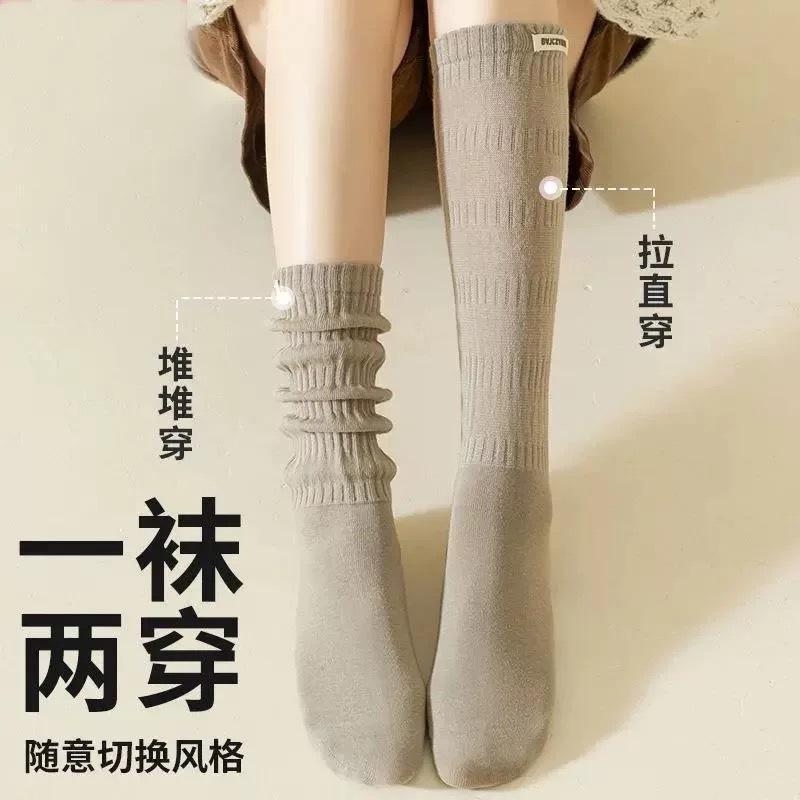 Calcetines versátiles de algodón para otoño e invierno, calcetines fruncidos de color sólido, calcetines dulces hasta la pantorrilla, calcetines transpirables antiolor, ropa exterior para mujer, calcetines marrones hasta la rodilla