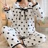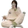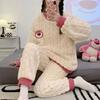 Pijama de vellón coral de invierno de fábrica de origen, superventas, para mujer, de franela gruesa, bordado, de dibujos animados, lindo, conjunto de ropa para el hogar