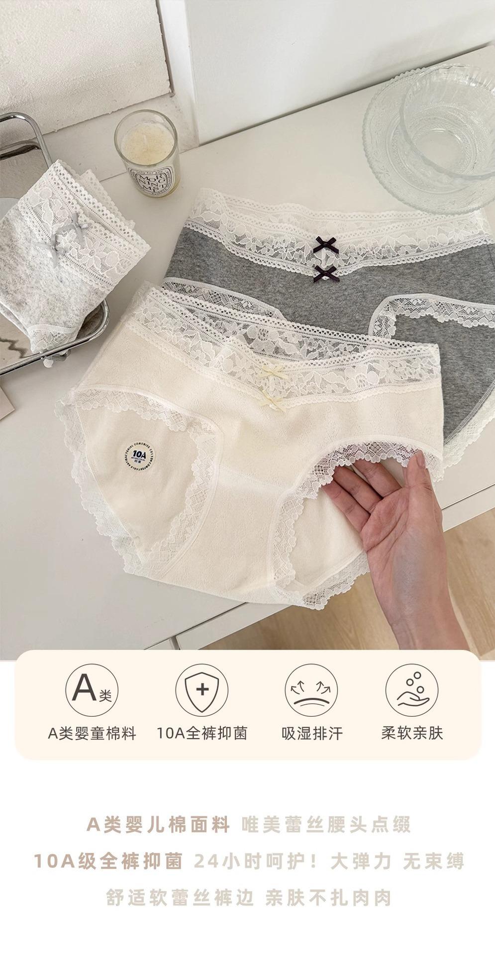 Pantalones cortos de cintura alta con entrepierna extendida, antibacterianos, 10A, ropa interior sexy de encaje, triángulo de algodón para mujer, novedad de 2025