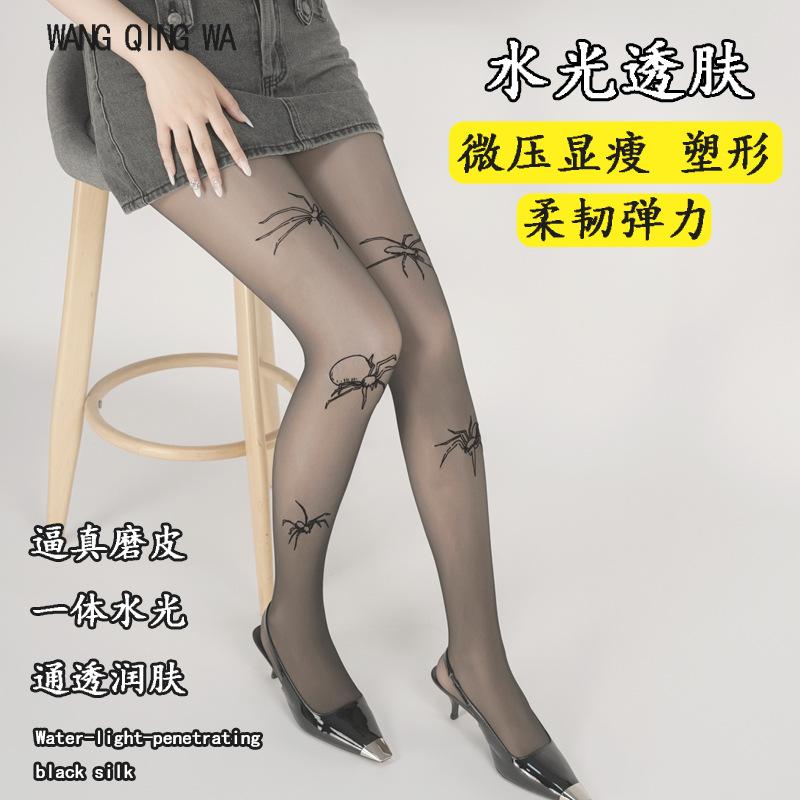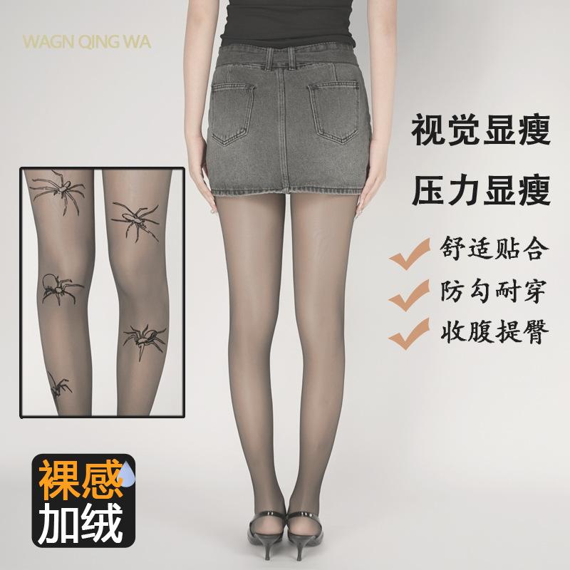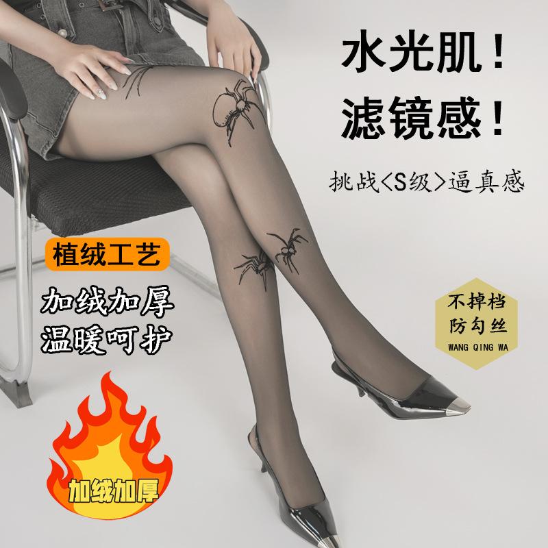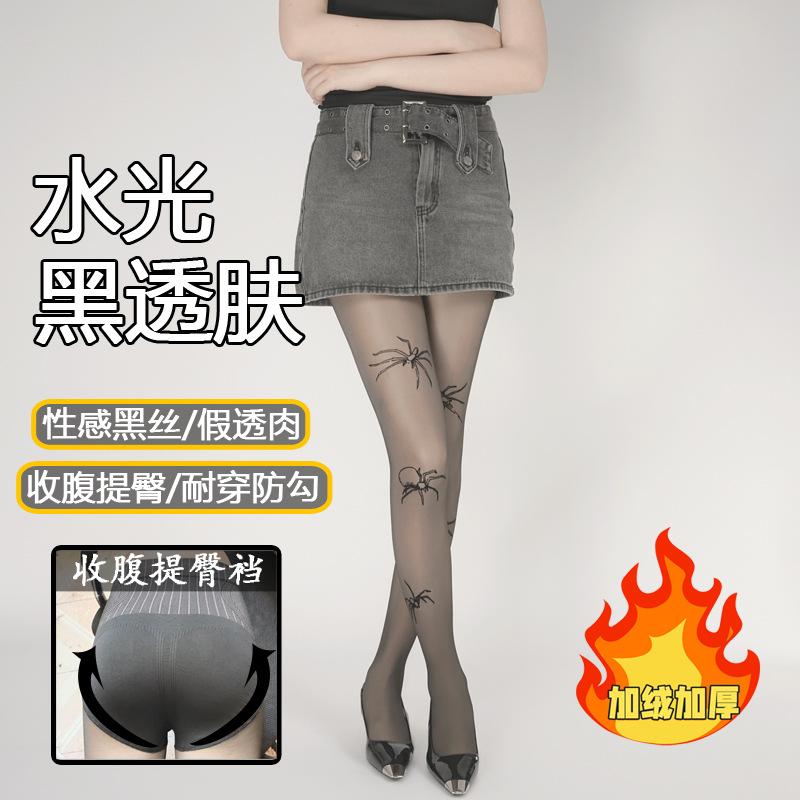 Medias Ligeras de Agua Seda Negra Transparente Otoño e Invierno Pantalones de Una Pieza Artefacto de Pierna Descubierta Medias de Lunares Flocados Calcetines Base Forrados de Felpa