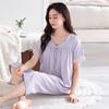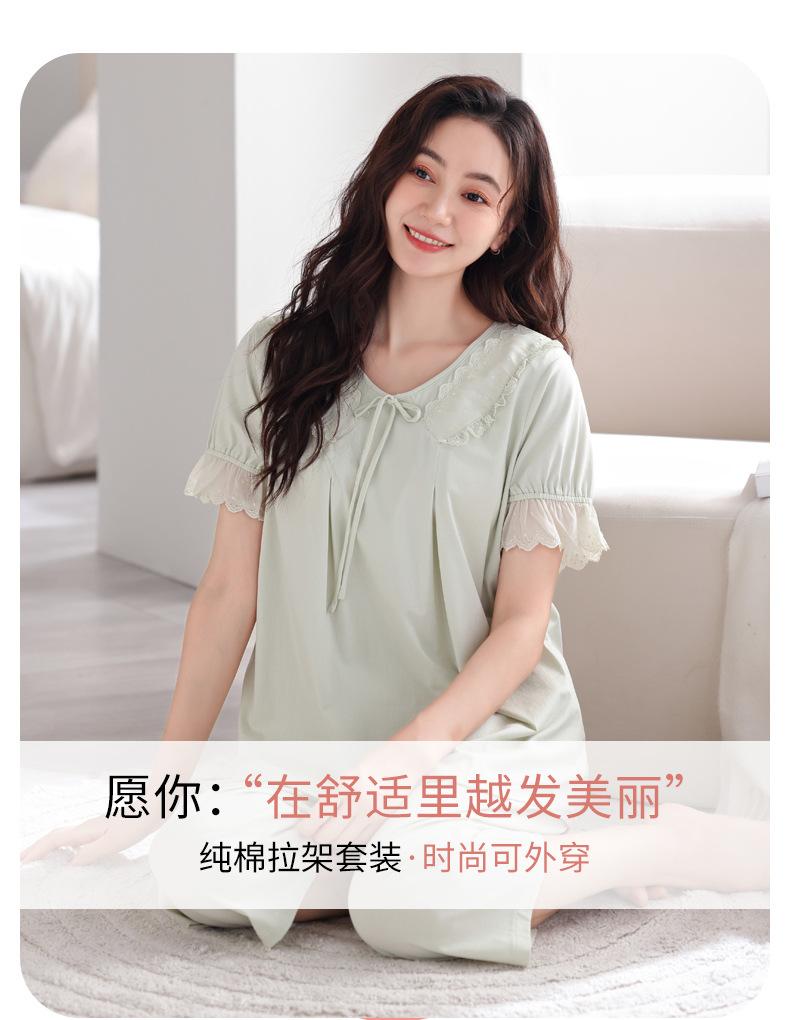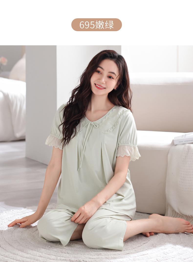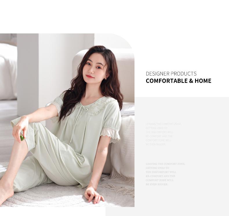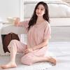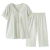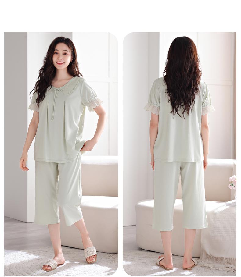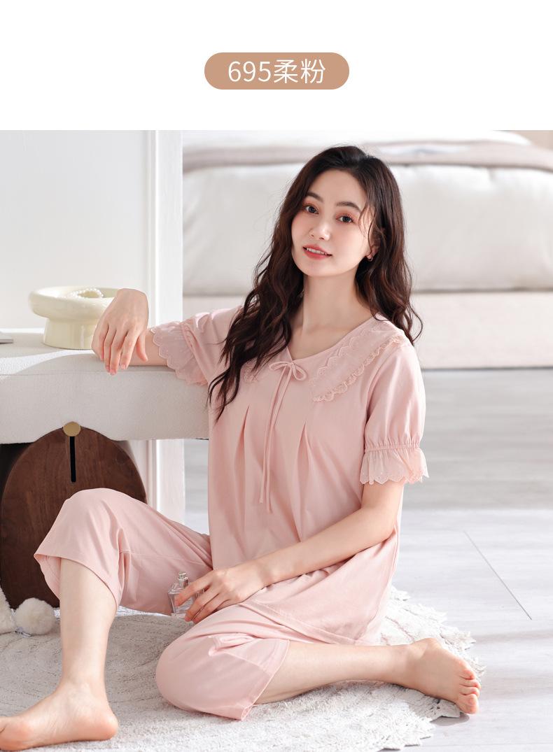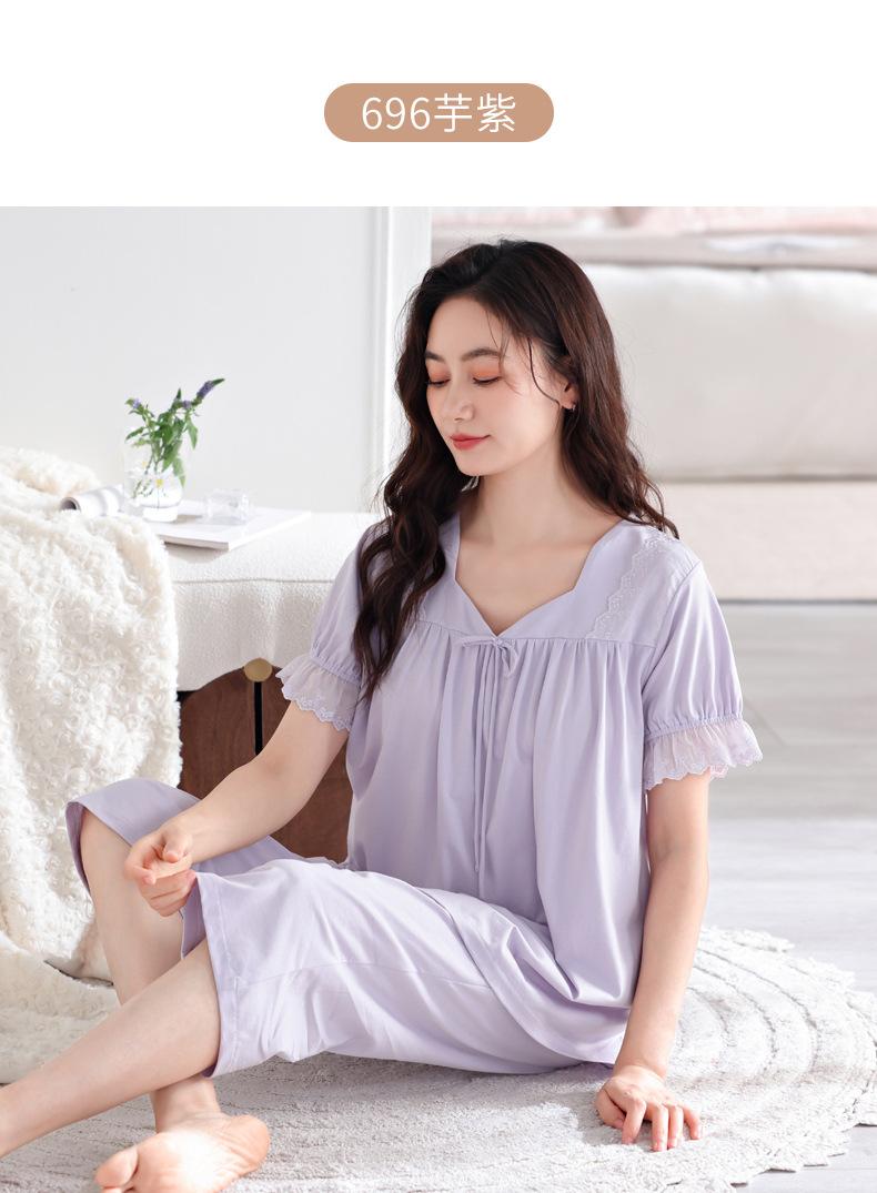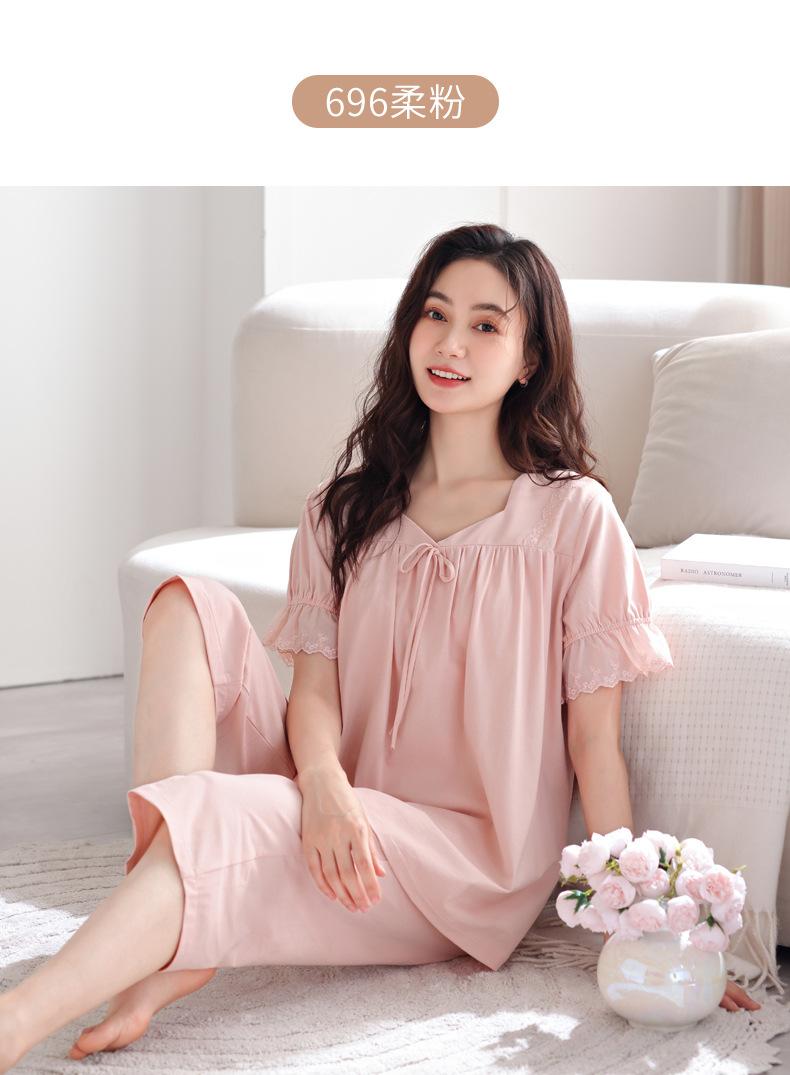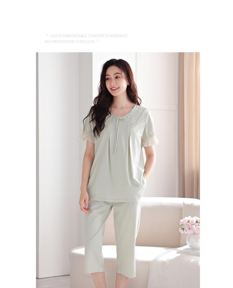 Compra Pijama de verano para mujer de algodón de manga corta y pantalones capri, ropa para el hogar 2024 Nuevo traje delgado de dos piezas con almohadilla en el pecho al por mayor en Joom.pro