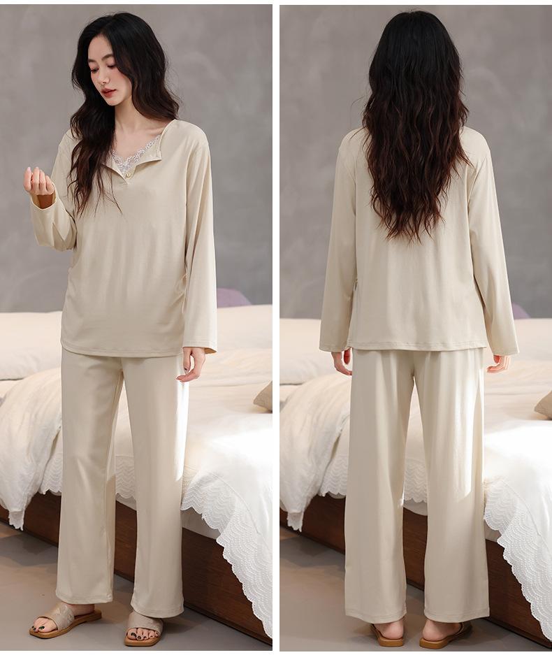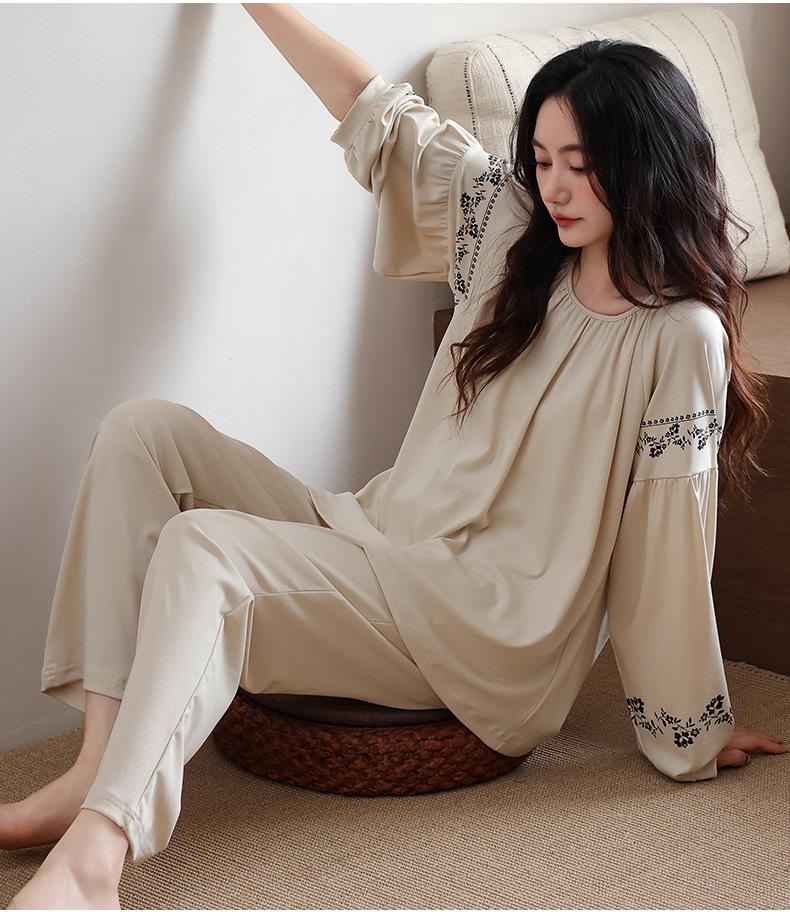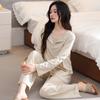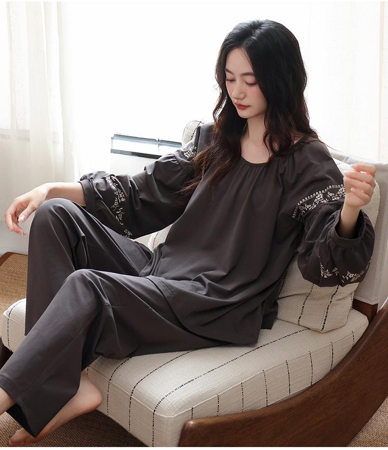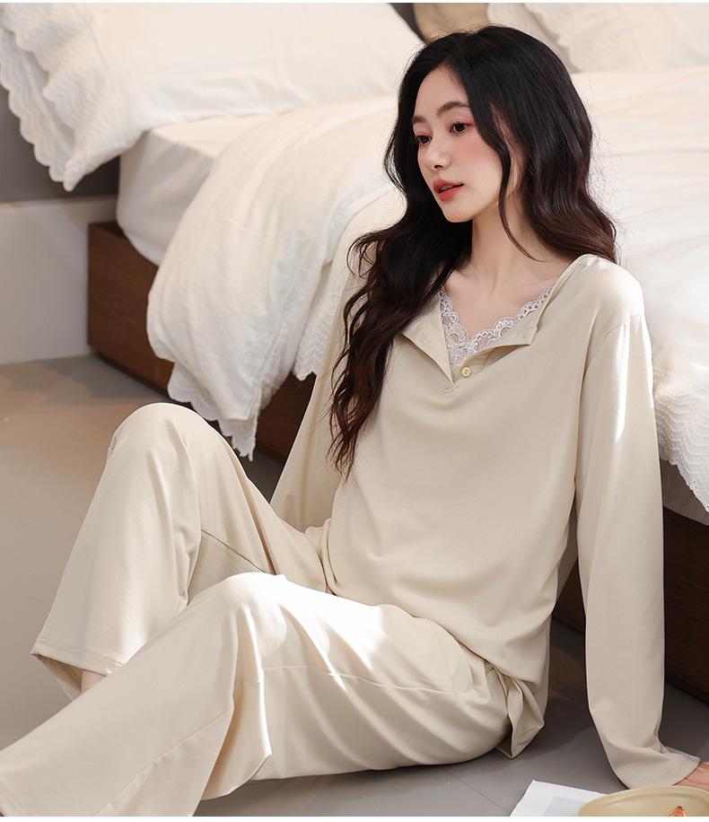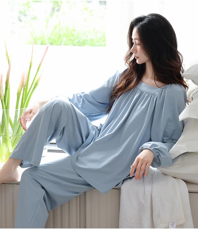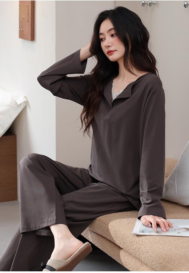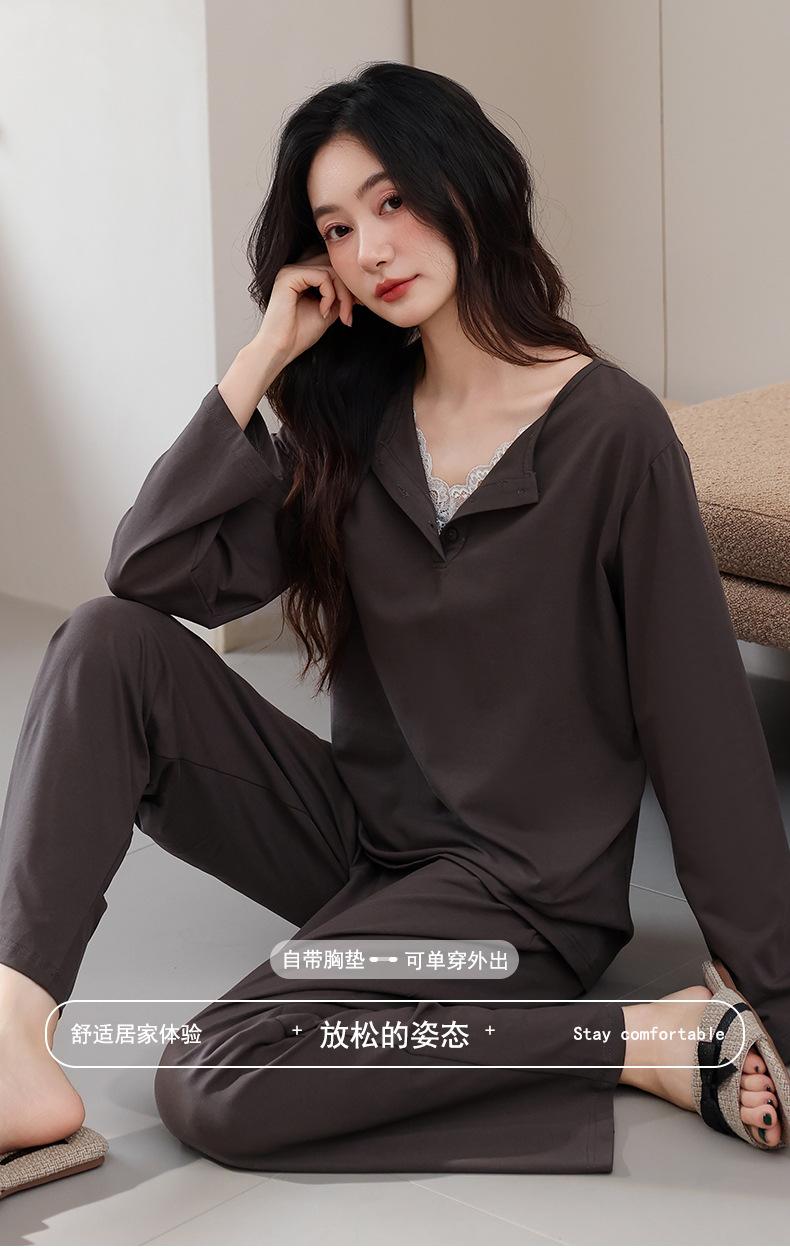 Pijamas de Mujer 2025 Nuevo Estilo Primavera Algodón Puro Manga Larga Damas con Almohadillas en el Pecho Ropa para el Hogar Conjunto Todo Algodón Estilo Primavera/Otoño