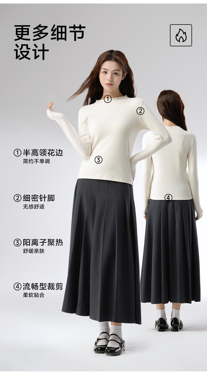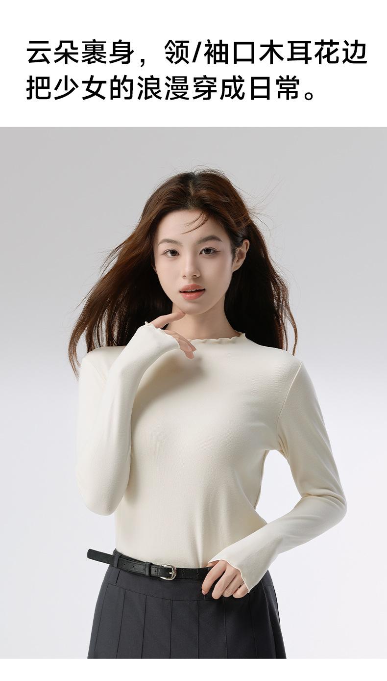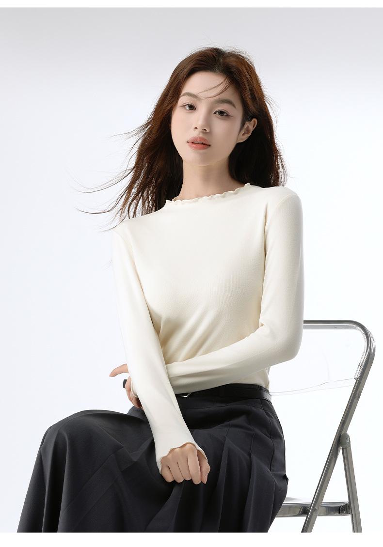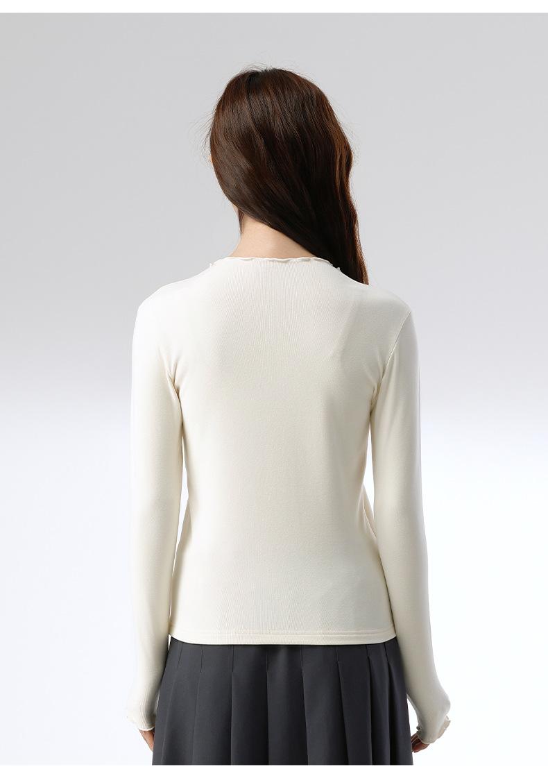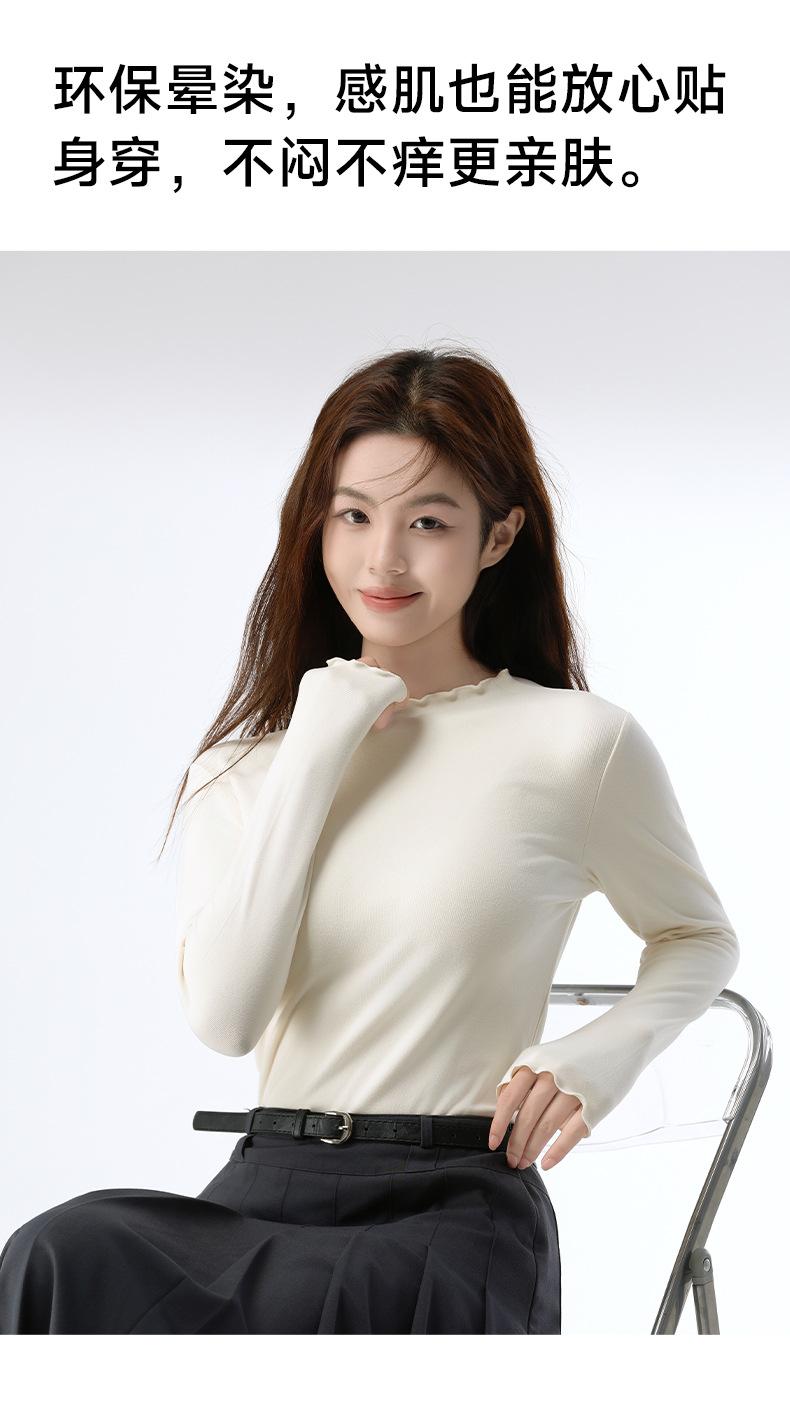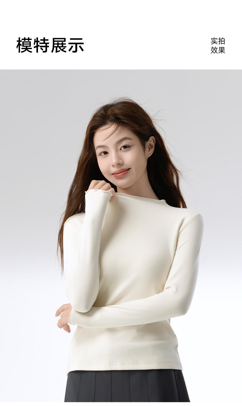 Camiseta básica de otoño e invierno para mujer, corte ajustado, adelgazante, versátil, camiseta de nuevo estilo caliente 2025, prenda exterior, cuello semi-alto, manga larga