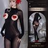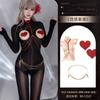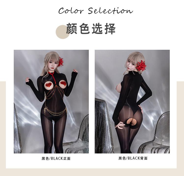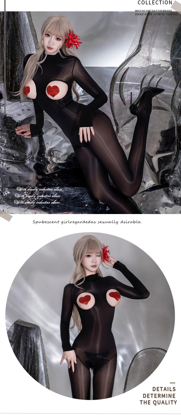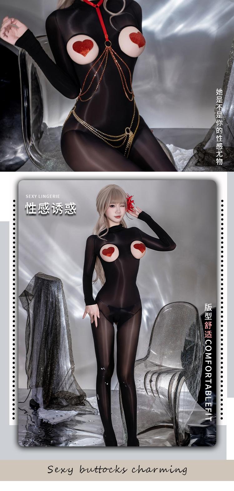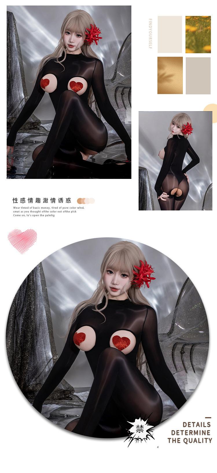 Y045 Set Black [Shiny Bodysuit], Y045 Set+【N74 Rhinestone Panties】, Y045 Set+【8123 Red Heart Nipple Covers】, Y...