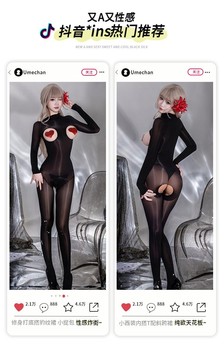 Rose Cloud Lencería Medias Ultradelgadas Aceitosas Transparentes Body de Cuerpo Completo Sexy Busto Abierto Sin Costuras Medias Negras Mujer Entrepierna Abierta Aceite de Caballo