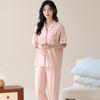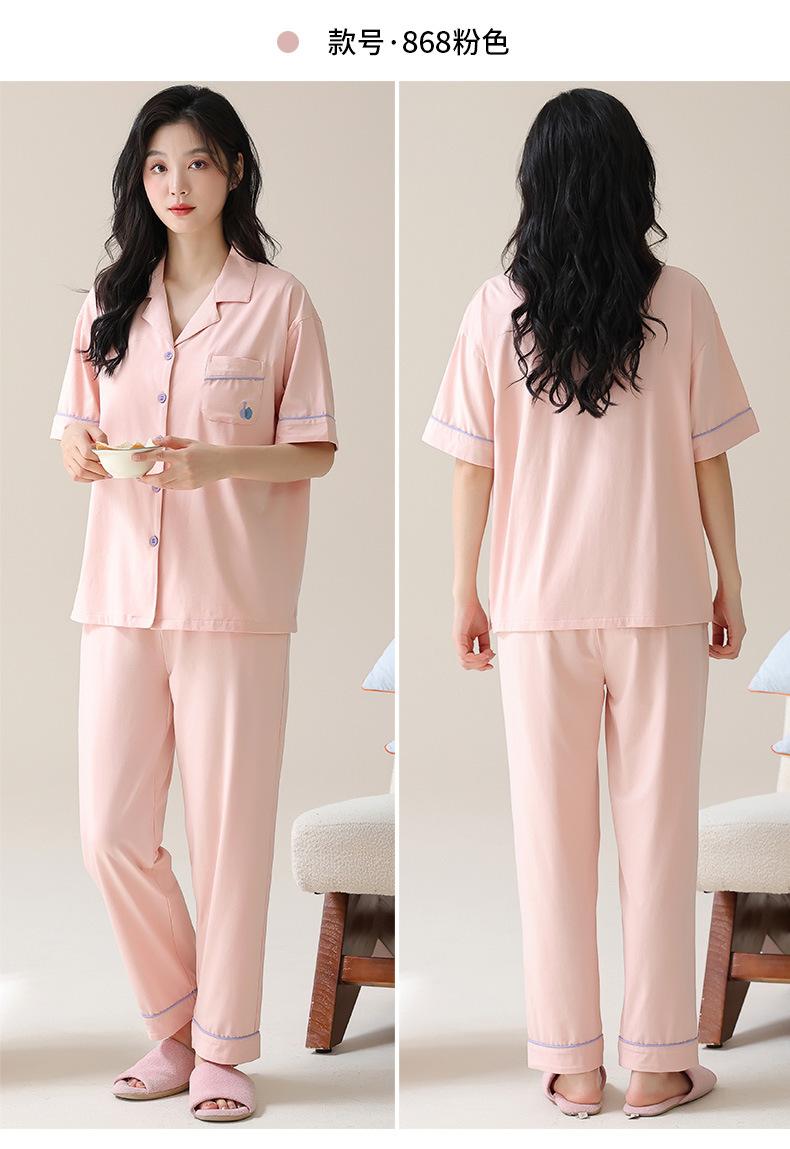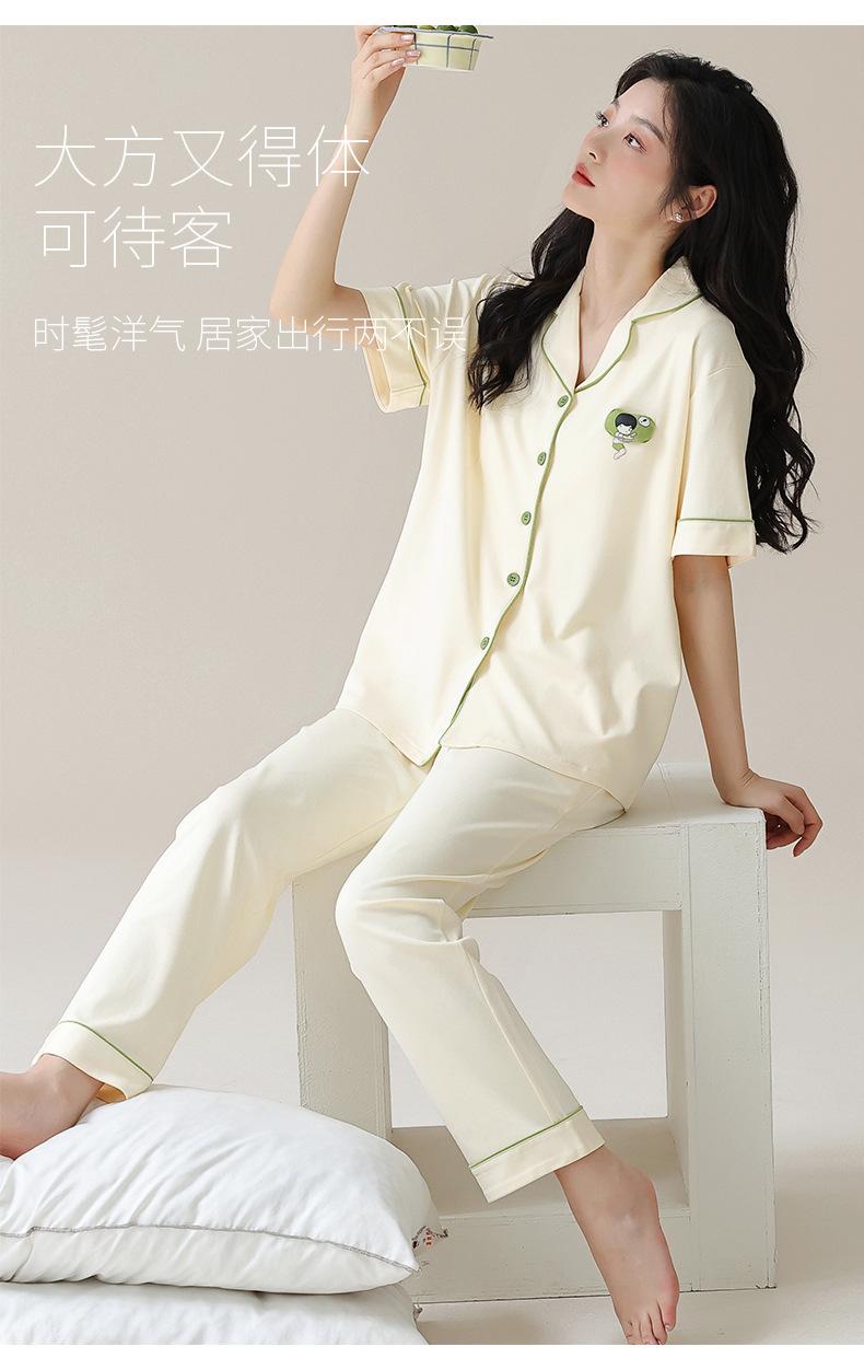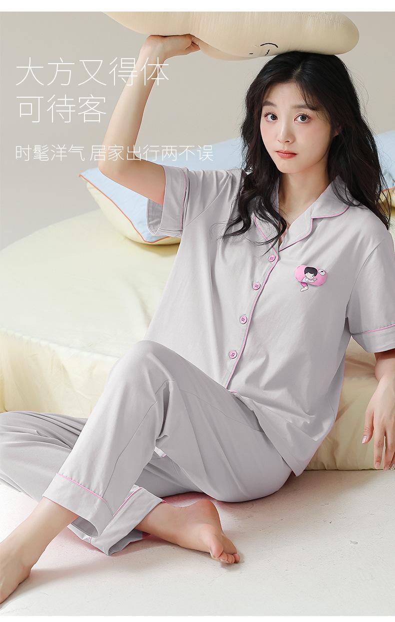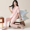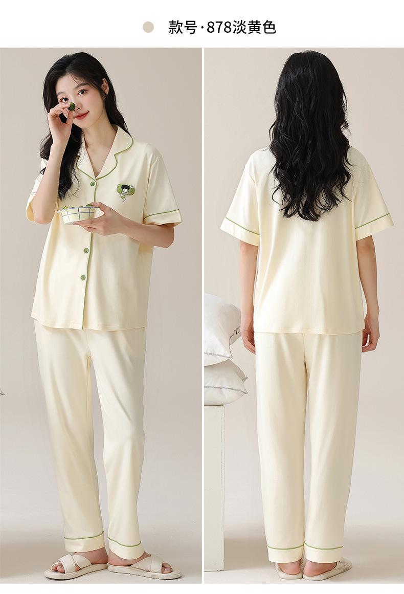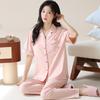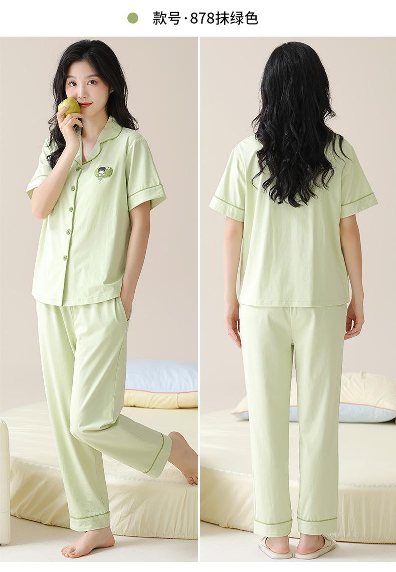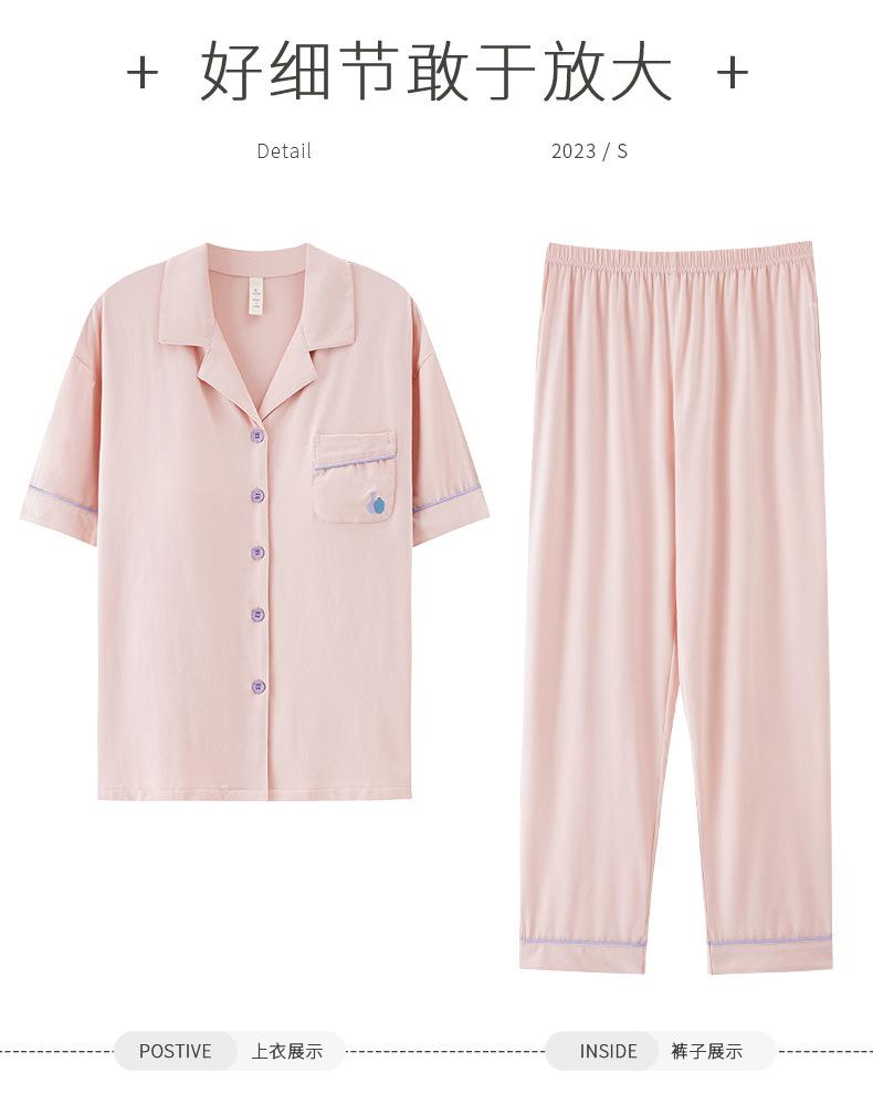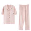 Pijama de Color Sólido para Mujer Verano Algodón Puro Manga Corta Pantalones Ropa para el Hogar Verano Fino Dulce Cárdigan Talla Grande Traje de Dos Piezas