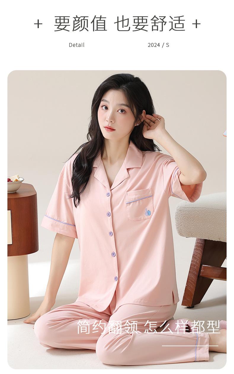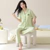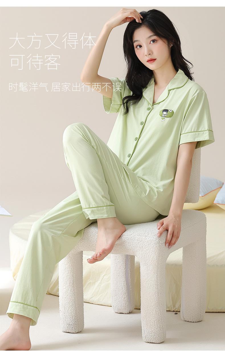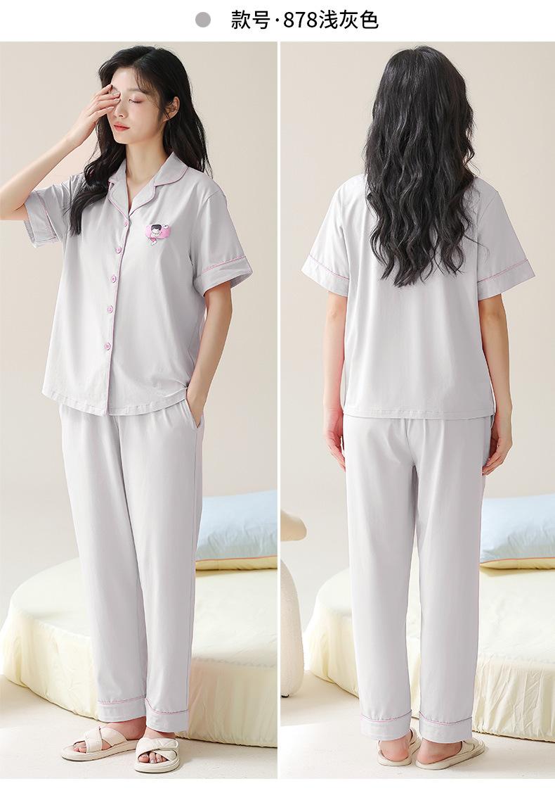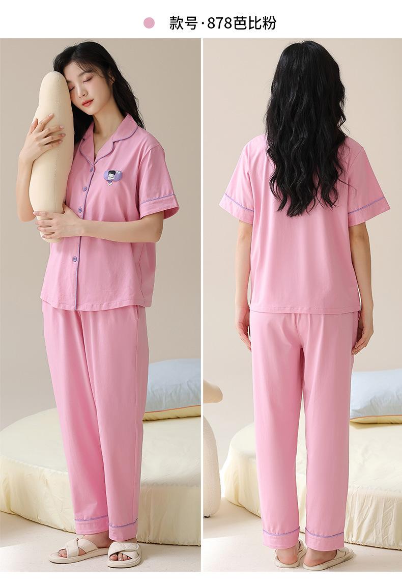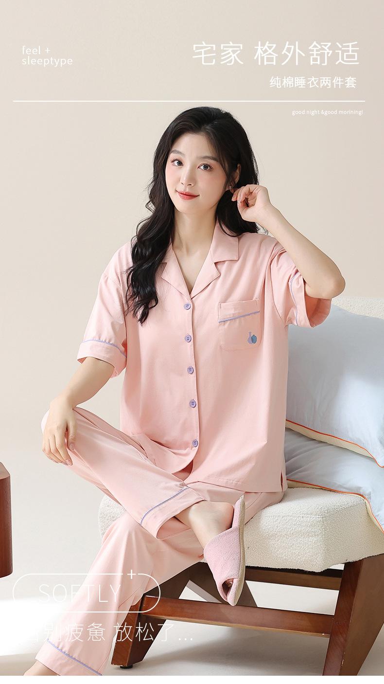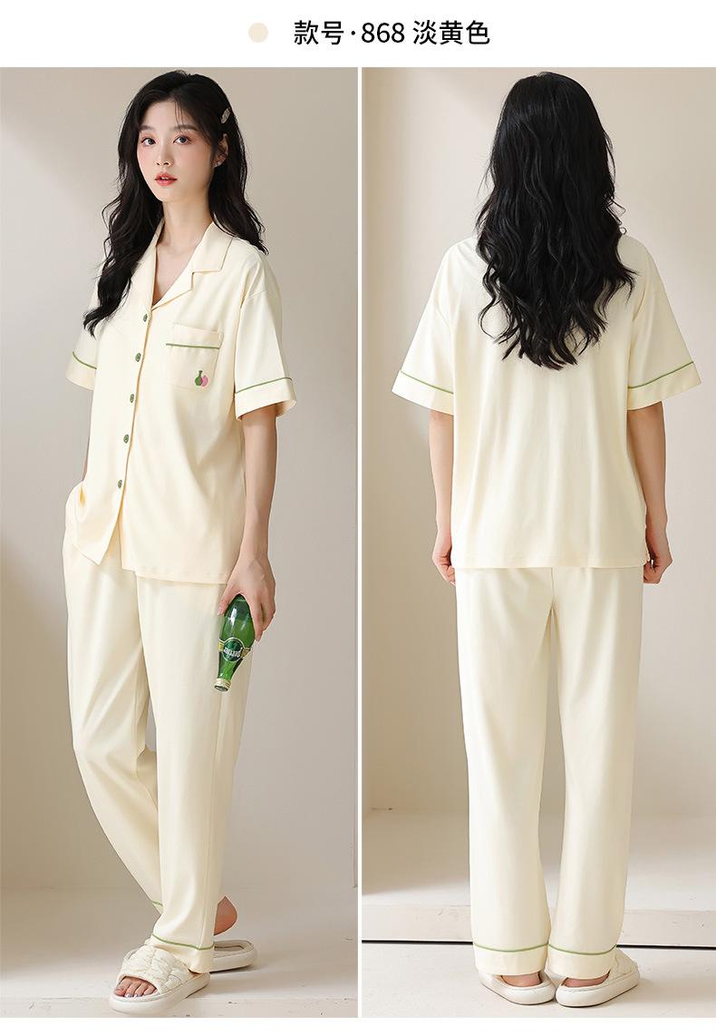 Pijama de Color Sólido para Mujer Verano Algodón Puro Manga Corta Pantalones Ropa para el Hogar Verano Fino Dulce Cárdigan Talla Grande Traje de Dos Piezas