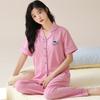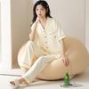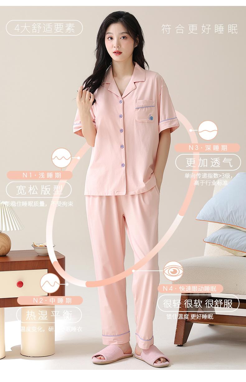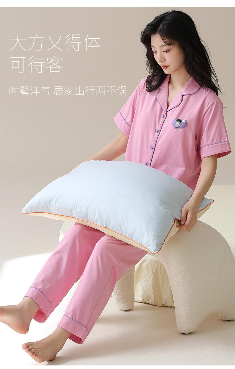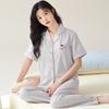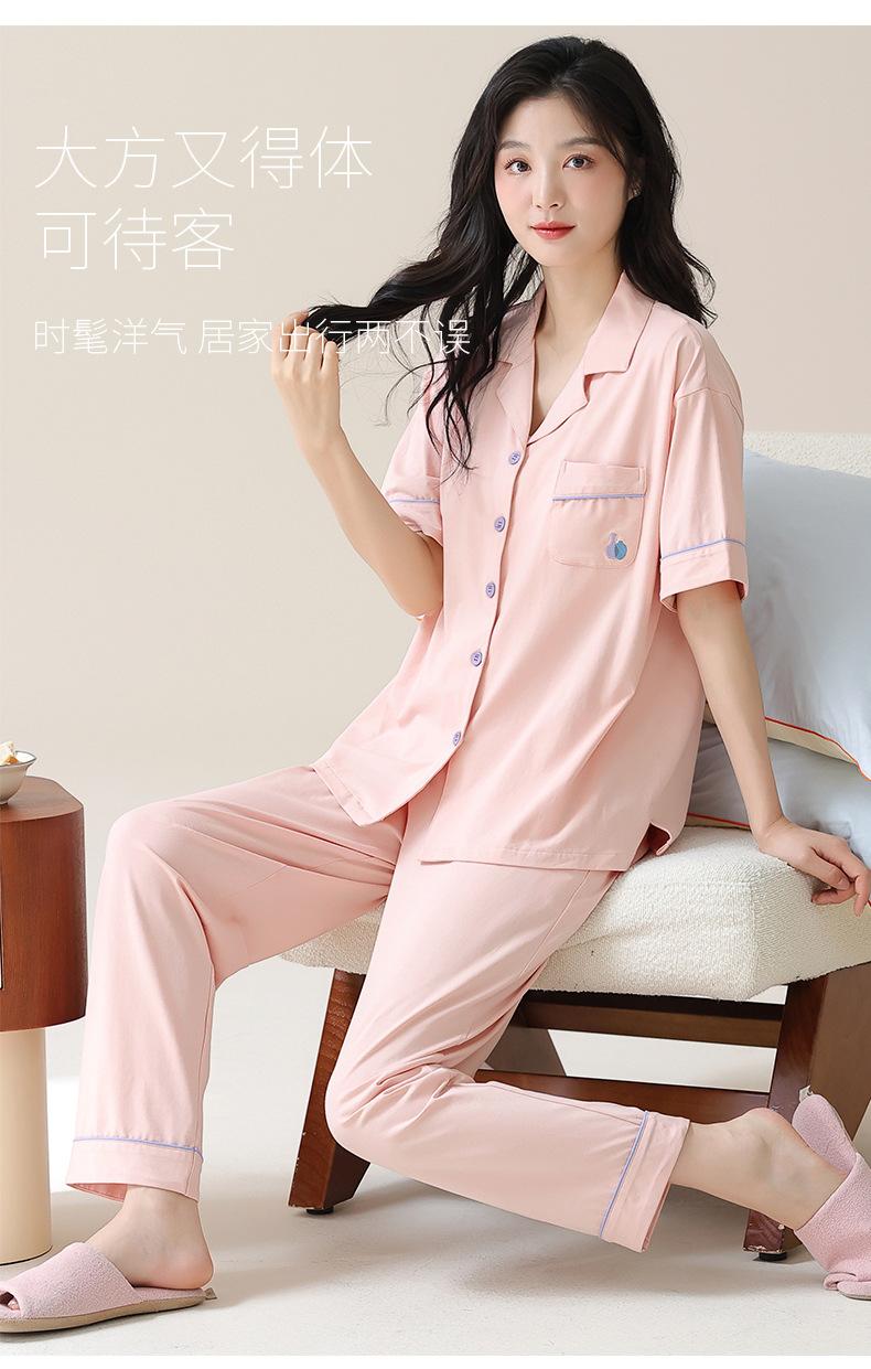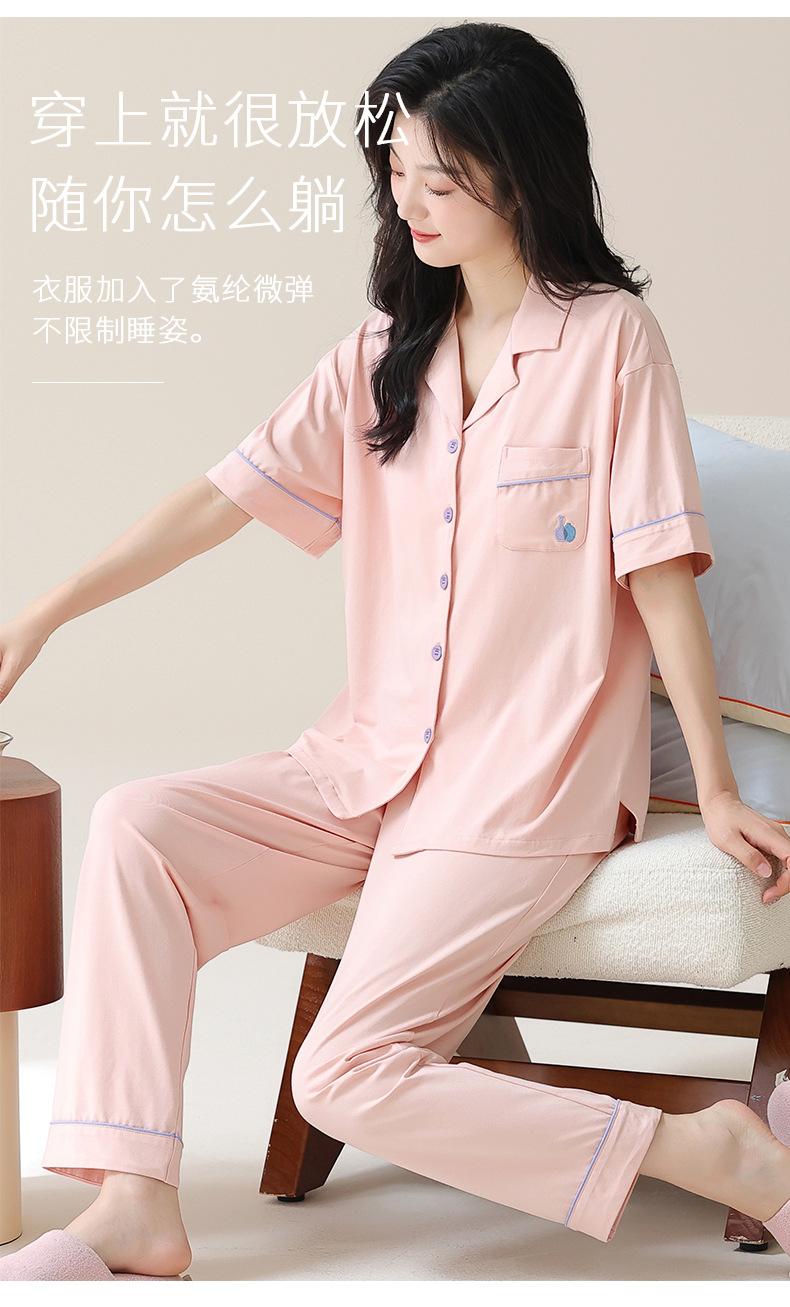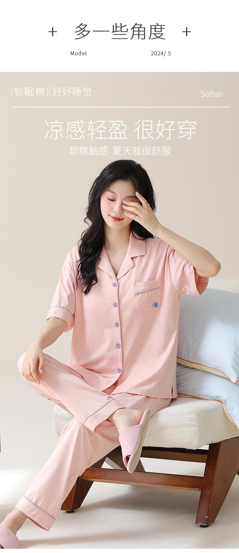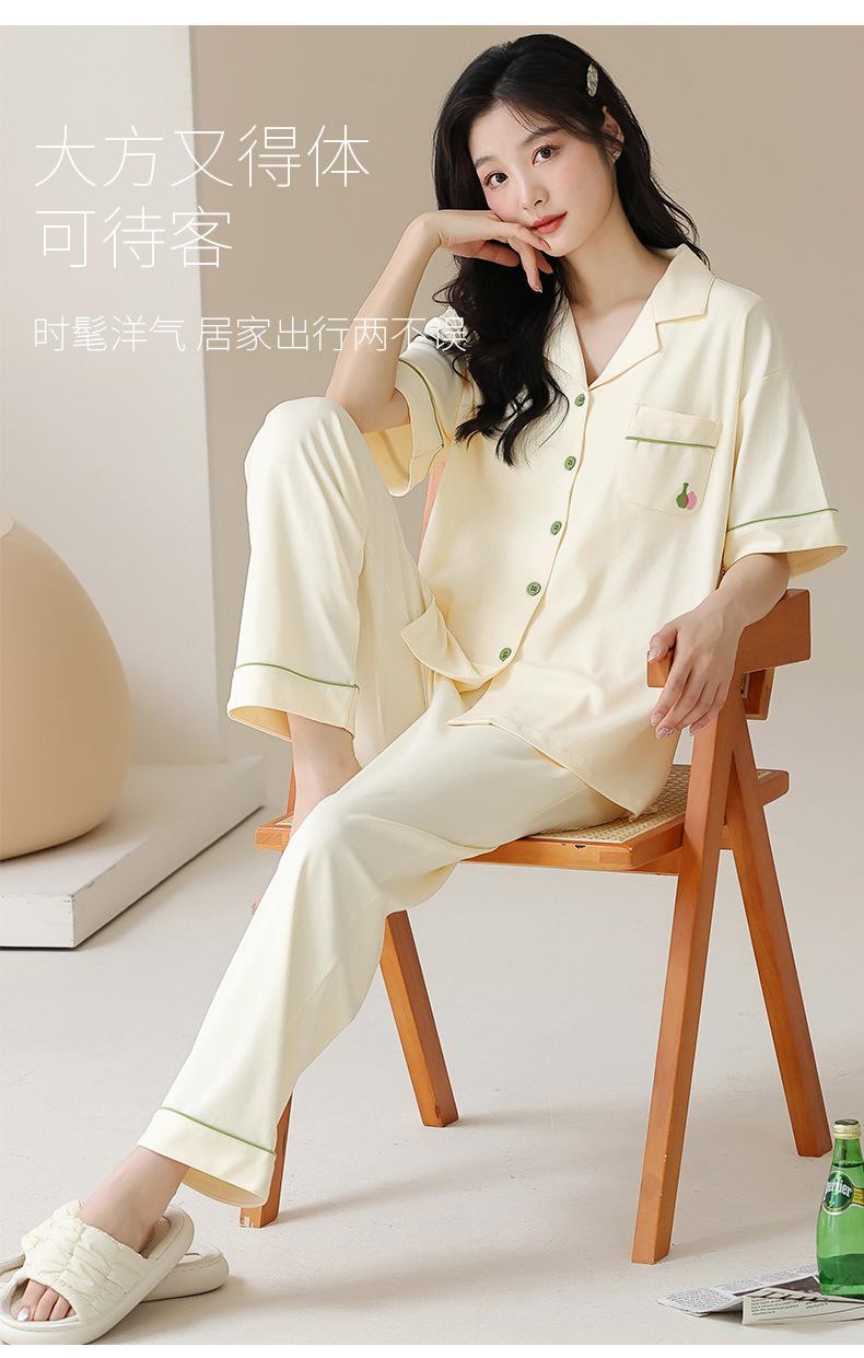 Pijama de Color Sólido para Mujer Verano Algodón Puro Manga Corta Pantalones Ropa para el Hogar Verano Fino Dulce Cárdigan Talla Grande Traje de Dos Piezas
