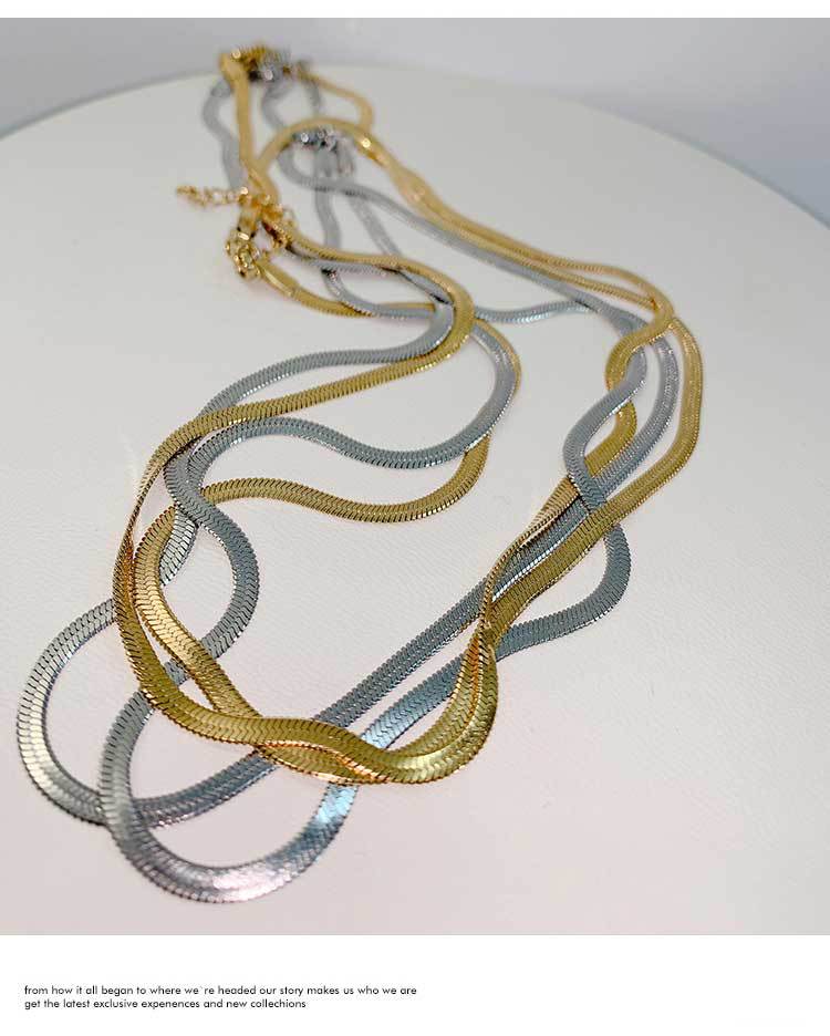 Silver snake bone flat necklace, Golden Snake Bone Flat Necklace