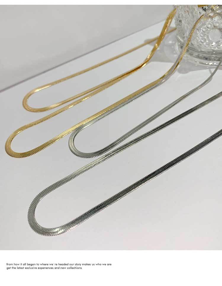 Collar Plano de Hueso de Serpiente de Acero de Titanio para Mujer Estilo Frío Simple Nicho Lujo Ligero Cadena de Clavícula Net Red Temperamento Europeo y Americano Versátil Cadena Lisa