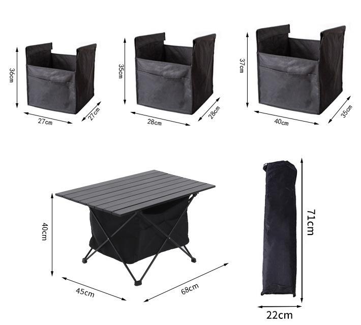 Small aluminum table all black + storage bag, Medium aluminum table all black + storage bag, Large aluminum ta...