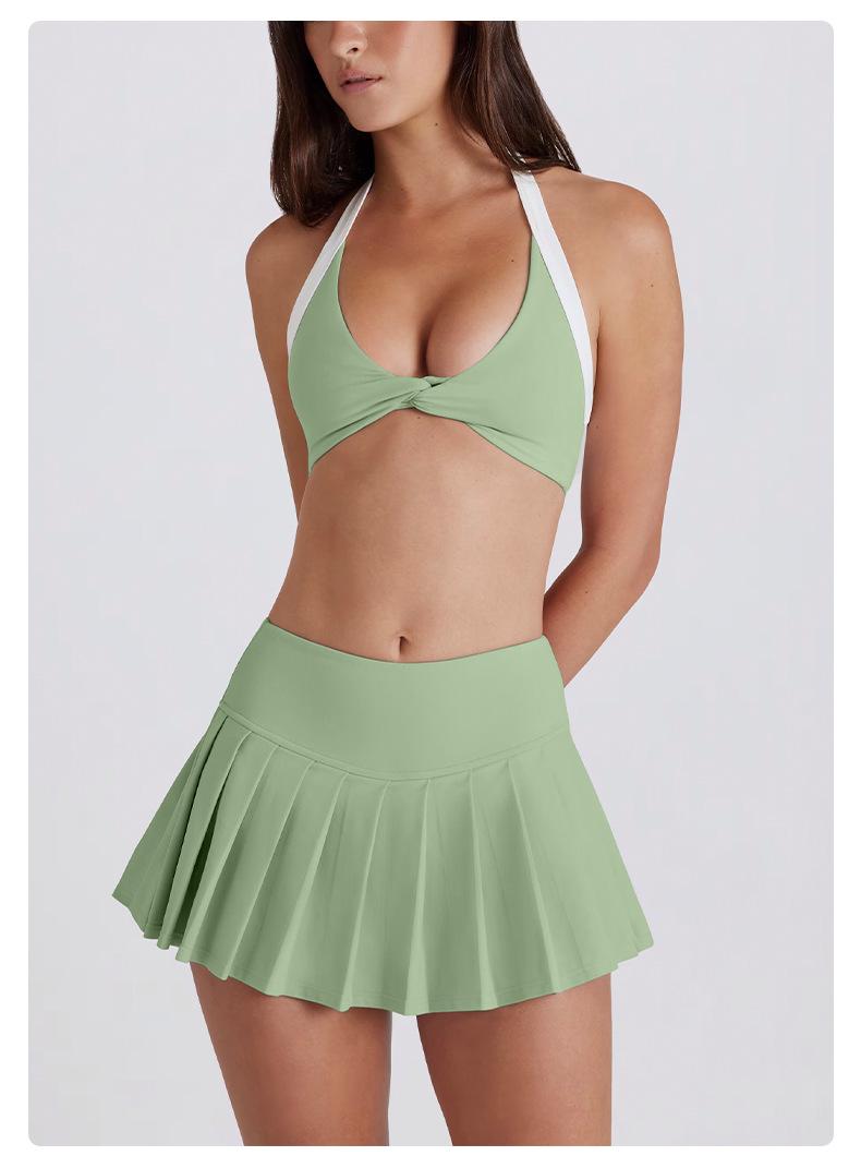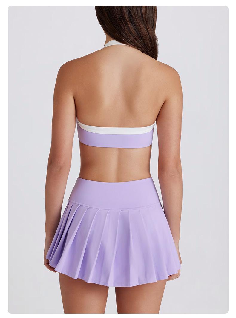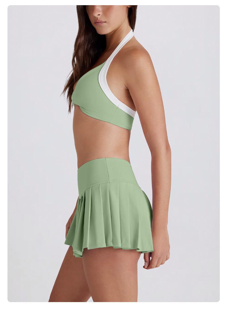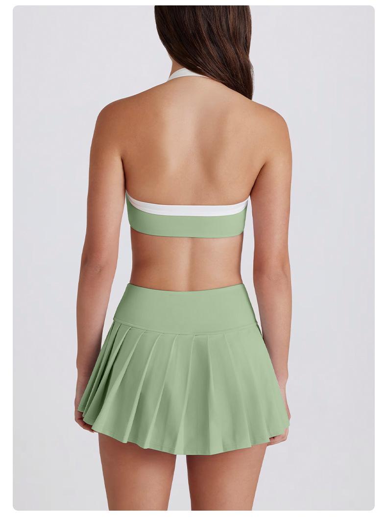 Falda plisada transfronteriza leggings transpirables secado rápido anti-exposición para correr deportes falda corta deportiva de cintura alta conjunto de falda de tenis