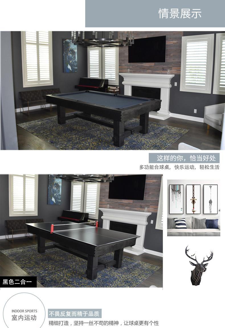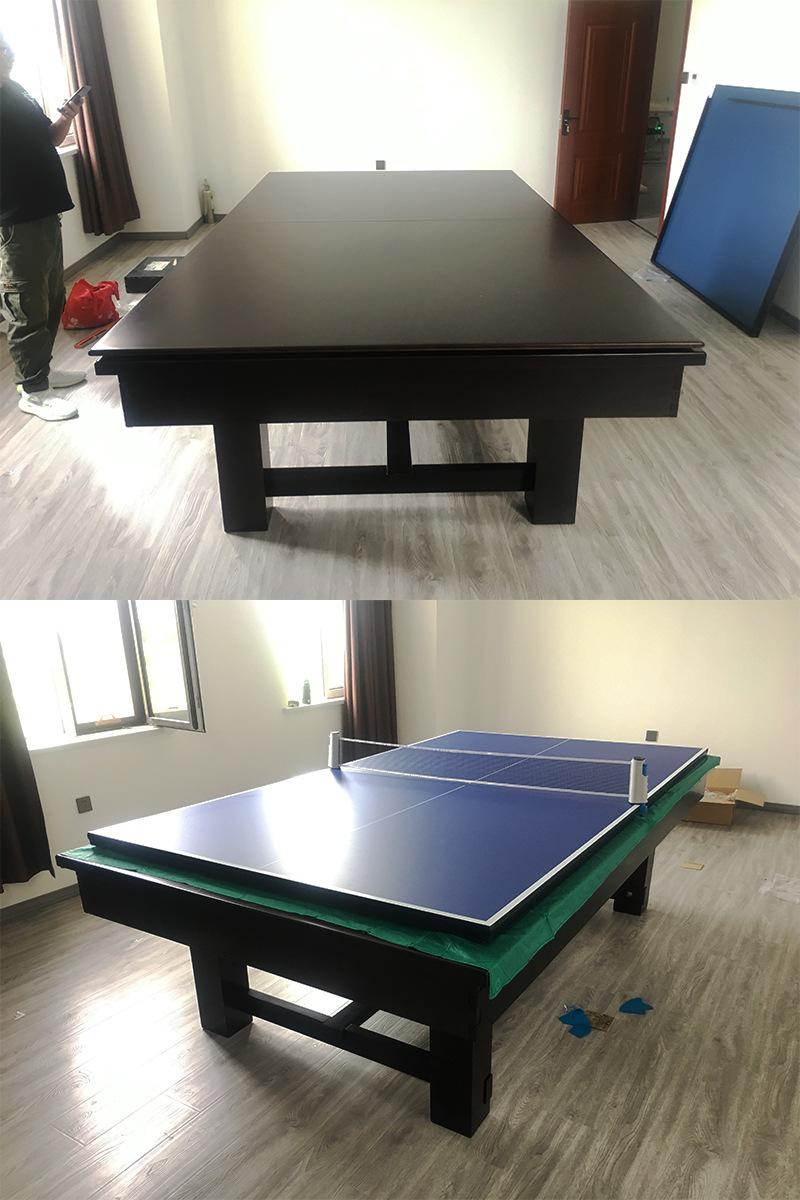 Mesa de Billar Americano Negro Ocho Tipo Estándar para Adultos para el Hogar Mesa de Nueve Bolas Madera Sólida Mesa Tallada Retro Mesa de Comedor Mesa de Billar Dos en Uno para Interior