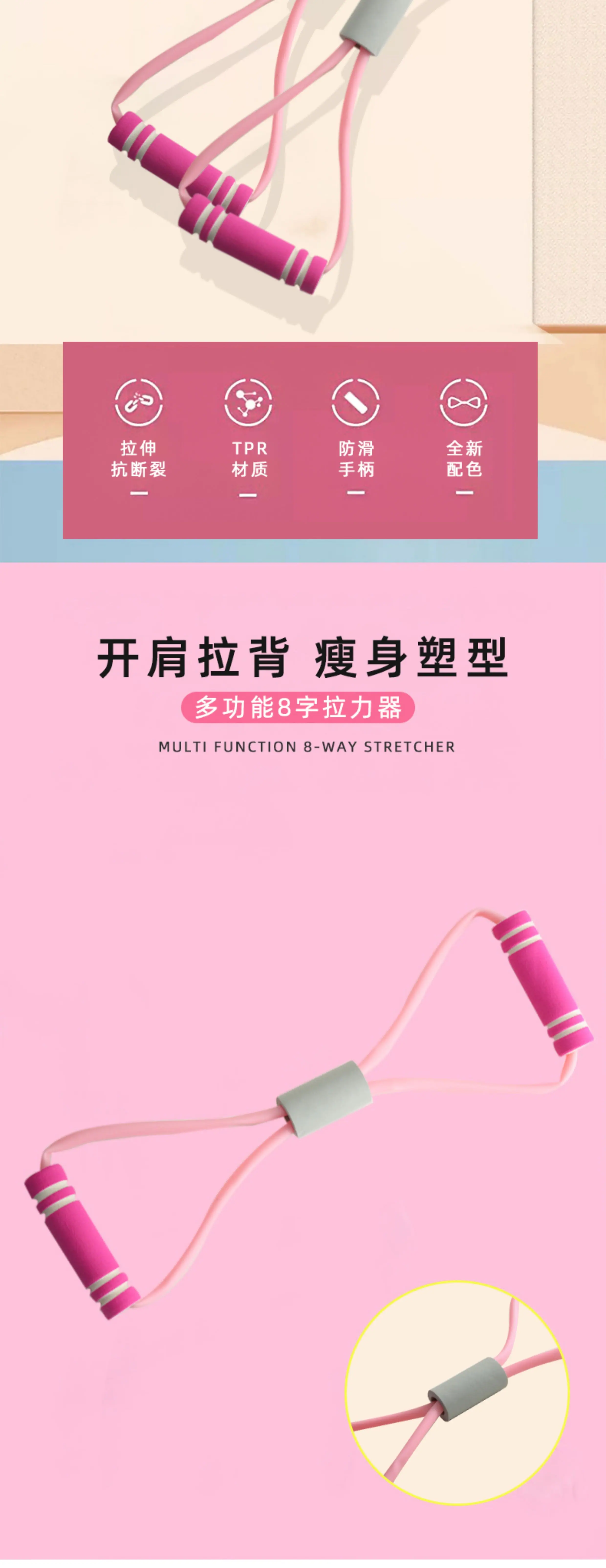 Banda de Resistencia en Forma de 8 para Fitness en Casa, Equipo de Yoga para Mujeres, Estiramiento de Hombros y Espalda, Rosa, Modelo Popular