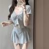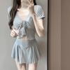 Traje de Baño de Dos Piezas de Hada para Mujer Conservador Adelgazante Control de Abdomen Textura de Encaje Vacaciones en Aguas Termales Traje de Baño de Aguas Termales para Chica